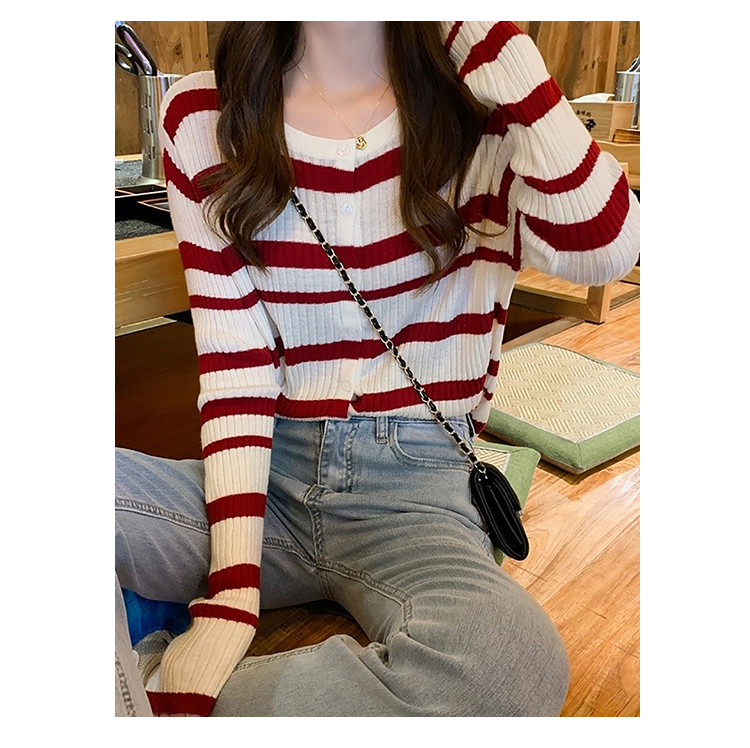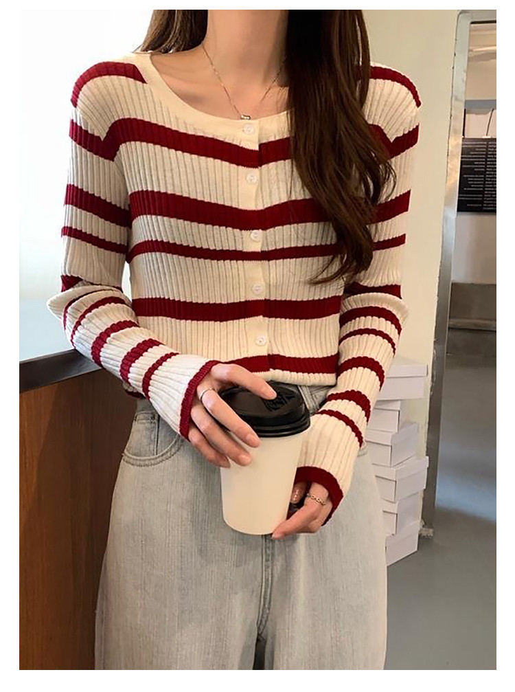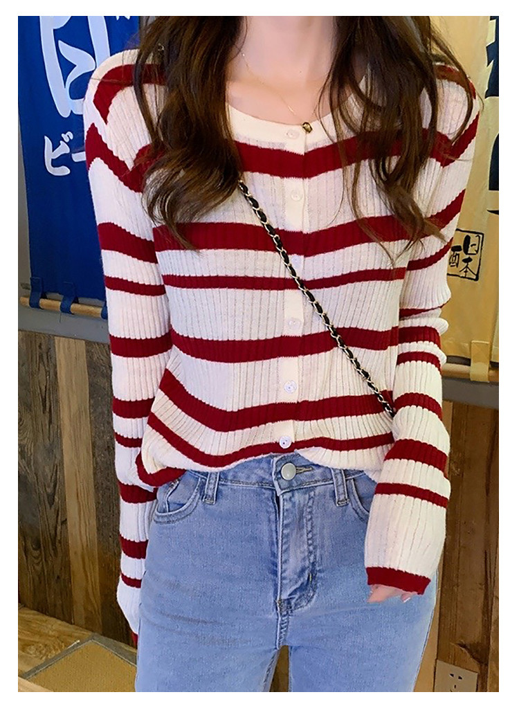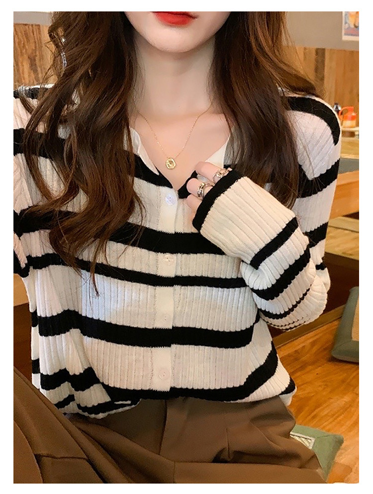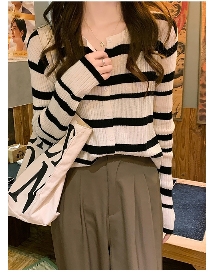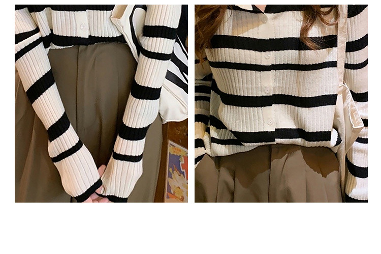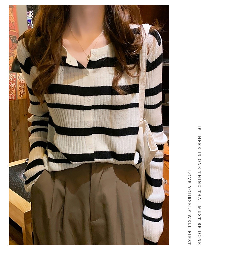 条纹针织开衫女甜美针织衫圆领针织外套上衣 233283