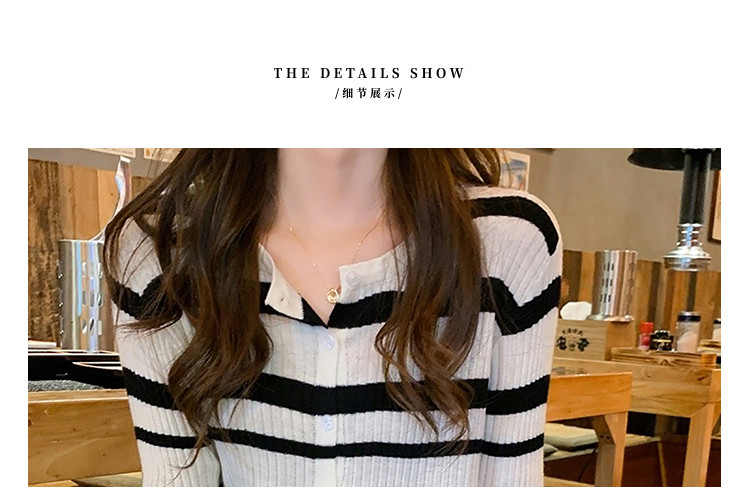 商品名称:条纹针织开衫女甜美针织衫圆领针织外套上衣 233283