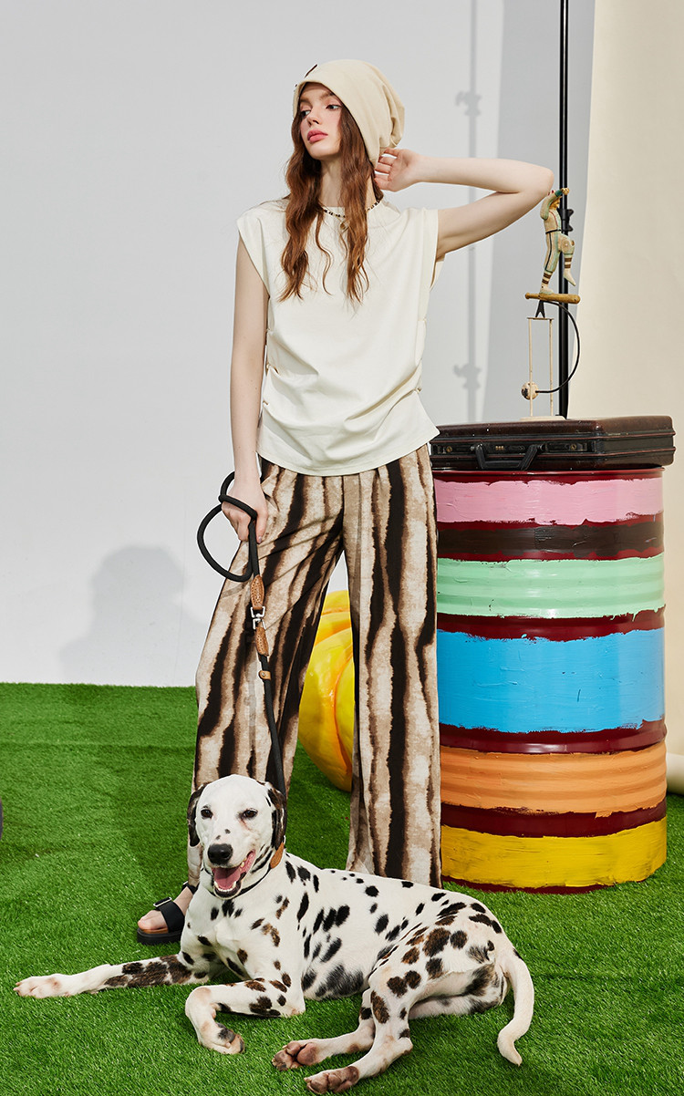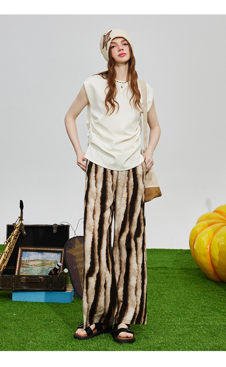 竖纹显瘦直筒裤设计感高级裤子夏季个性女式休闲裤 985501