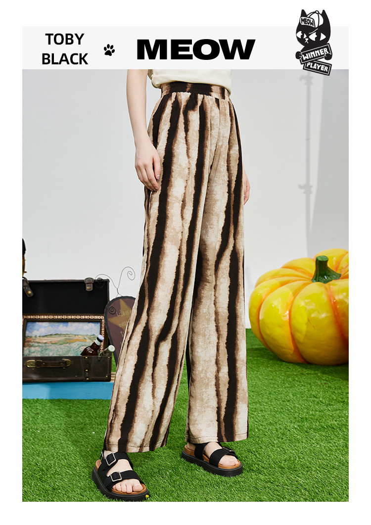 商品名称:竖纹显瘦直筒裤设计感高级裤子夏季个性女式休闲裤 985501
