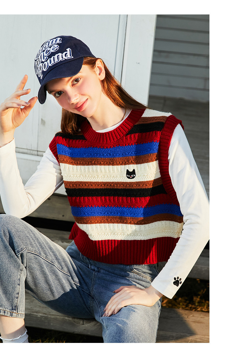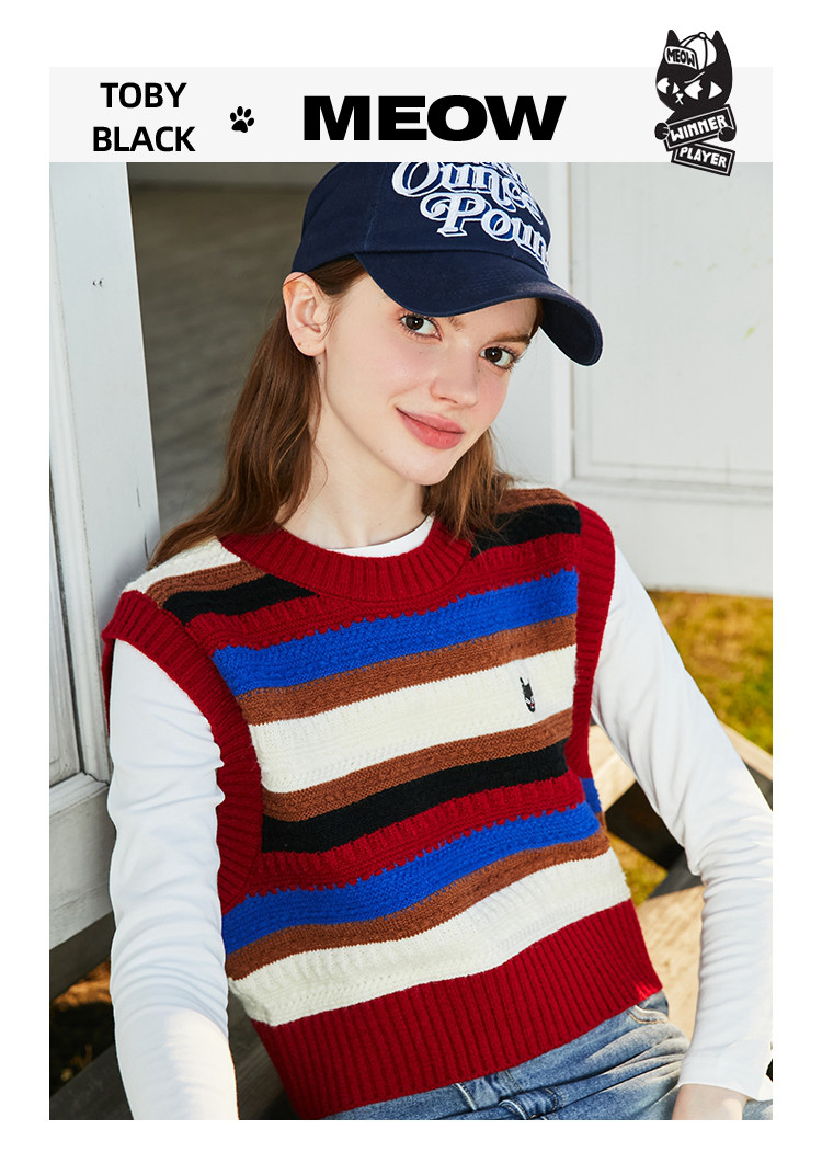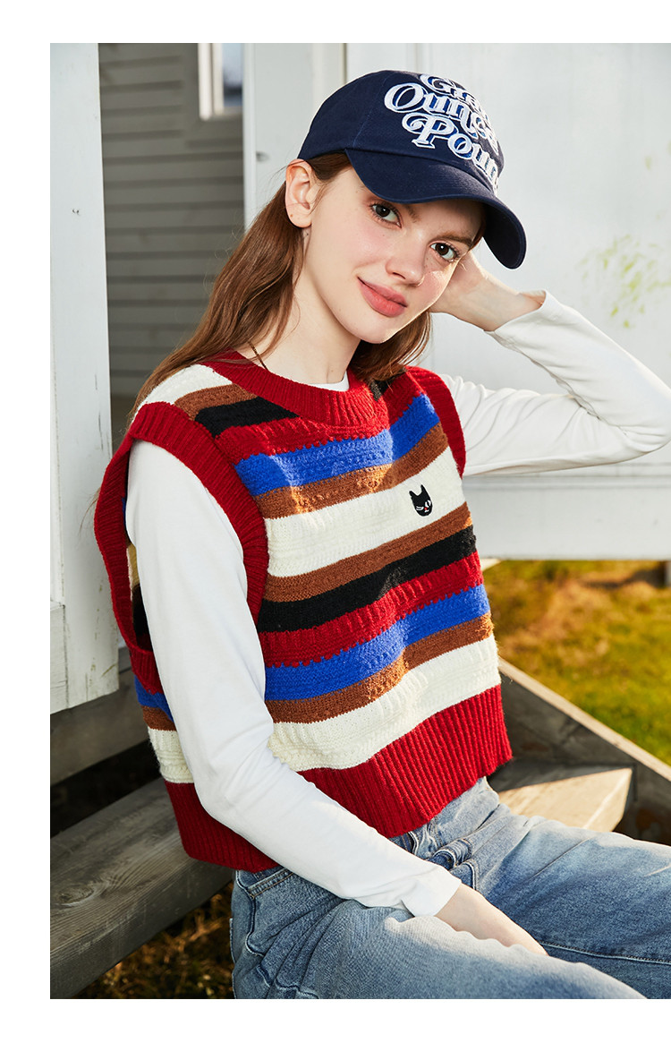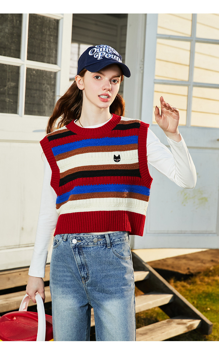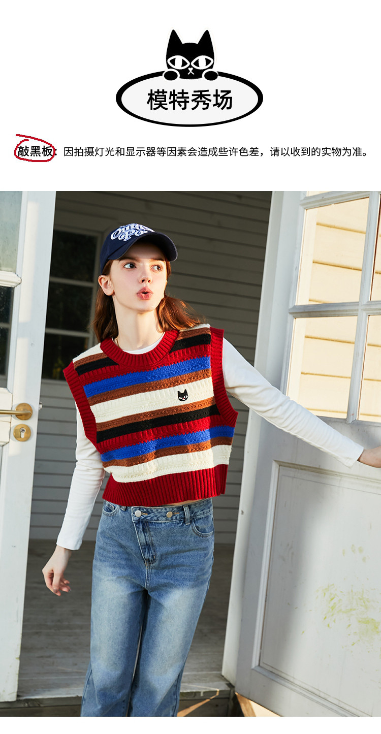 商品名称:撞色学院风条纹针织慵懒叠穿背心夏季宽松女式马夹 355421