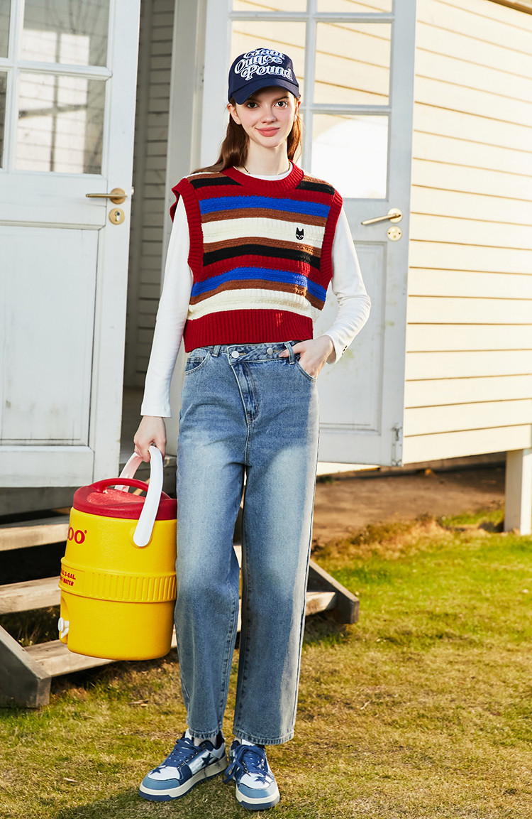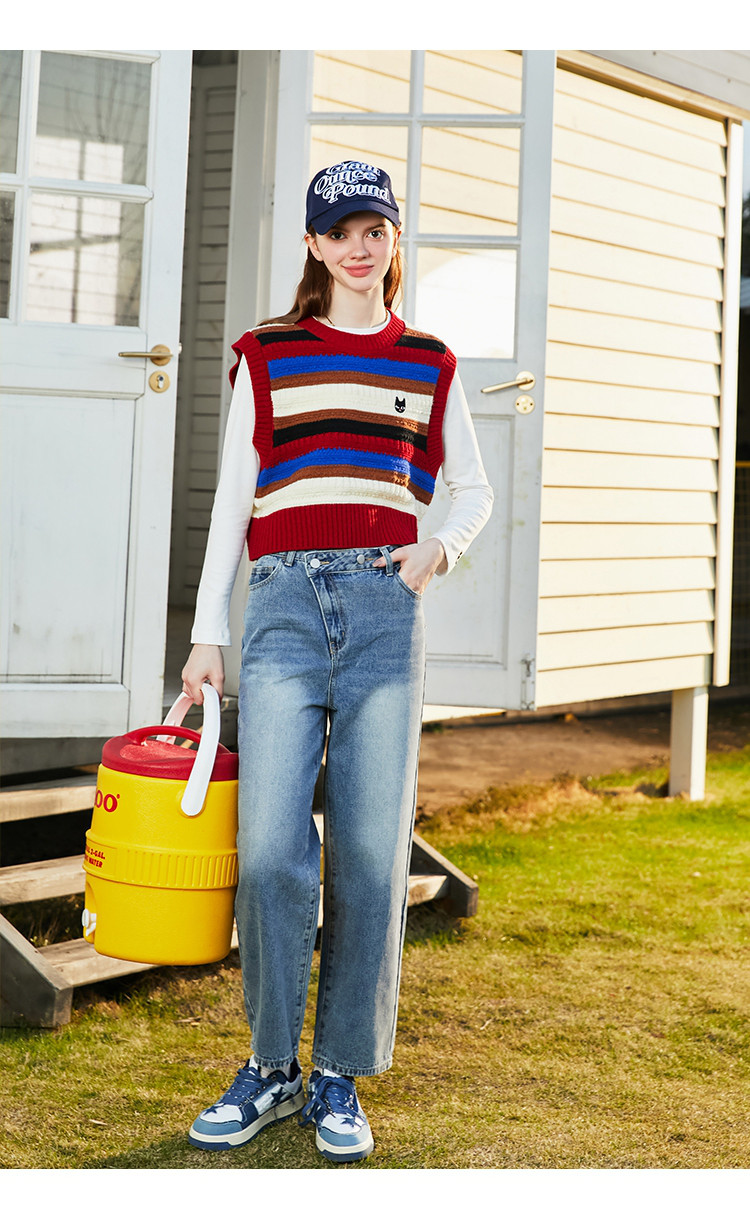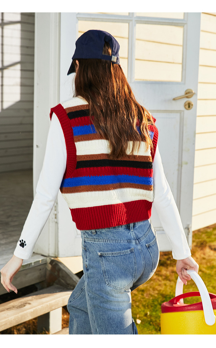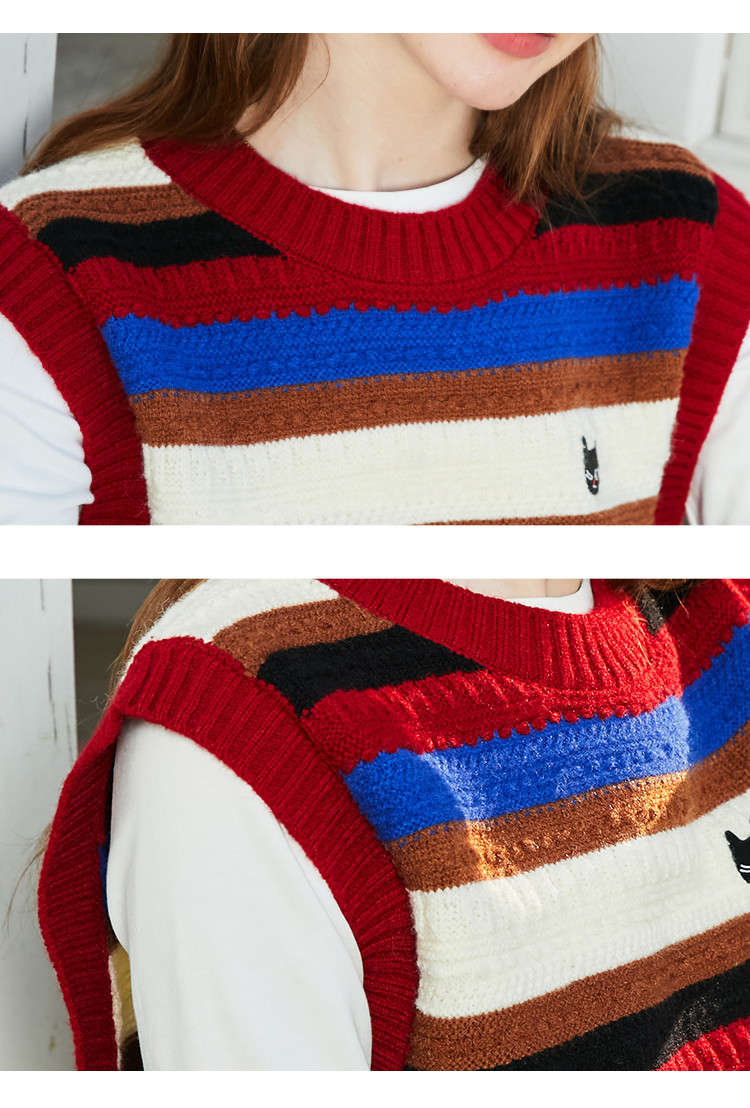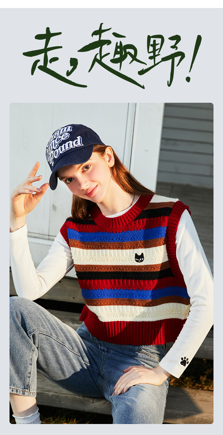 商品名称:撞色学院风条纹针织慵懒叠穿背心夏季宽松女式马夹 355421