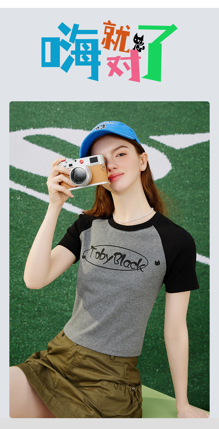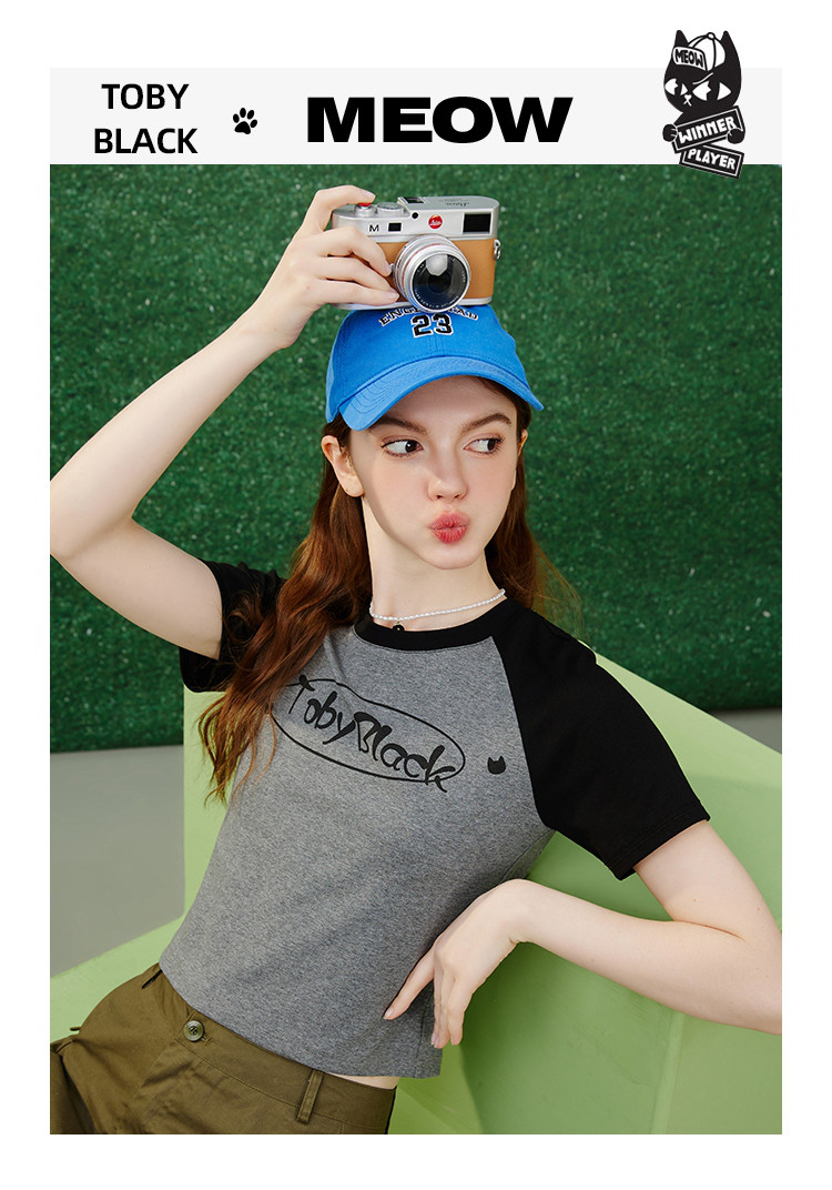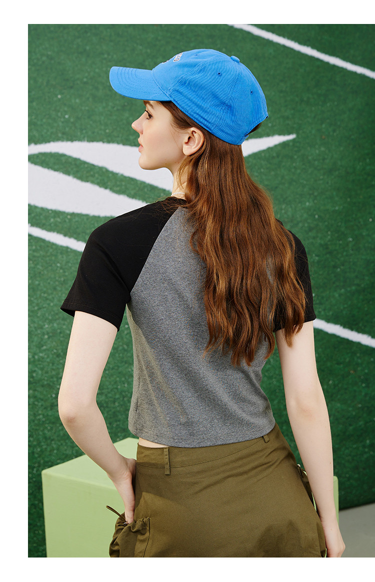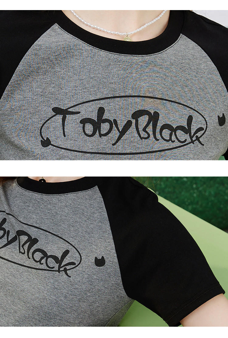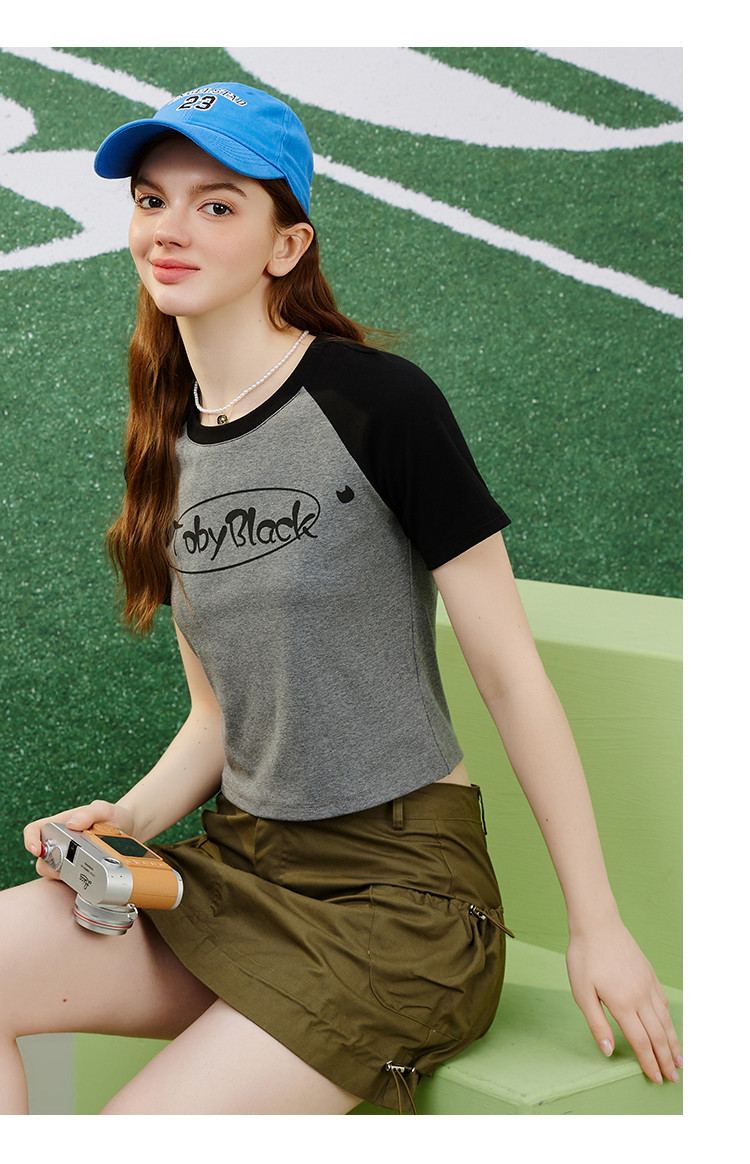 修身显瘦灰色插肩袖圆领短款上衣夏季休闲女式T恤 597981