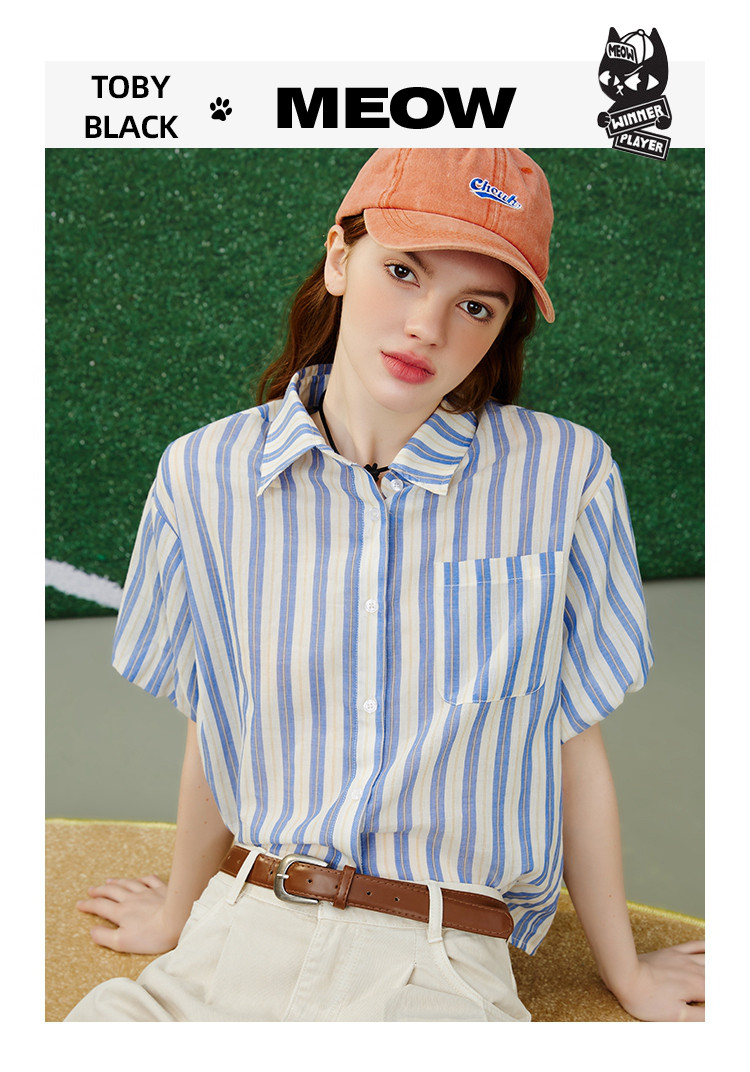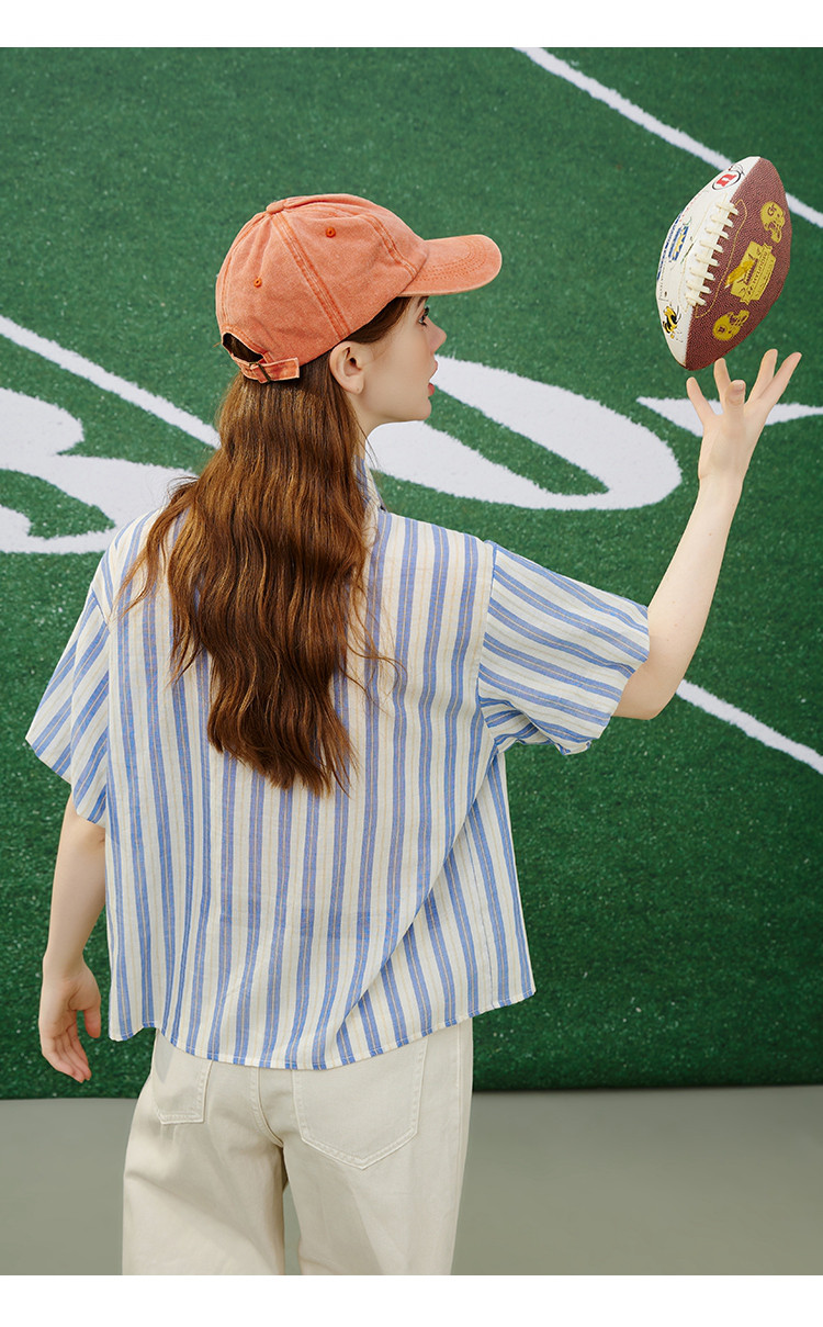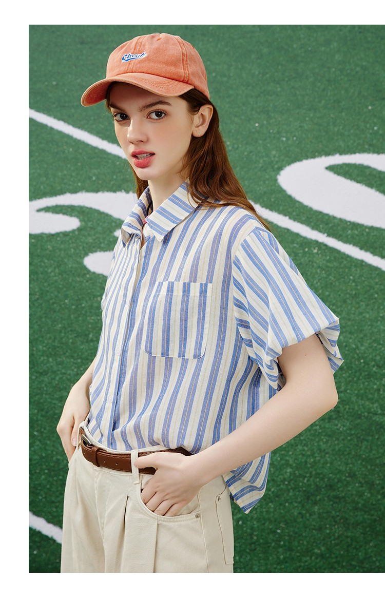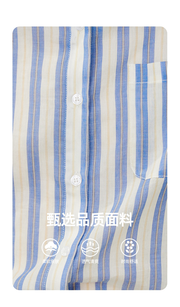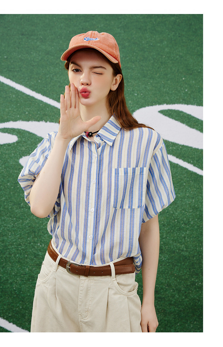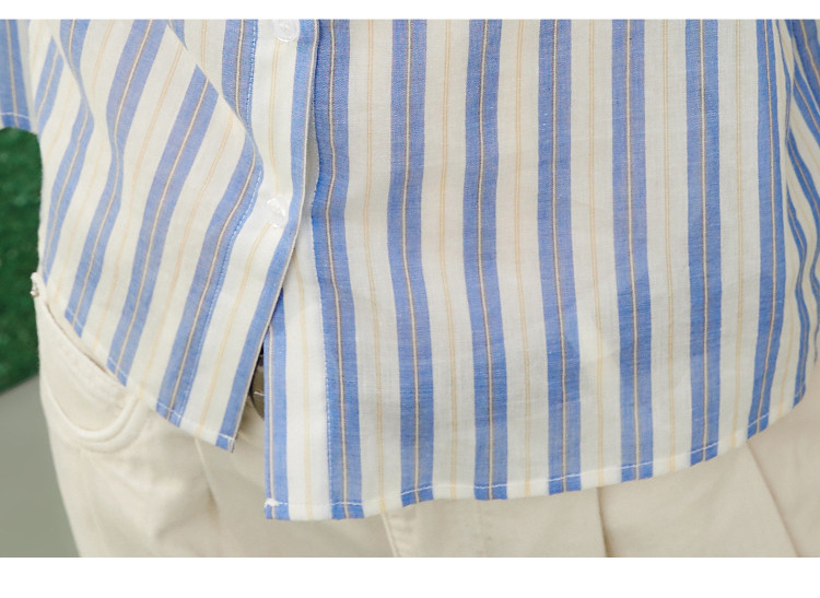 商品名称:【100%棉】简约条纹花苞袖上衣夏季休闲女式衬衫 960925