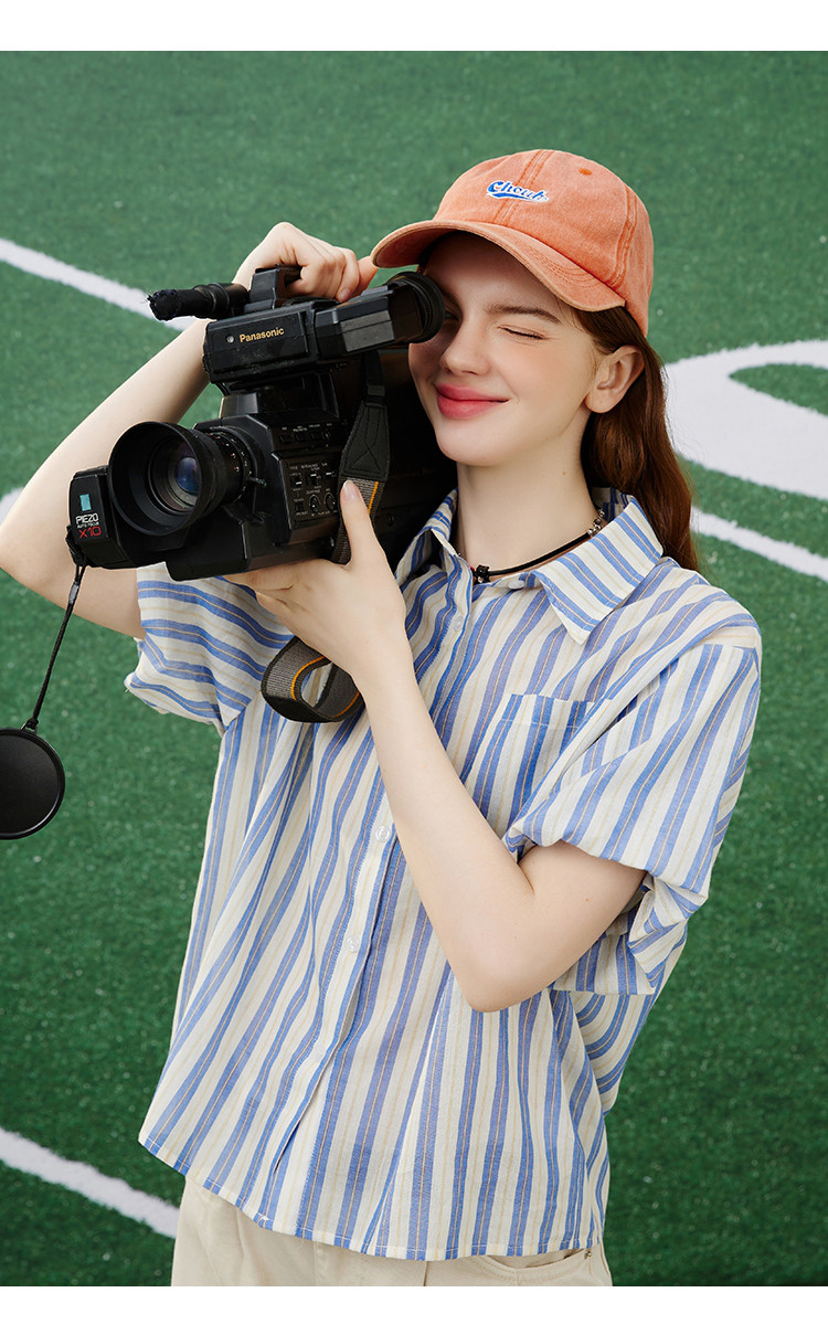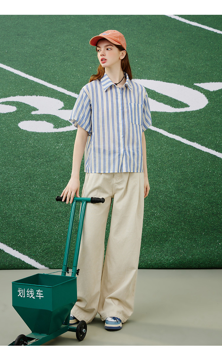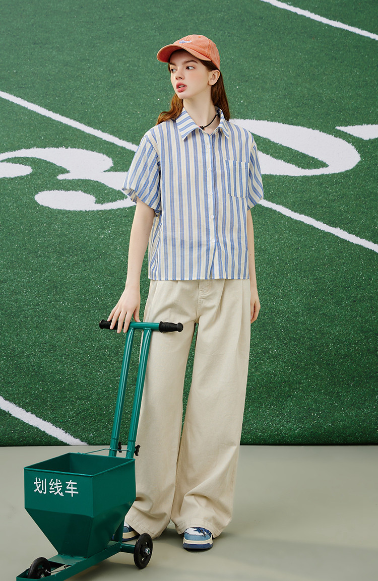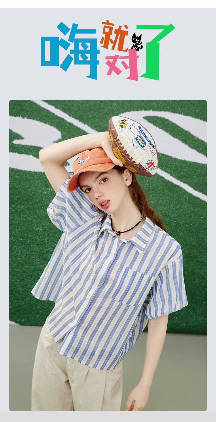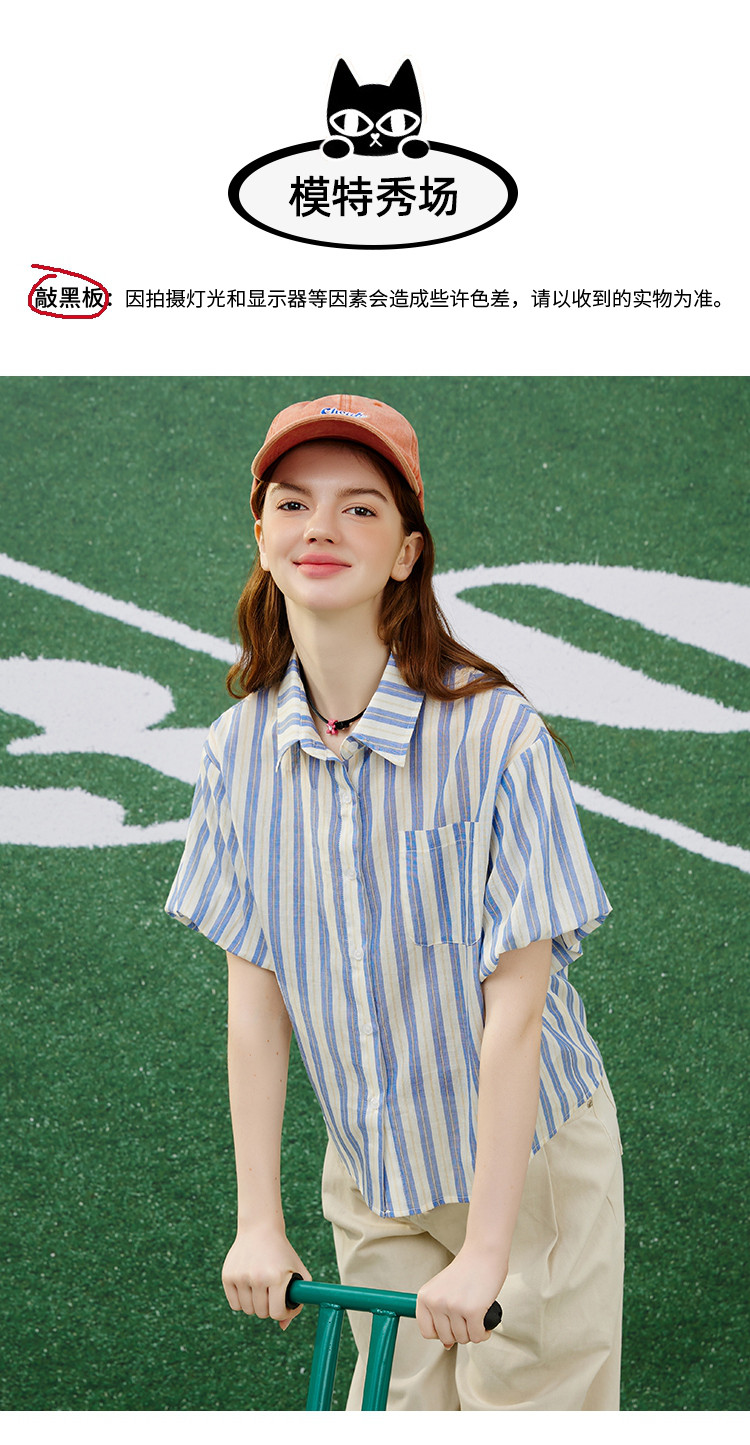 商品名称:【100%棉】简约条纹花苞袖上衣夏季休闲女式衬衫 960925