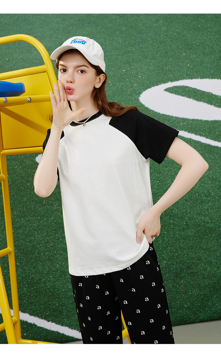 商品名称:【100%棉】显瘦设计感小众撞色短袖夏季女式T恤 209181