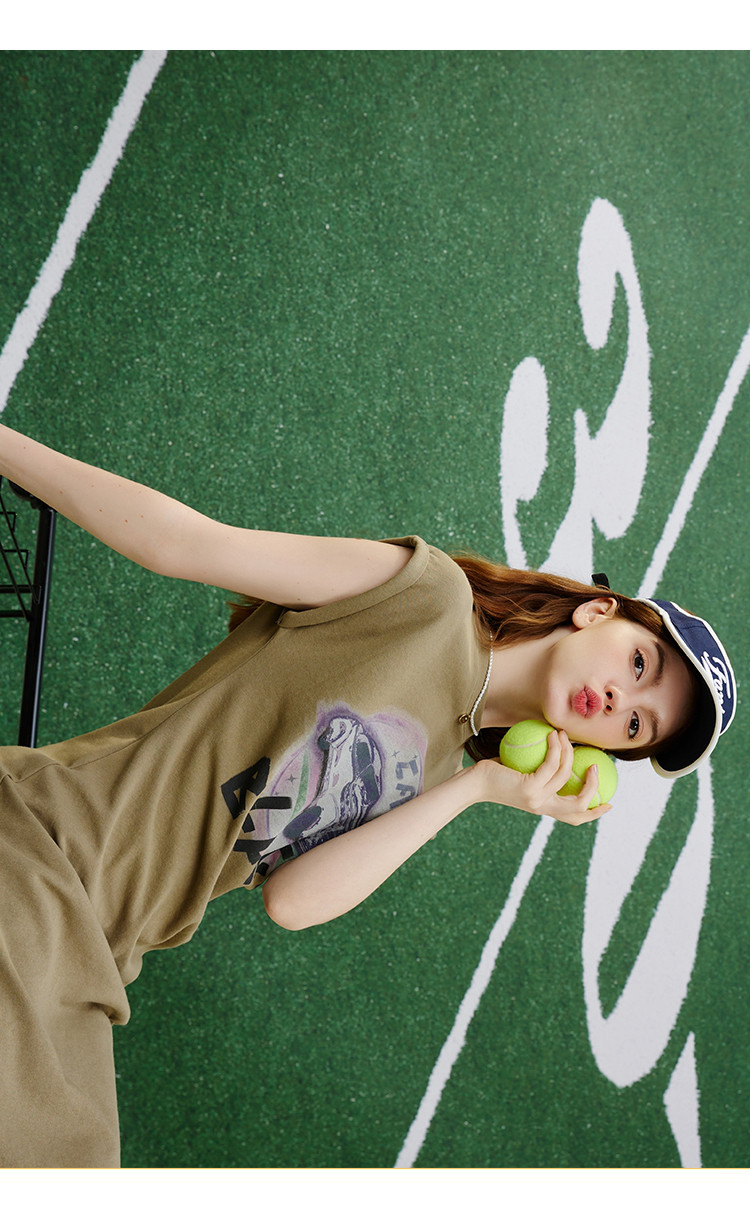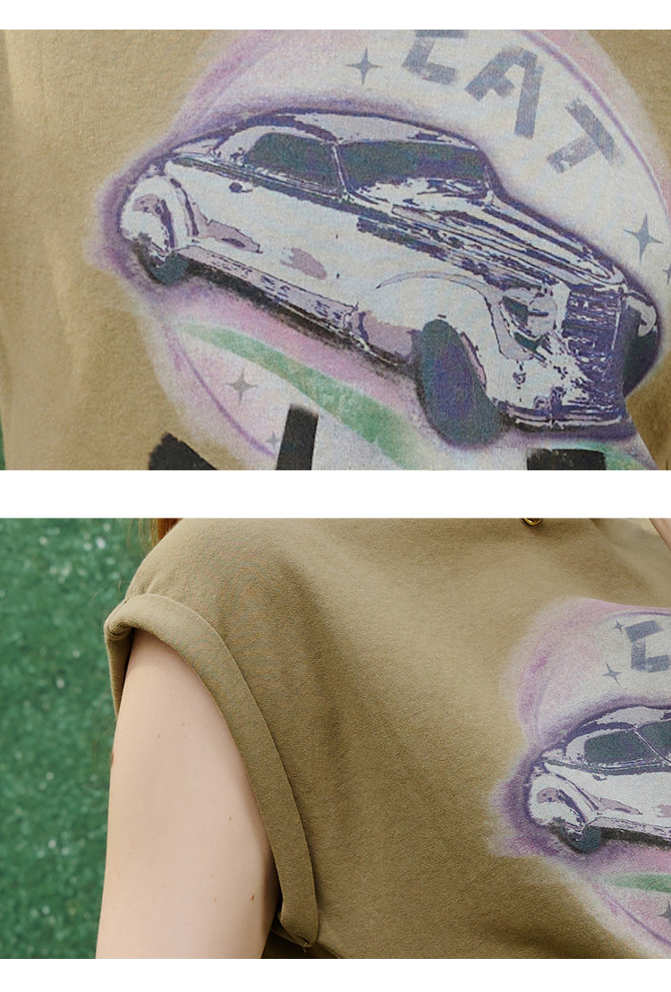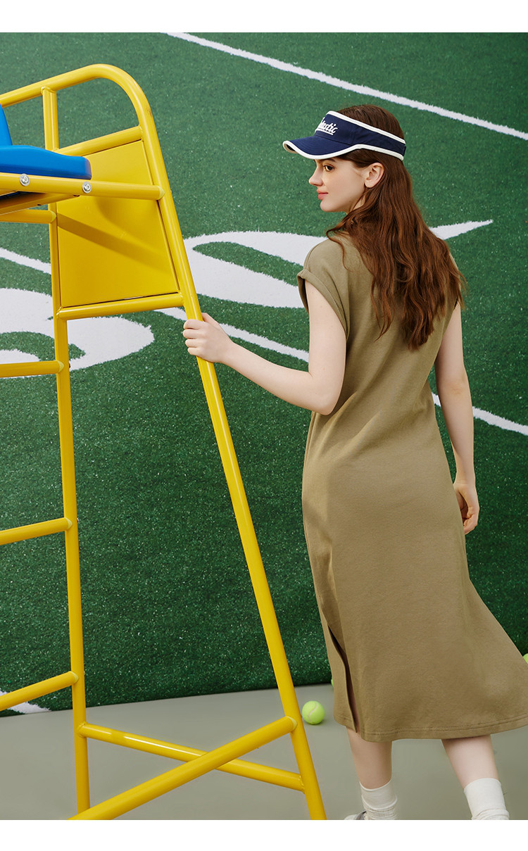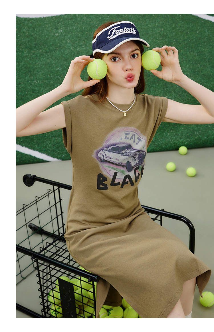 印花收腰抽褶设计个性开叉裙夏季休闲无袖长款连衣裙 100189
