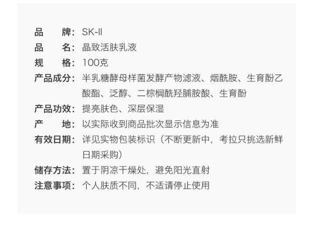 商品名称:SK-II 骨胶原乳液 100g
