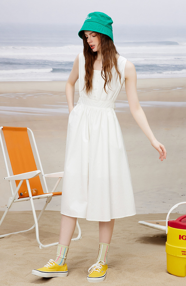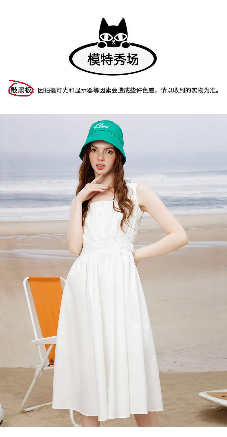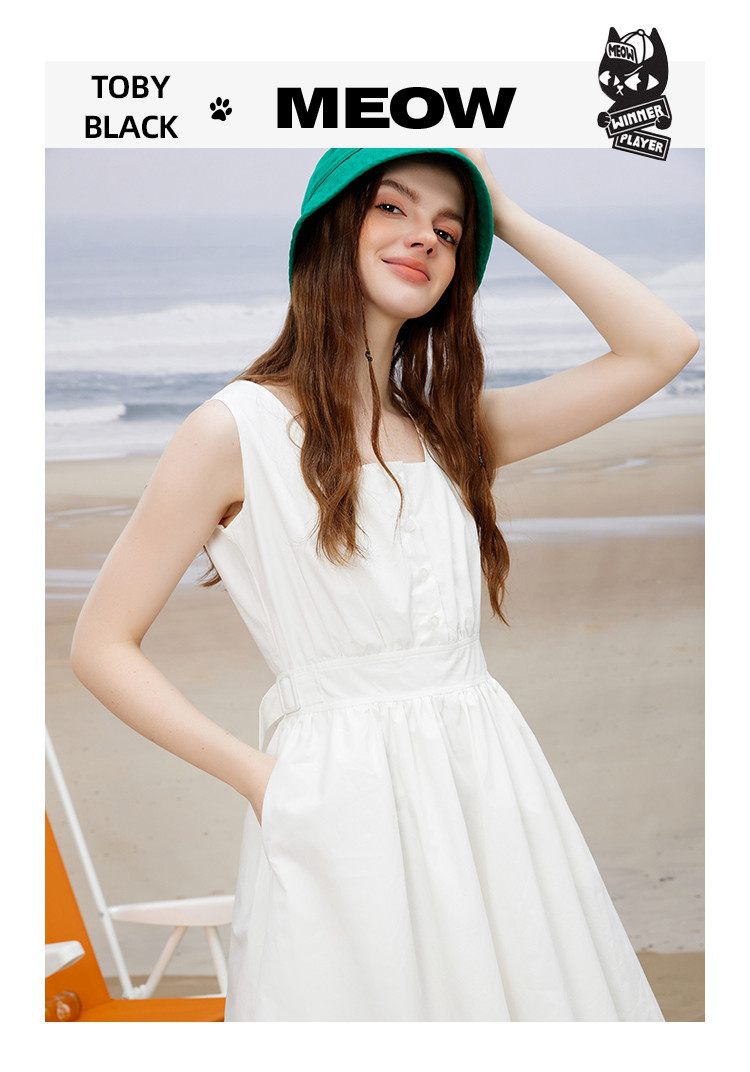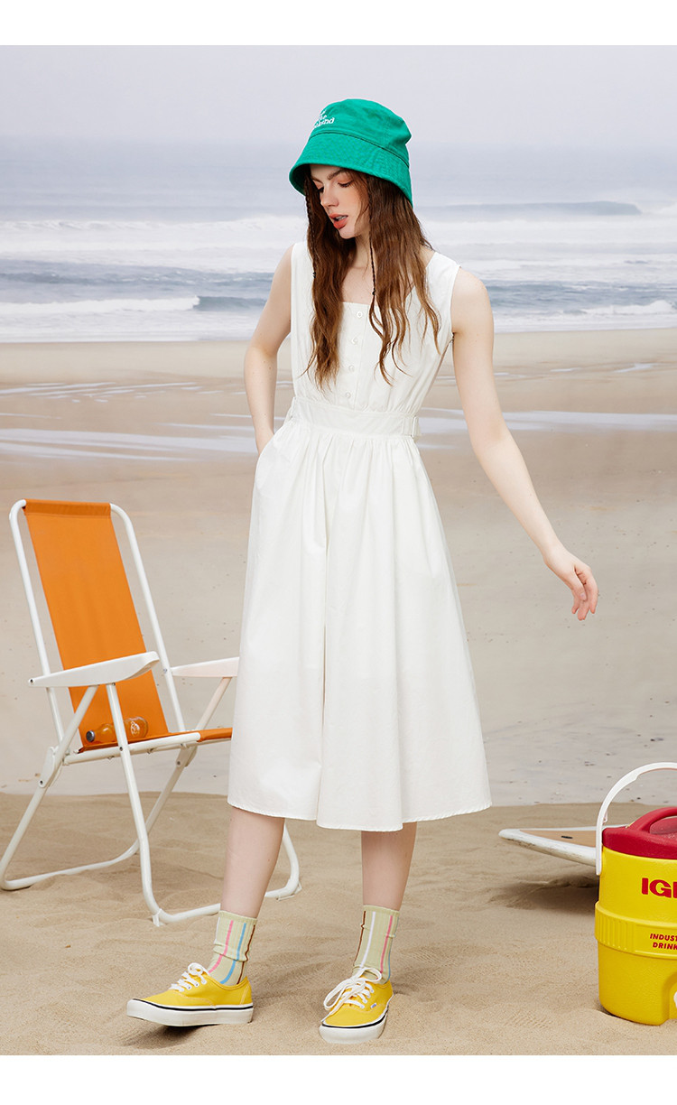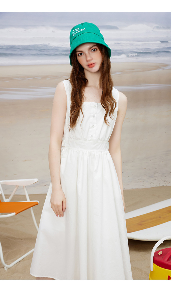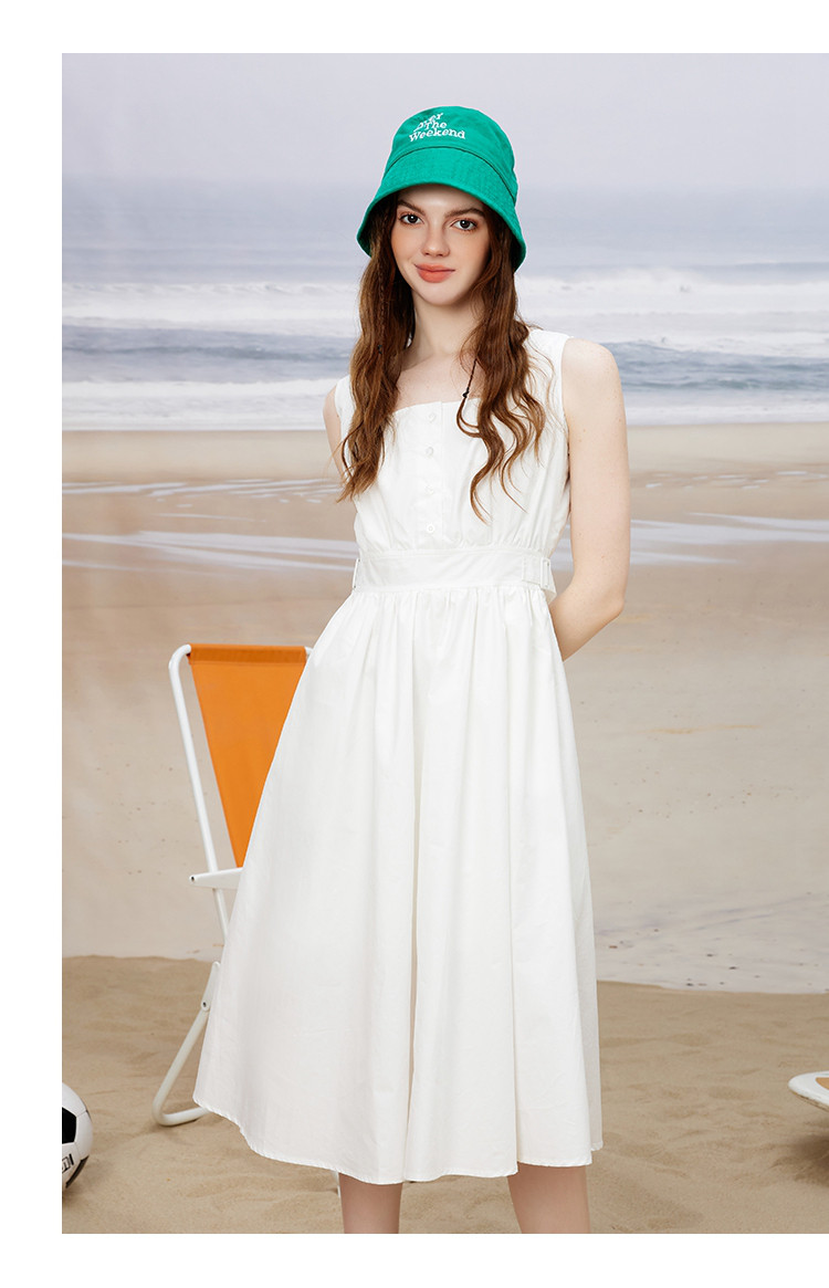 商品名称:方领休闲学院风减龄小白裙夏季纯色简约连衣裙 614365
