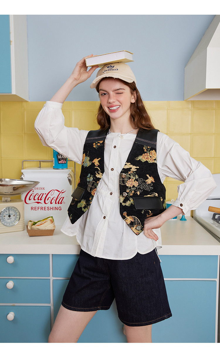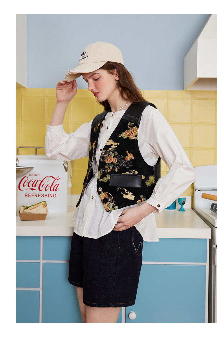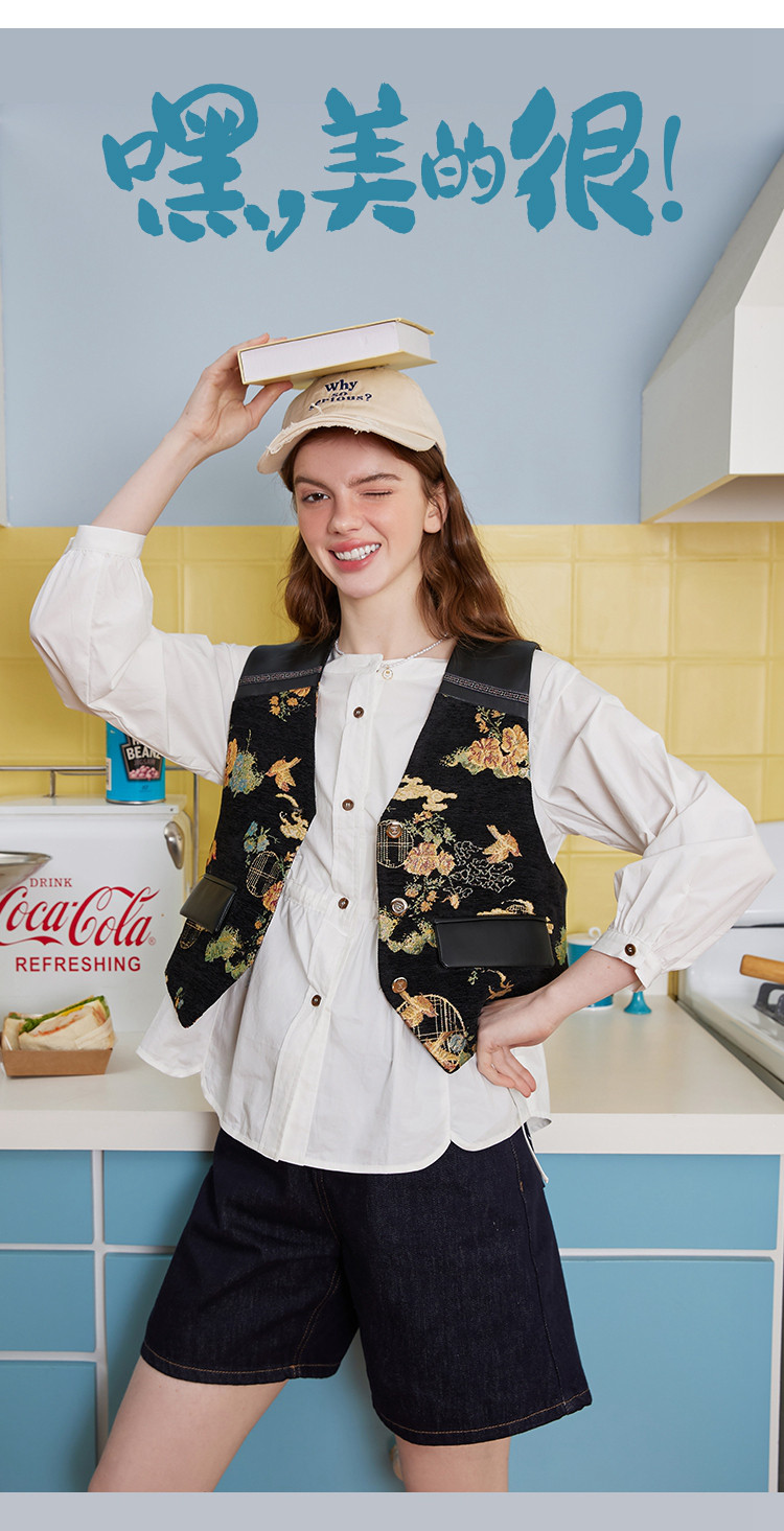 商品名称:复古精致重工提花新中式背心夏季个性设计感女式马夹 917405
