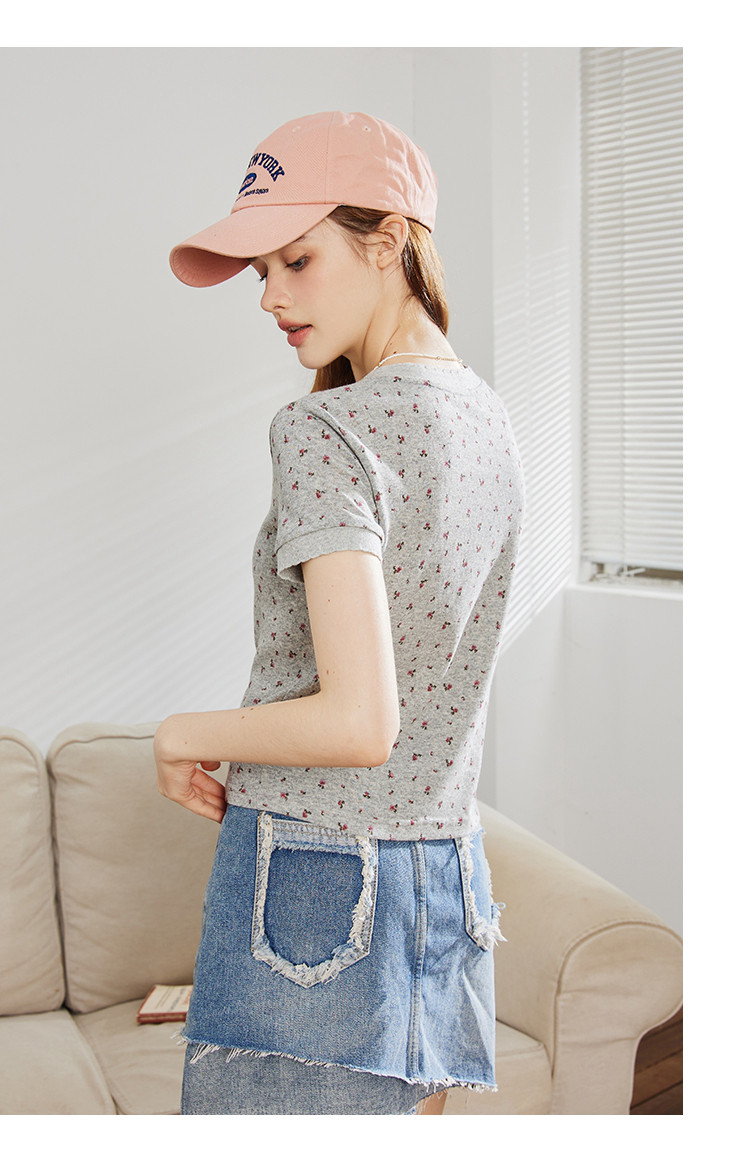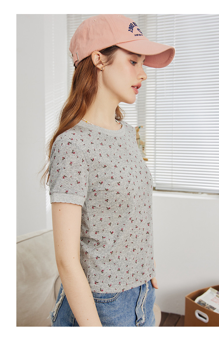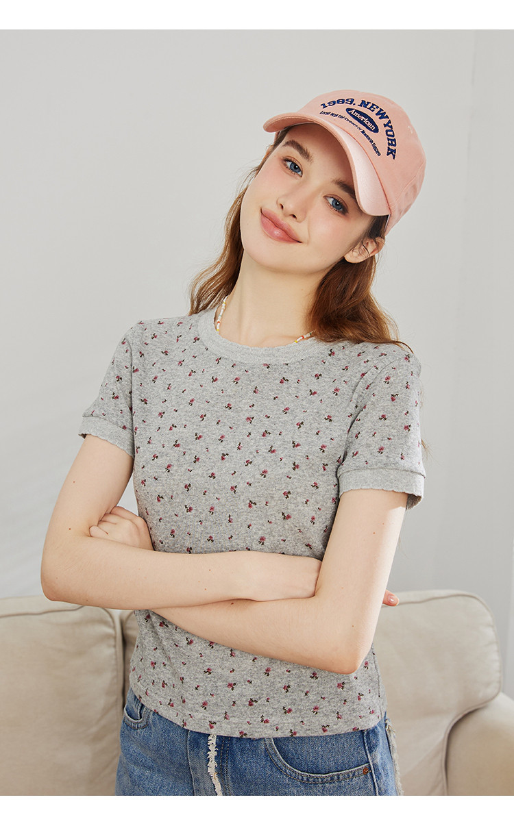商品名称:圆领印花设计正肩短袖上衣夏季休闲百搭修身女式T恤 240733