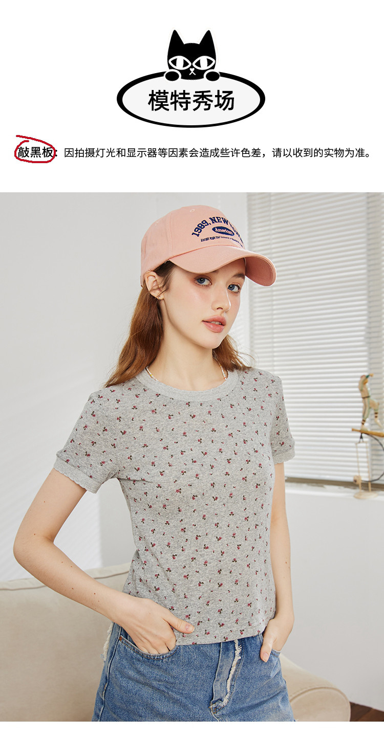 圆领印花设计正肩短袖上衣夏季休闲百搭修身女式T恤 240733