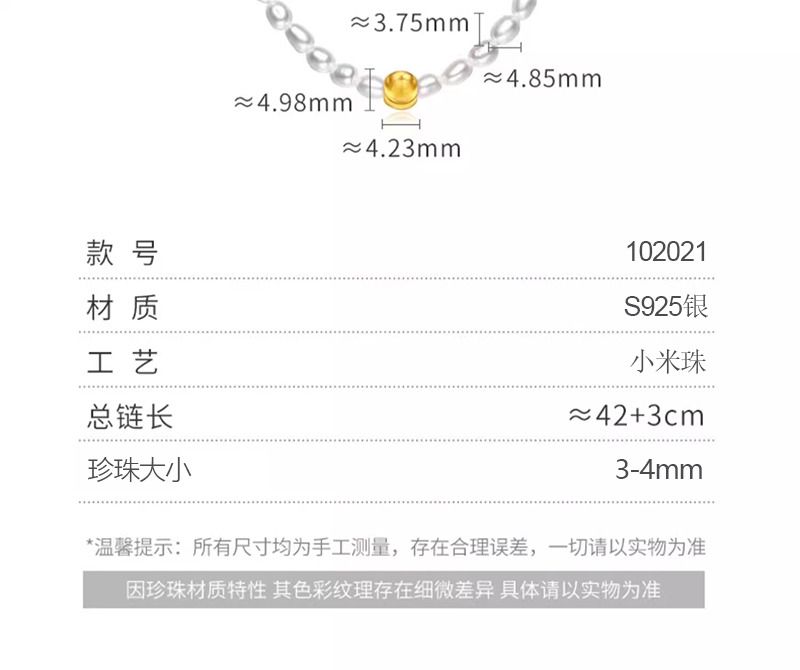 商品名称:慕梵 小确幸优雅米形淡水珍珠猫眼金珠项链