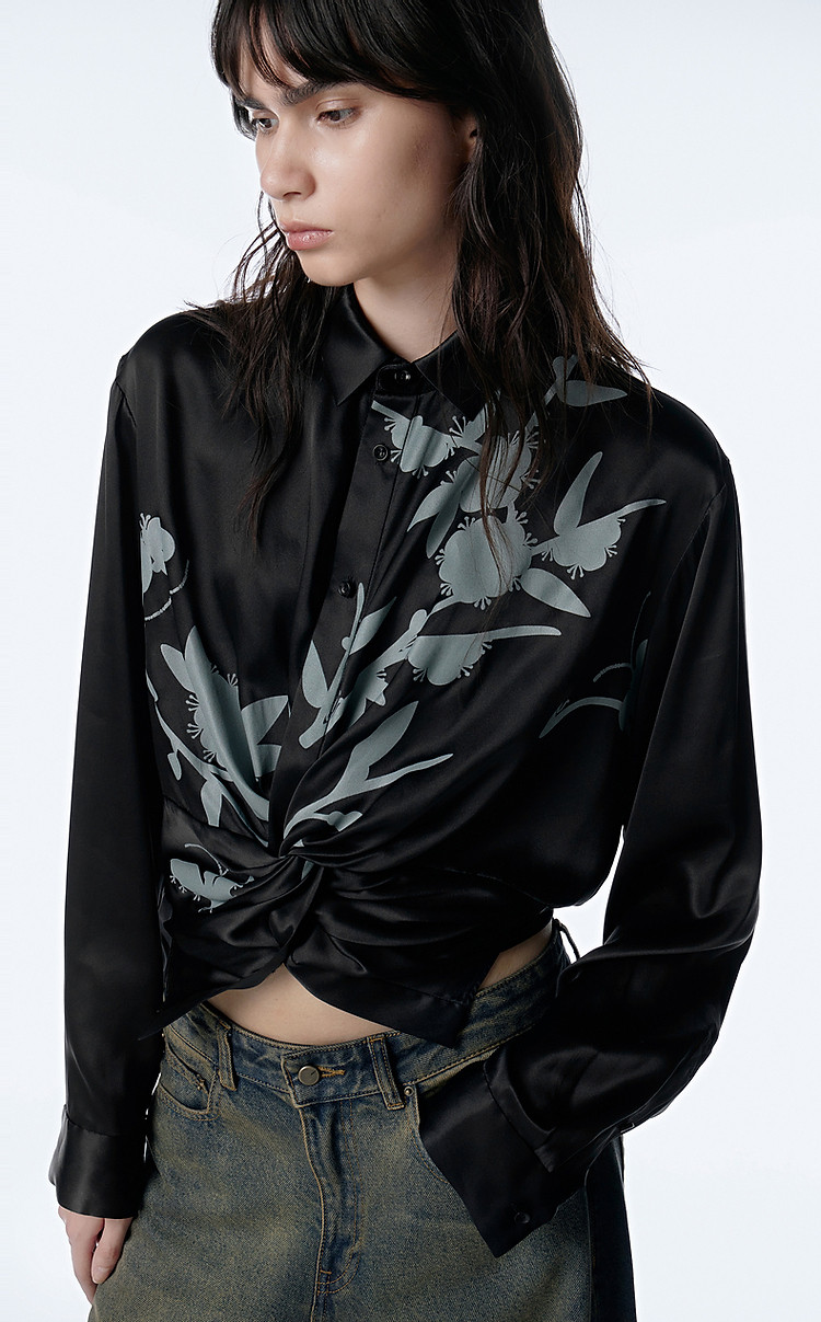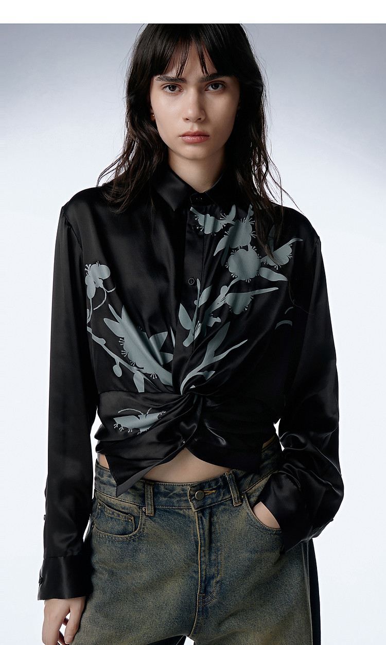 秋衬衫桑蚕丝印花长袖衬衣女 768843