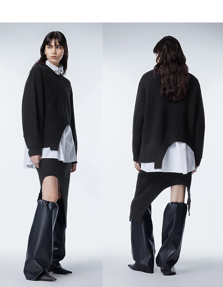 商品名称:秋毛针织衫宽松圆领不规则毛衫女 154763