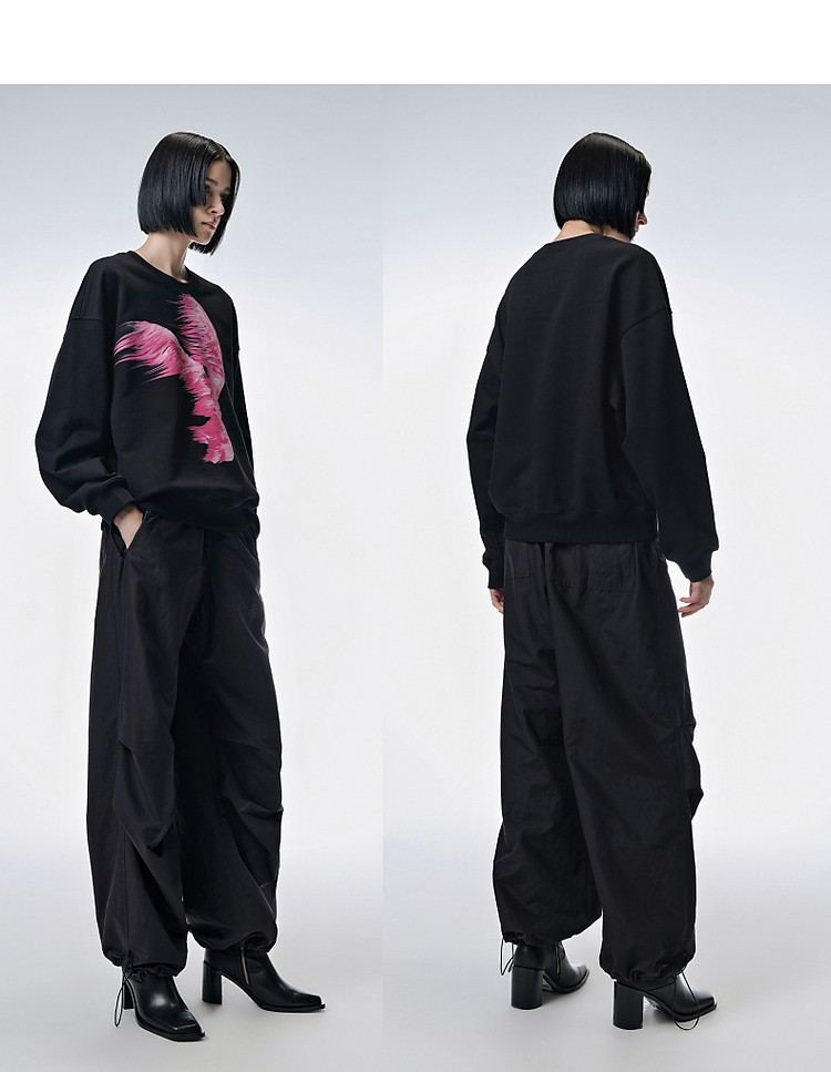镂空爱心休闲裤女2025夏设计感长裤子抽绳阔腿裤 235219