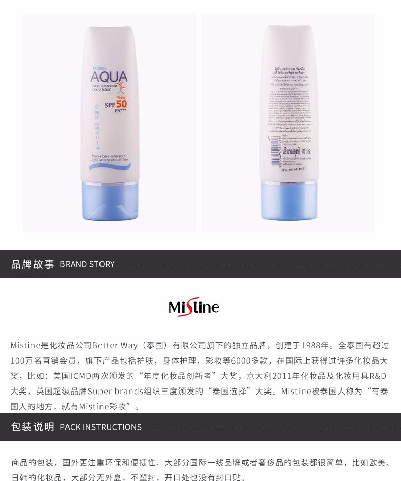 商品名称:Mistine/蜜丝婷 防晒霜70ml