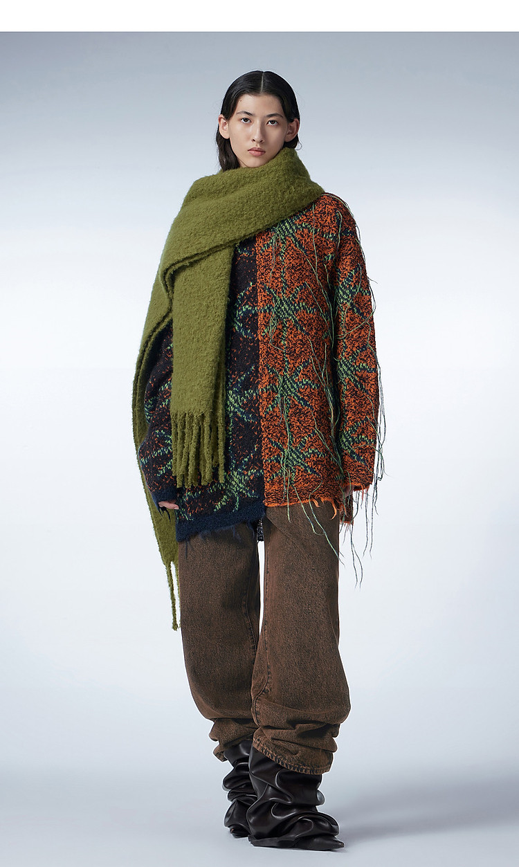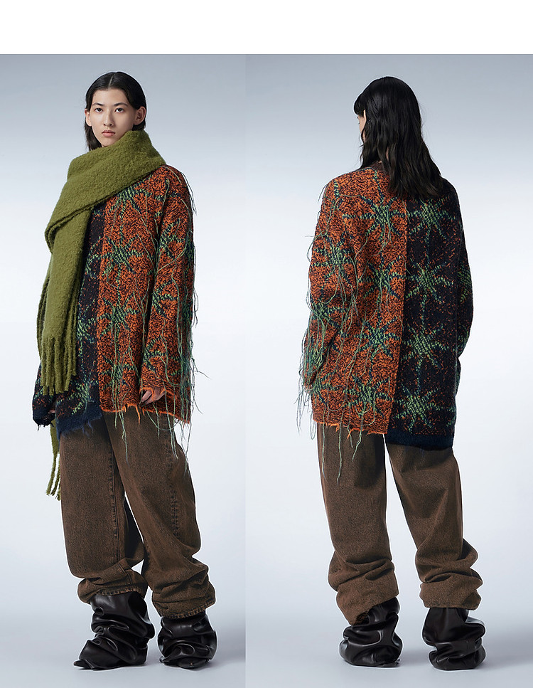 冬毛针织衫宽松圆领流苏毛衫女 518347