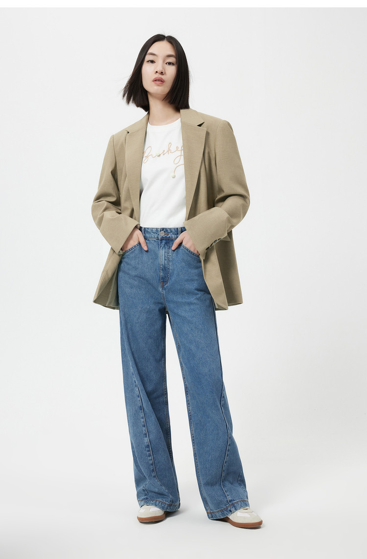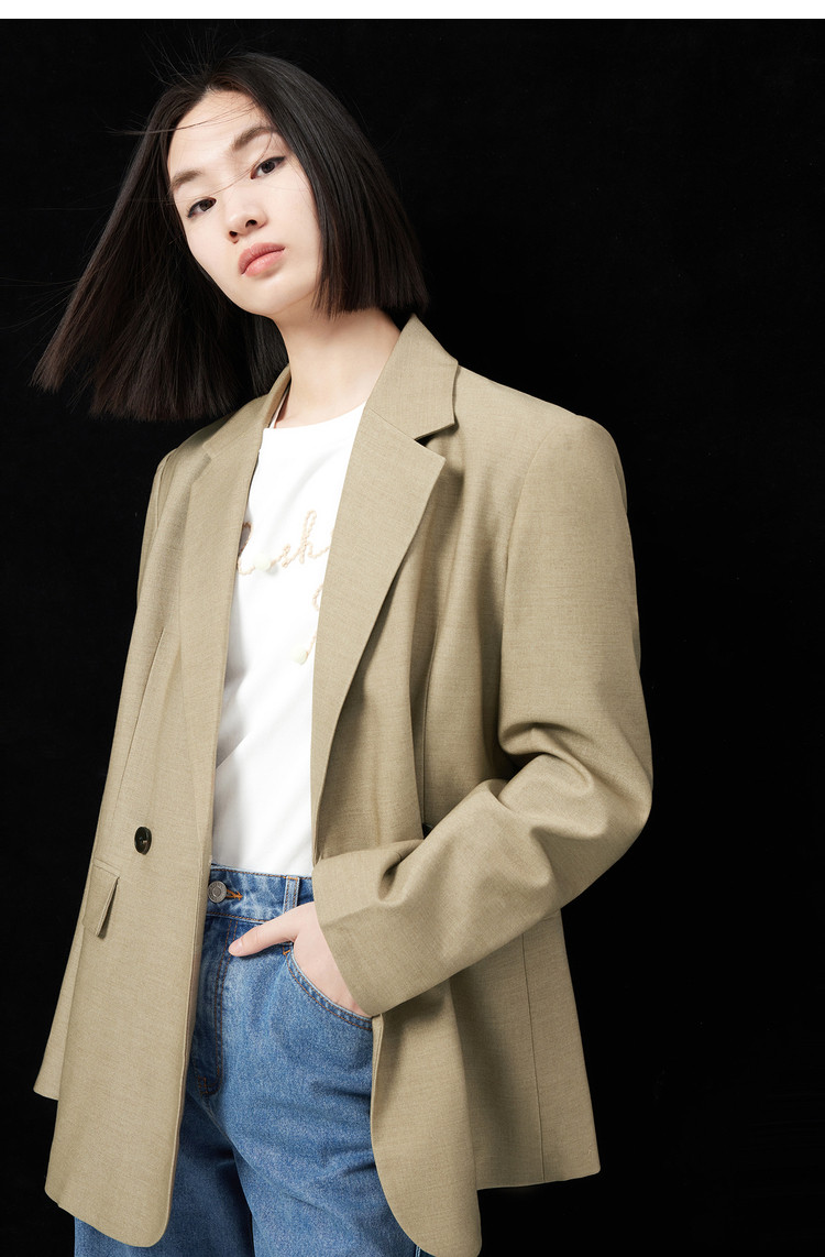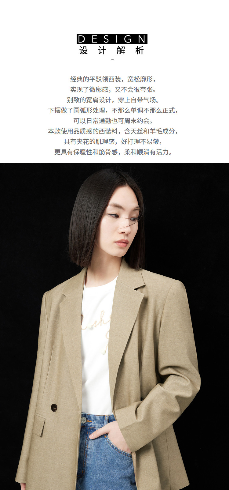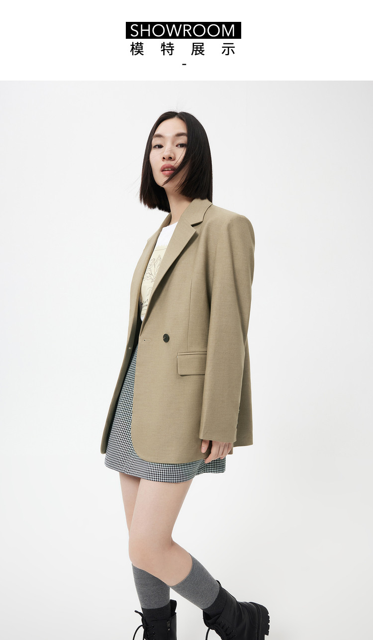商品名称:【宽松阔版】春季西服质纯色简洁优雅通勤时尚双排扣宽松西装外套 543195