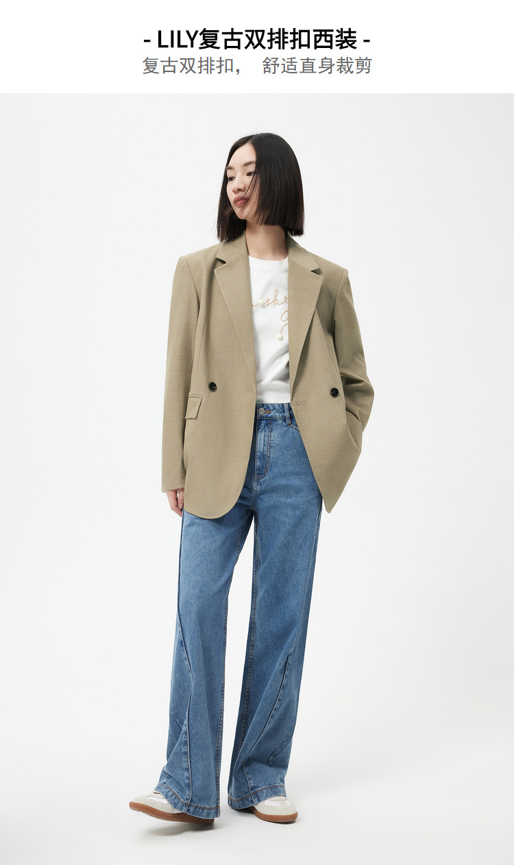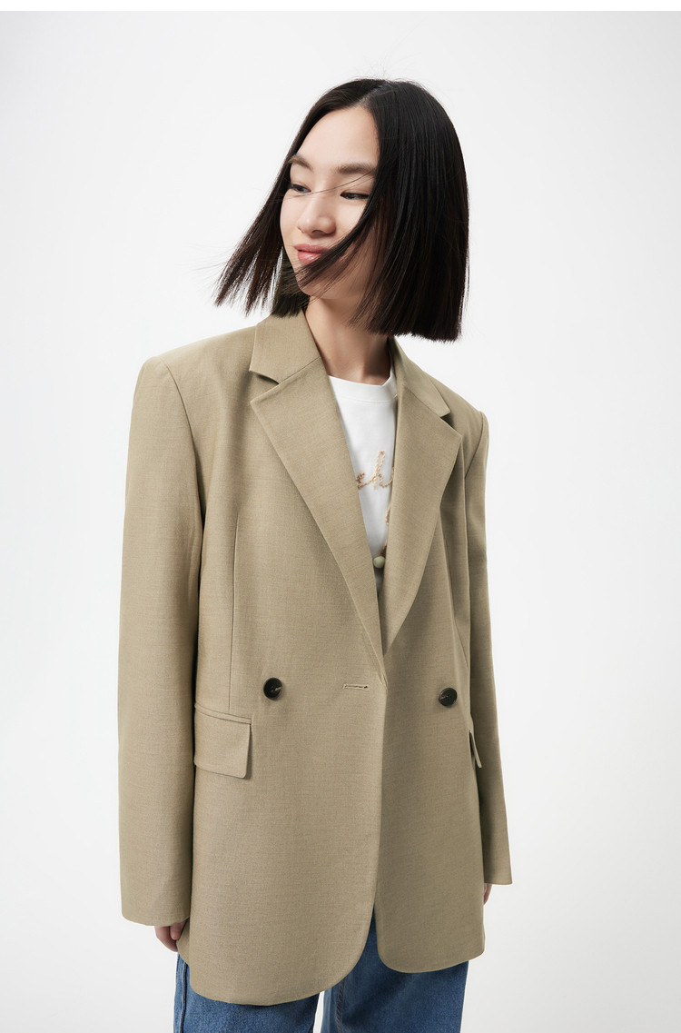 【宽松阔版】春季西服质纯色简洁优雅通勤时尚双排扣宽松西装外套 543195