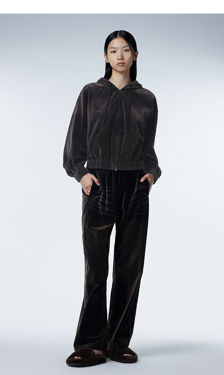 秋休闲裤棉质宽松阔腿水洗裤装女 036619