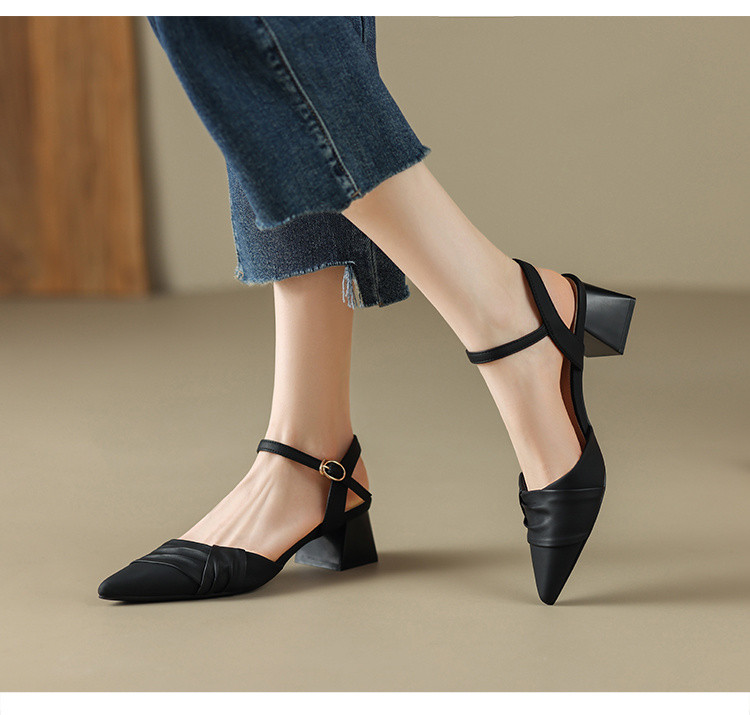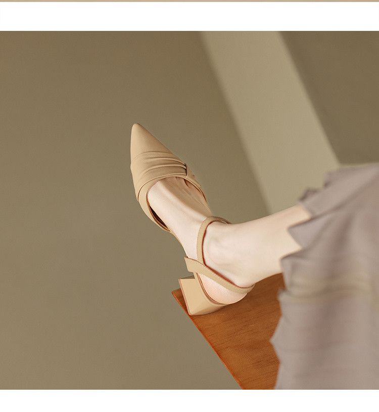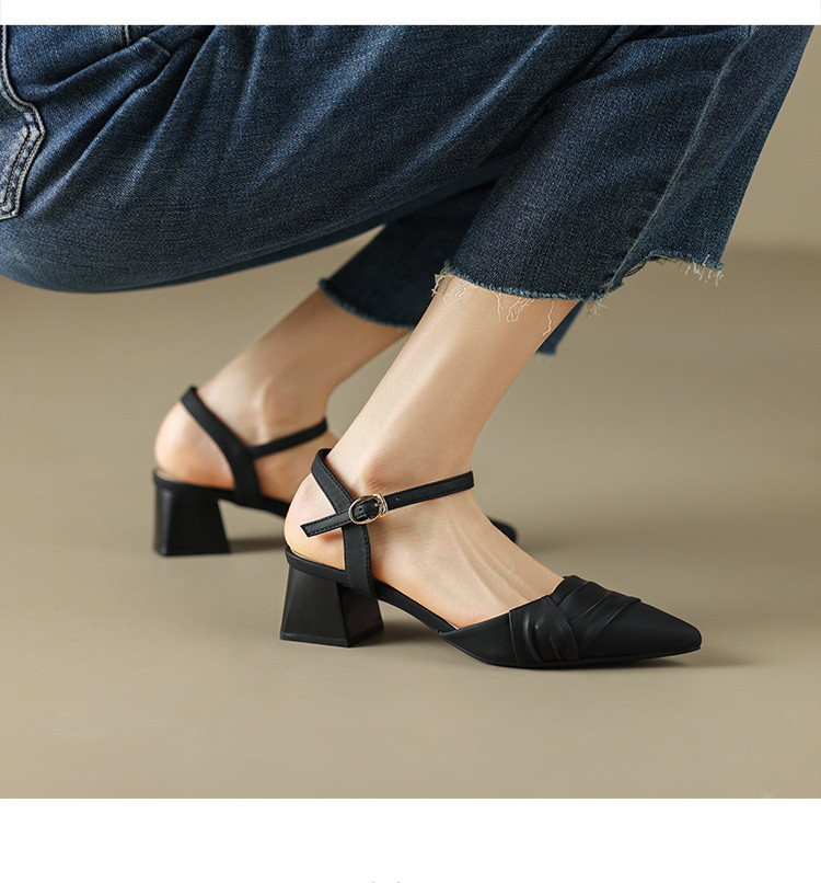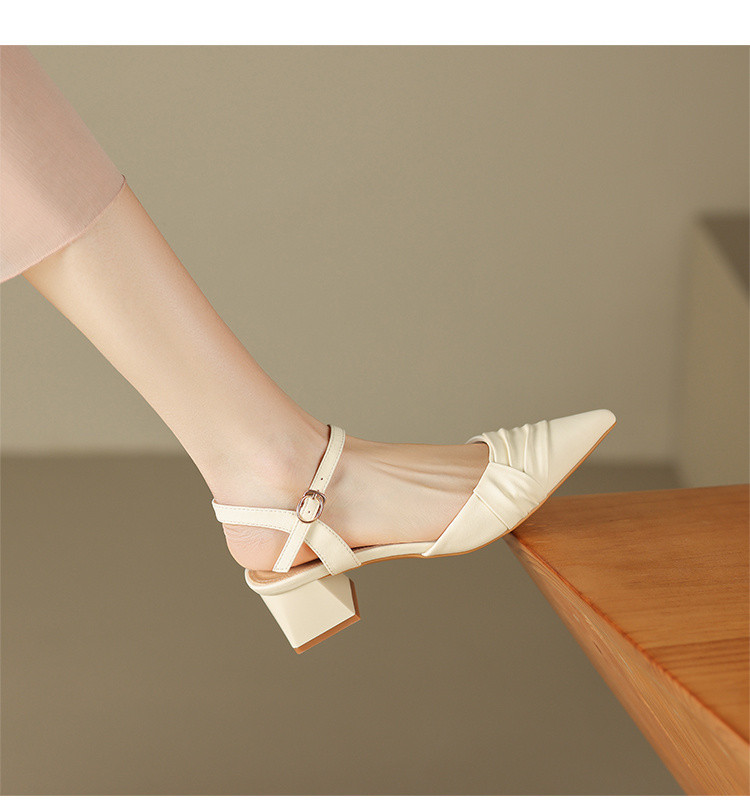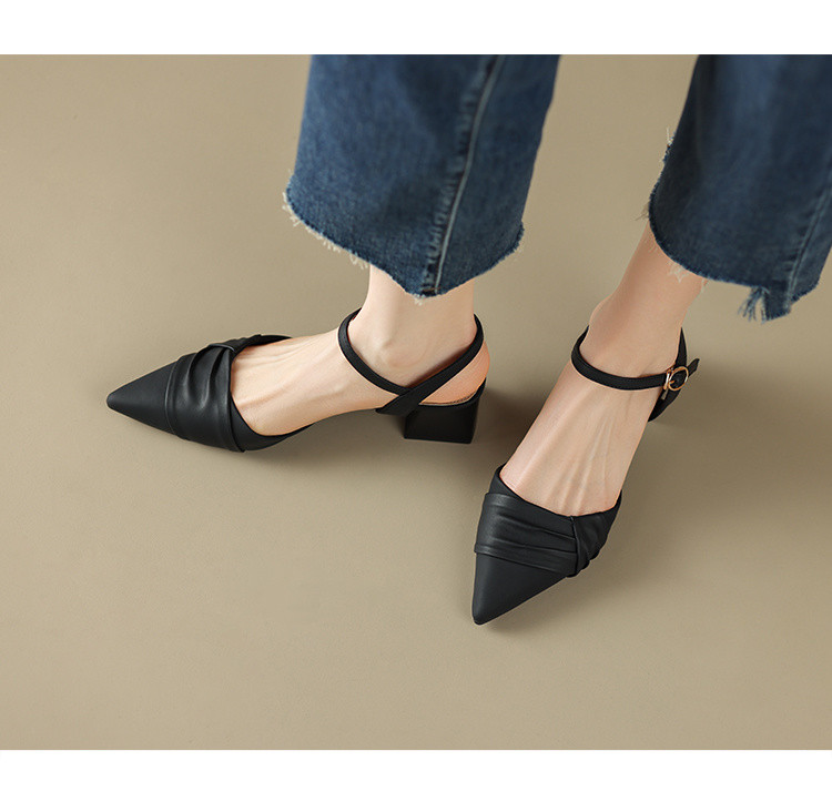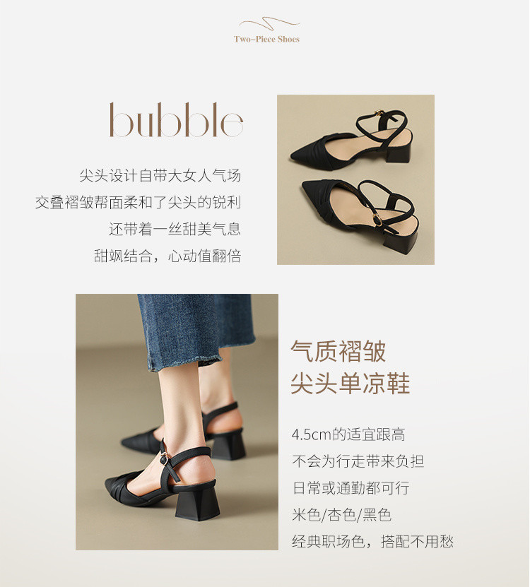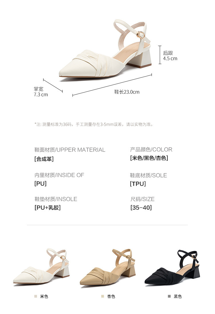 商品名称:【褶皱帮面】气质尖头粗跟鞋包头后空凉鞋高级感女士凉鞋夏季凉鞋 234240