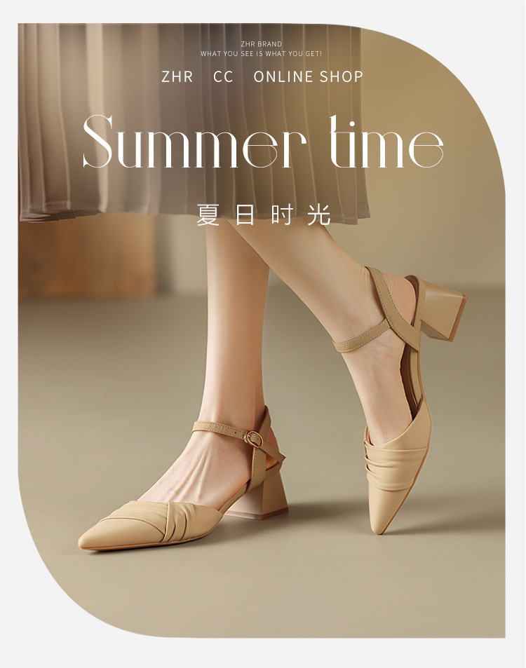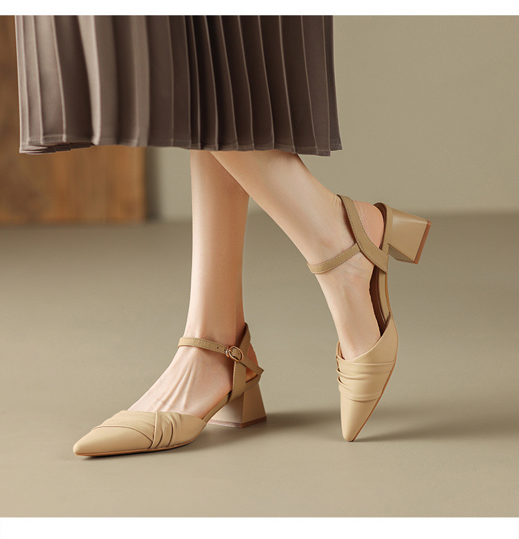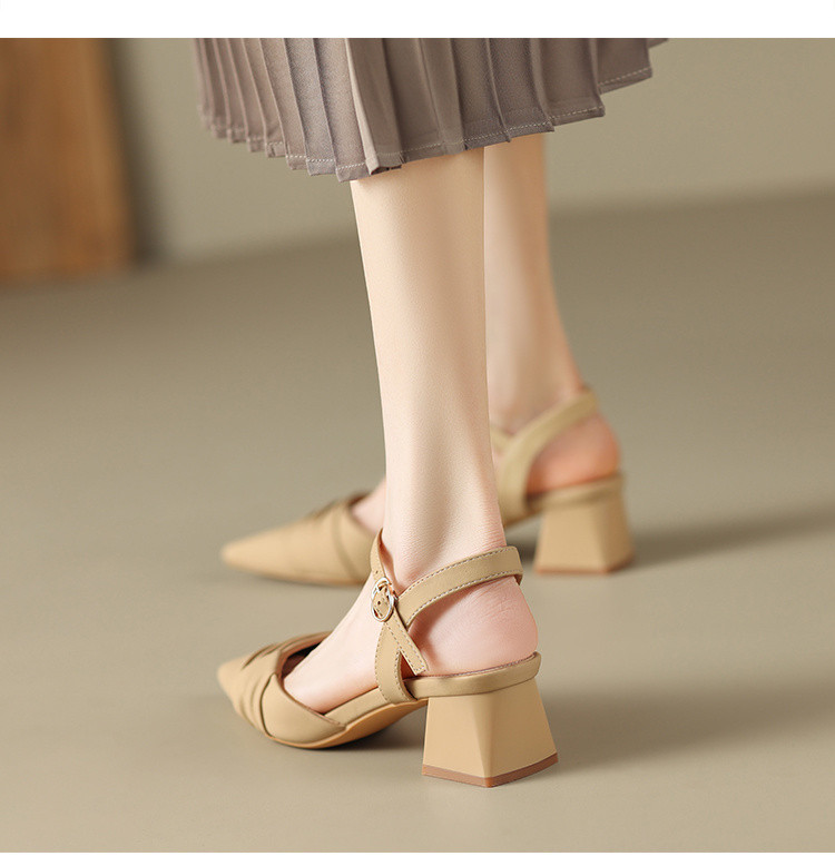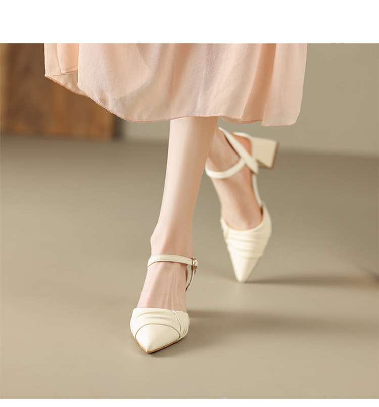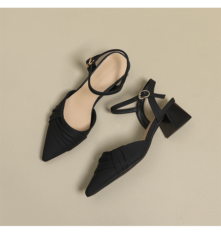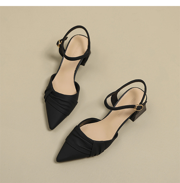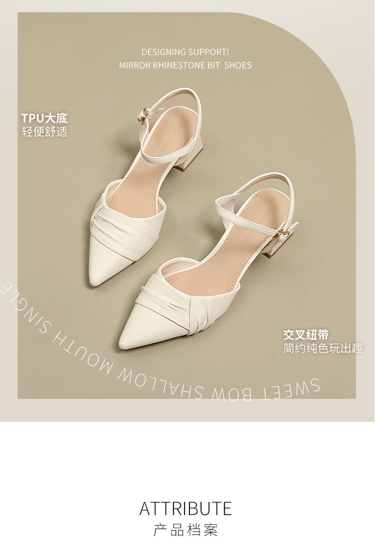 商品名称:【褶皱帮面】气质尖头粗跟鞋包头后空凉鞋高级感女士凉鞋夏季凉鞋 234240