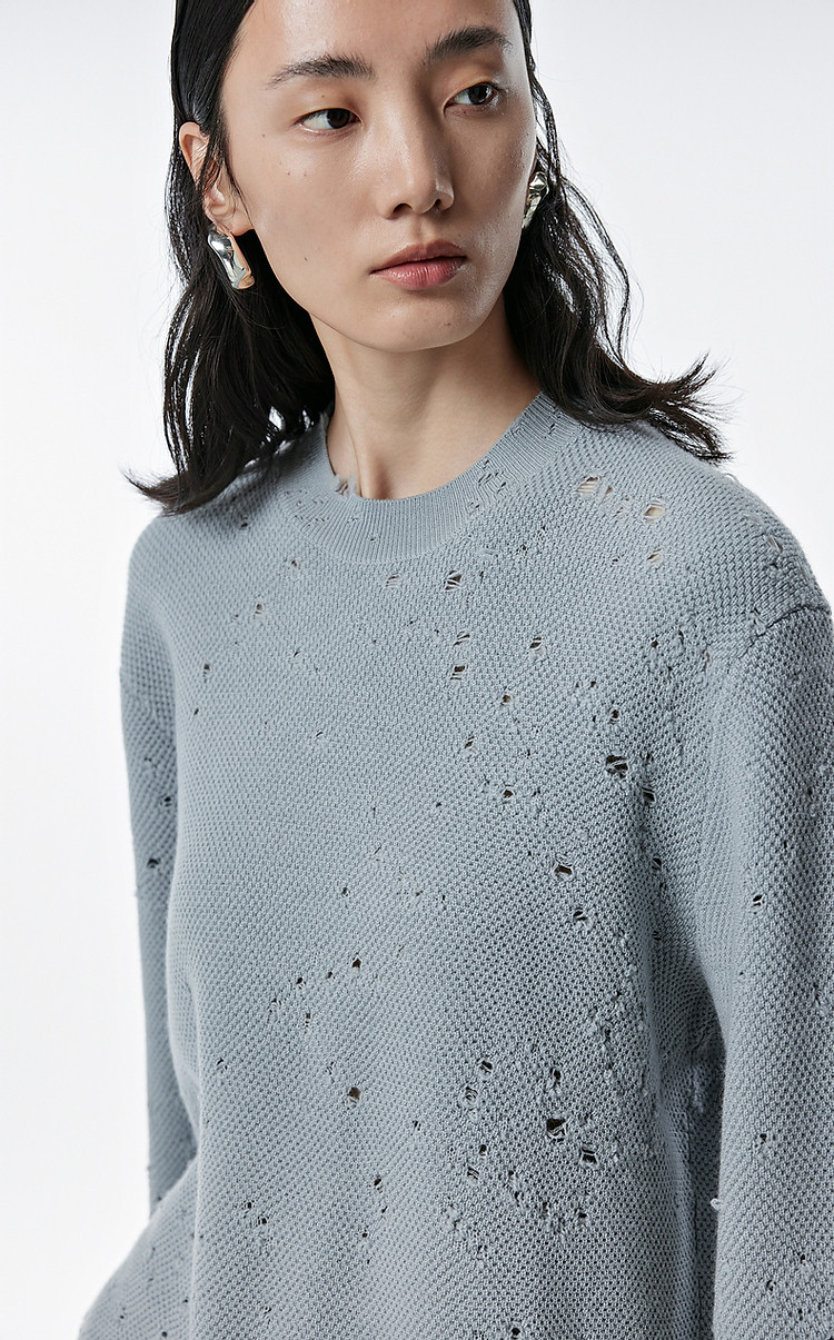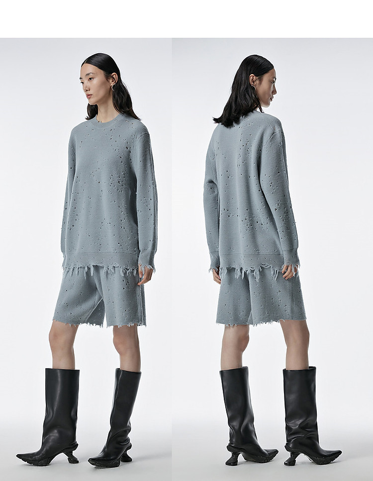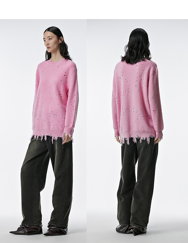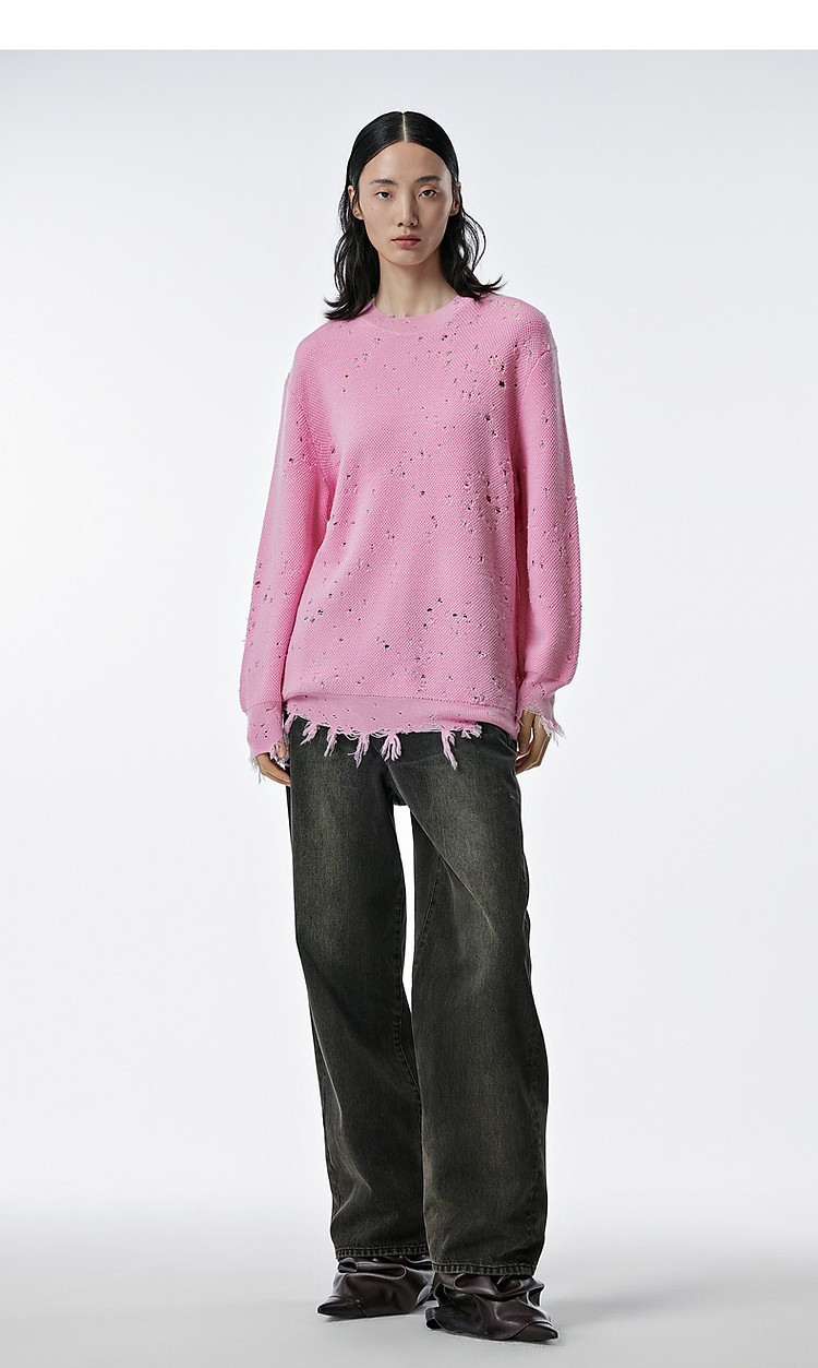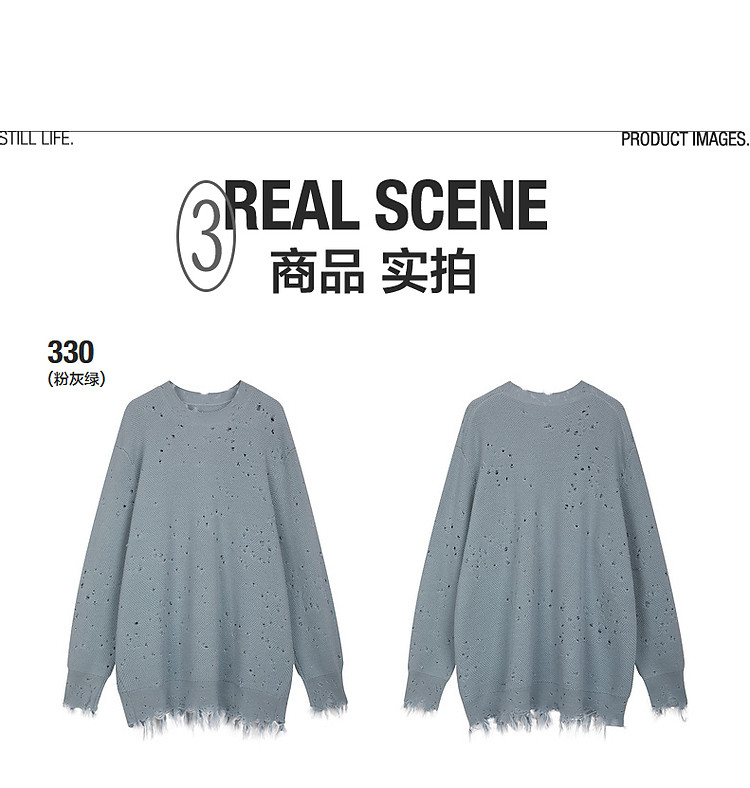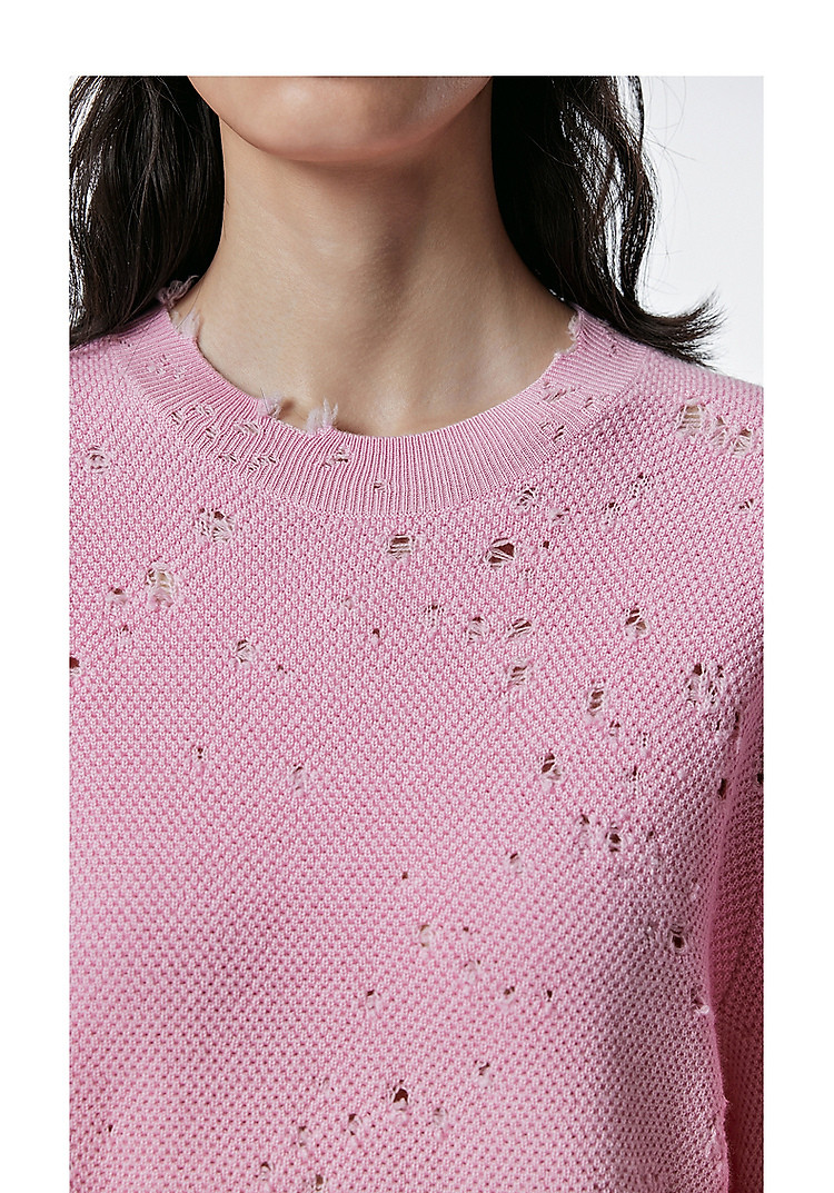 秋毛针织衫宽松圆领镂空套头毛衫女 286603