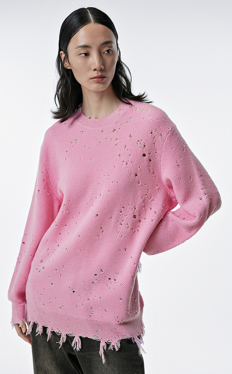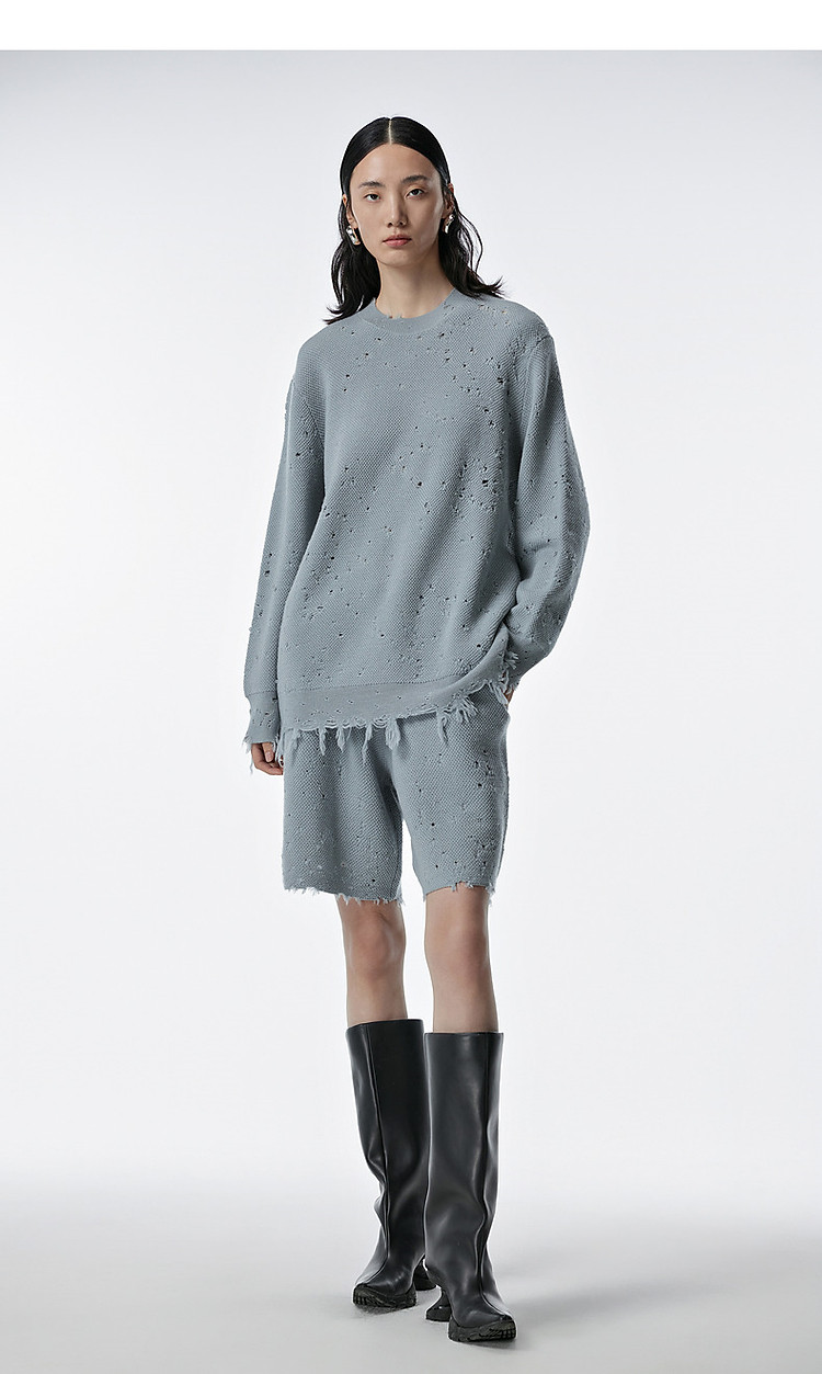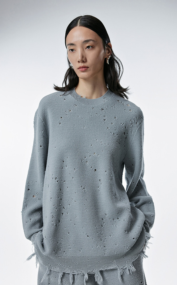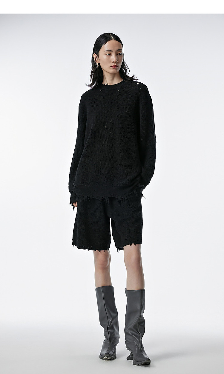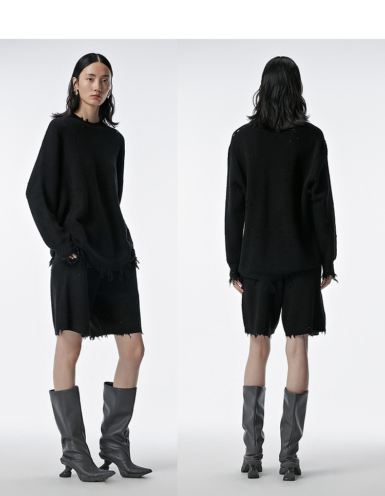 秋毛针织衫宽松圆领镂空套头毛衫女 286603