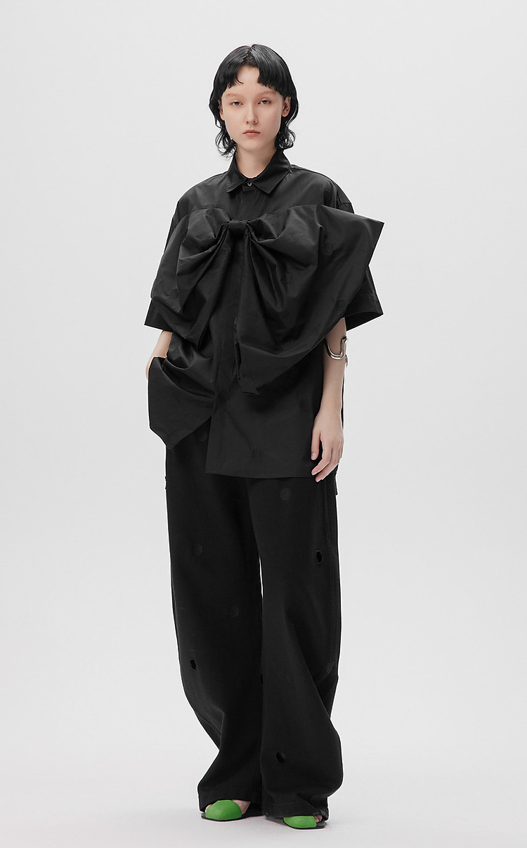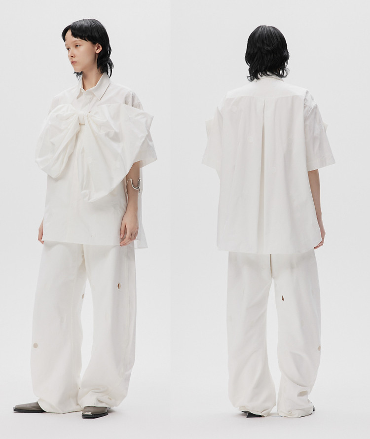 秋衬衫蝴蝶结刺绣宽松棉质上衣女 903691