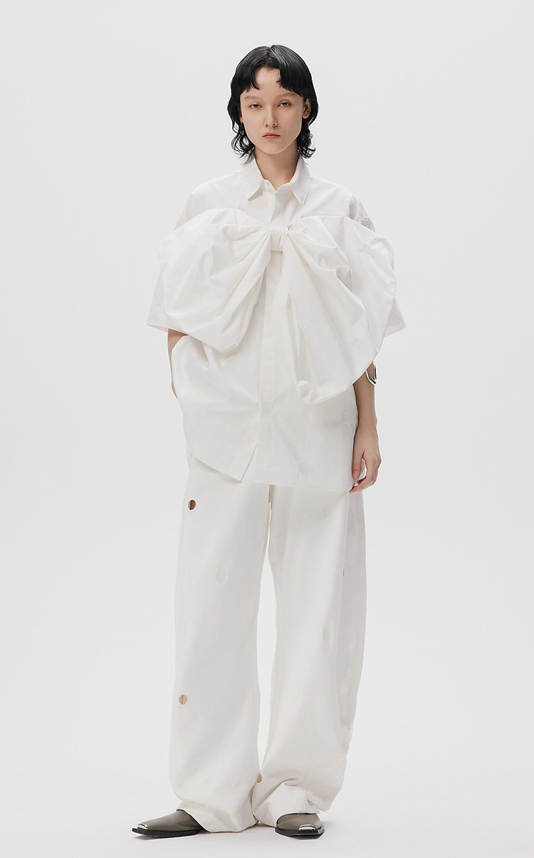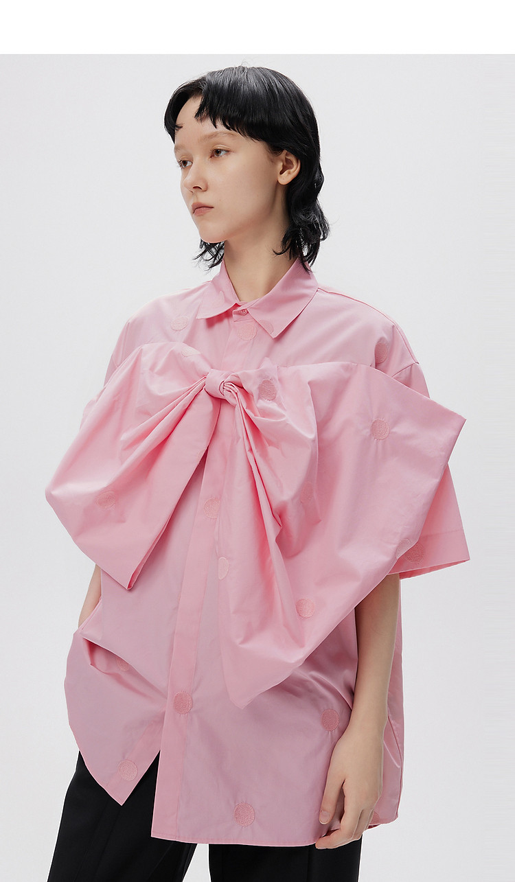 商品名称:秋衬衫蝴蝶结刺绣宽松棉质上衣女 903691