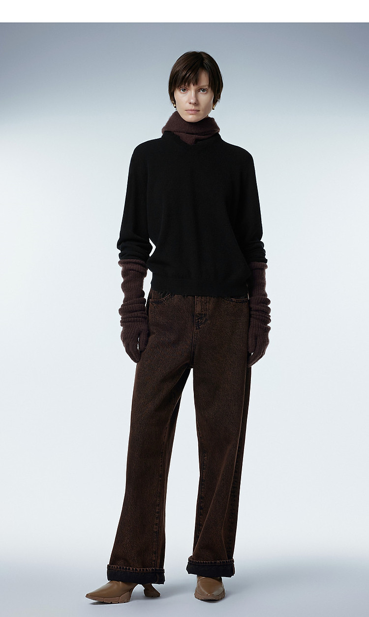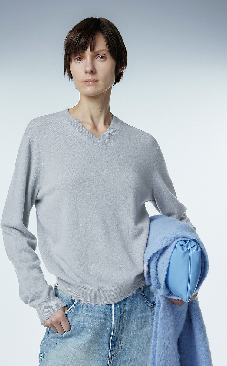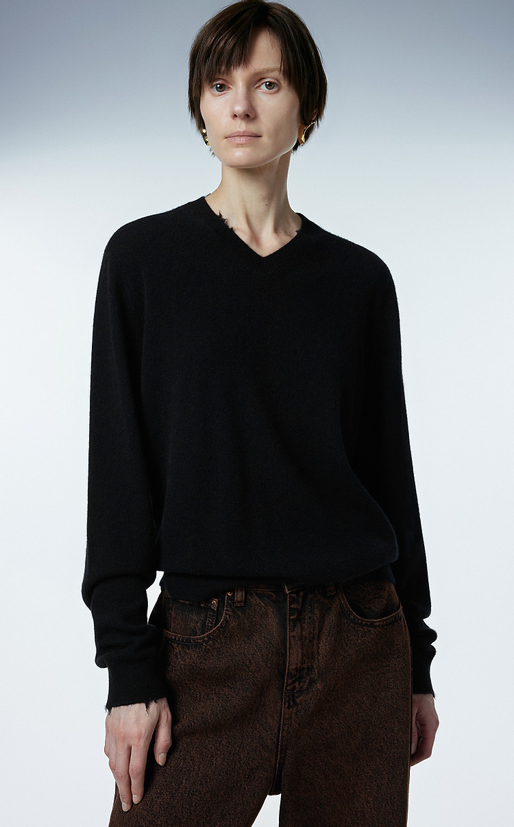 冬羊绒衫V领长袖套头上衣女 166411