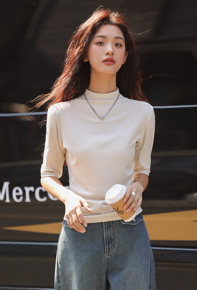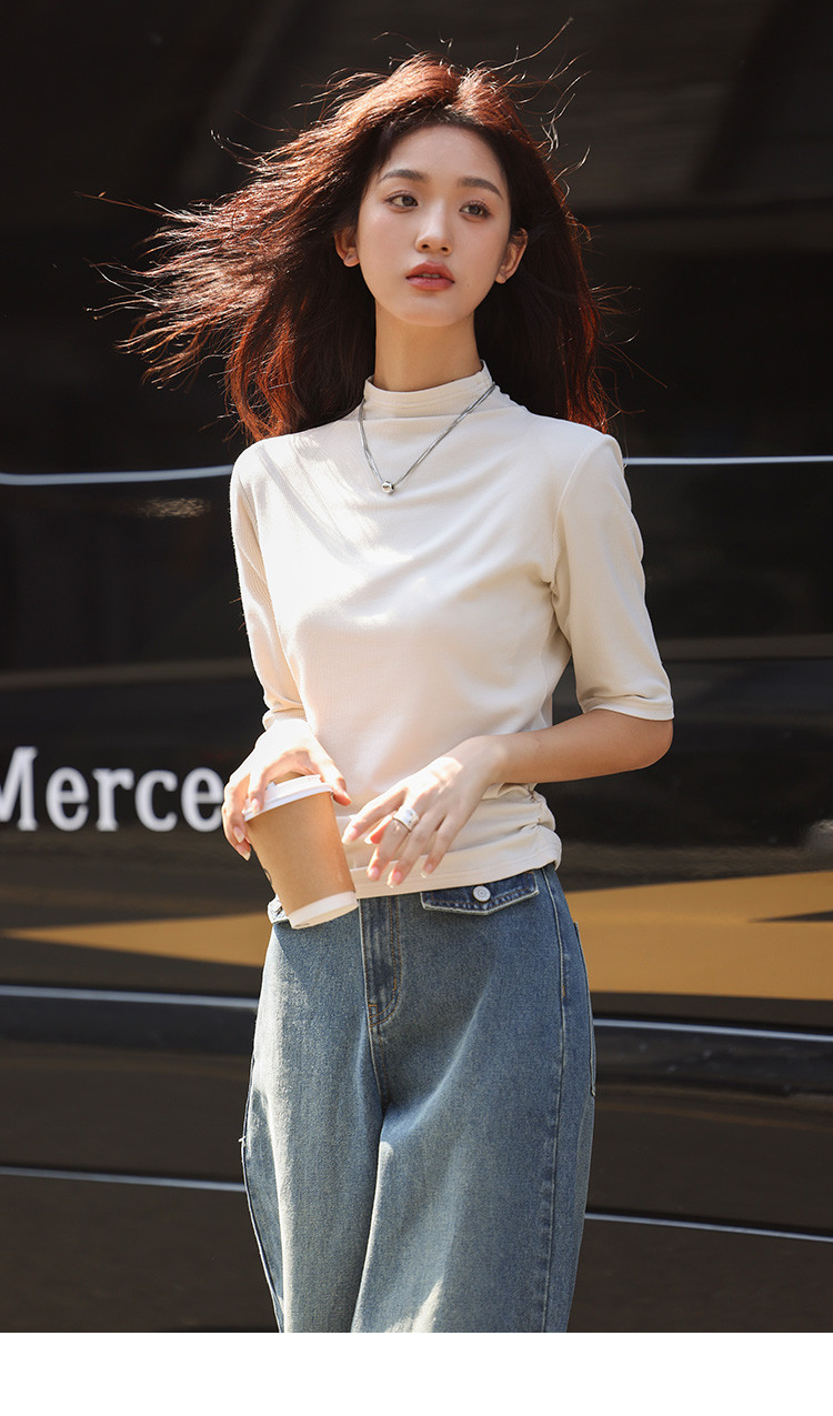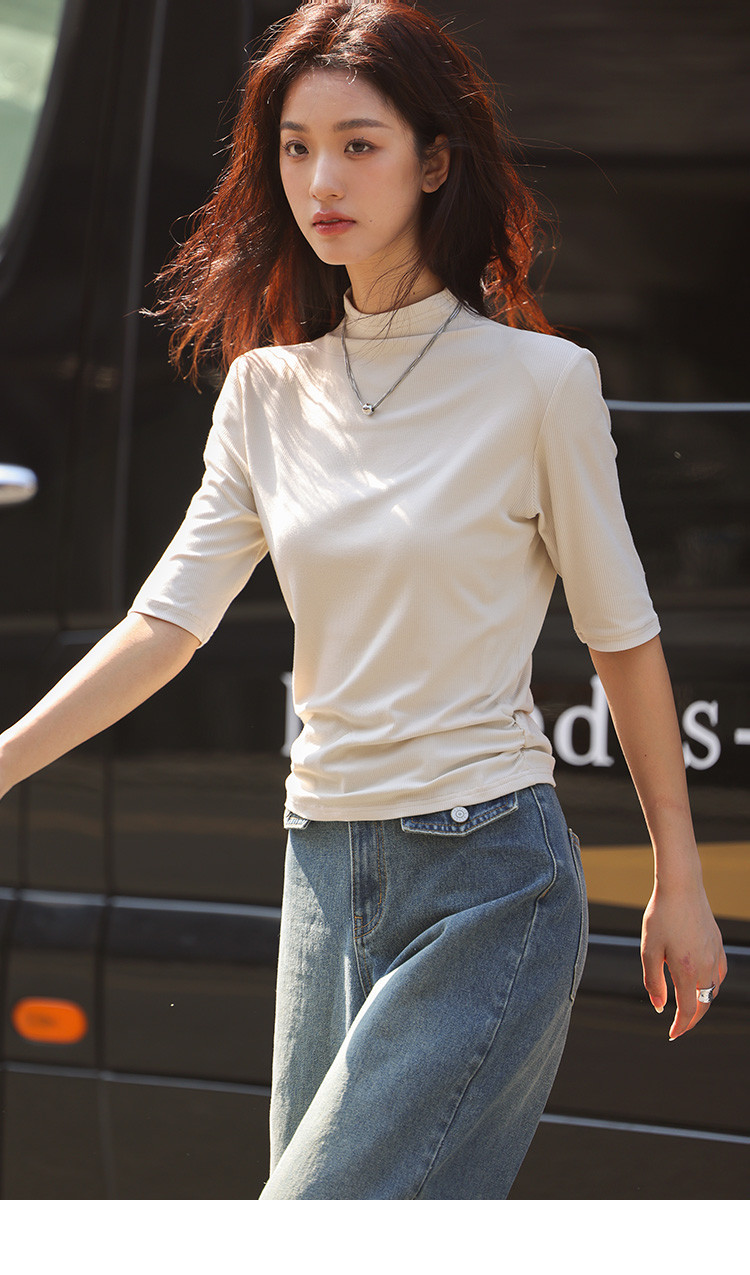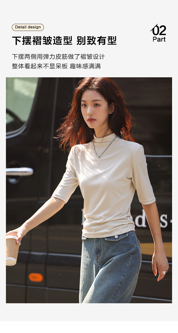 商品名称:【基础中袖T恤】秋款小众基础款打底衫法式中高领T恤女 029570