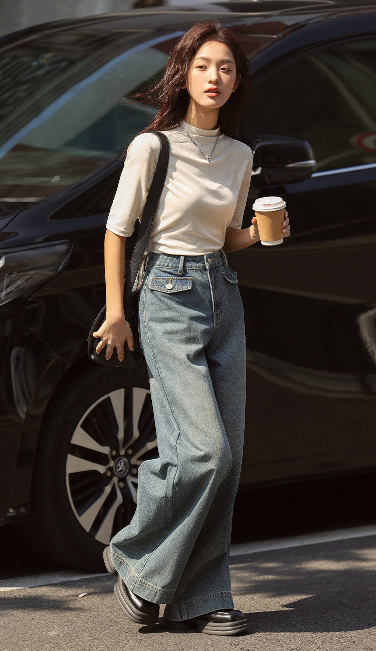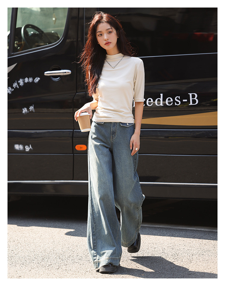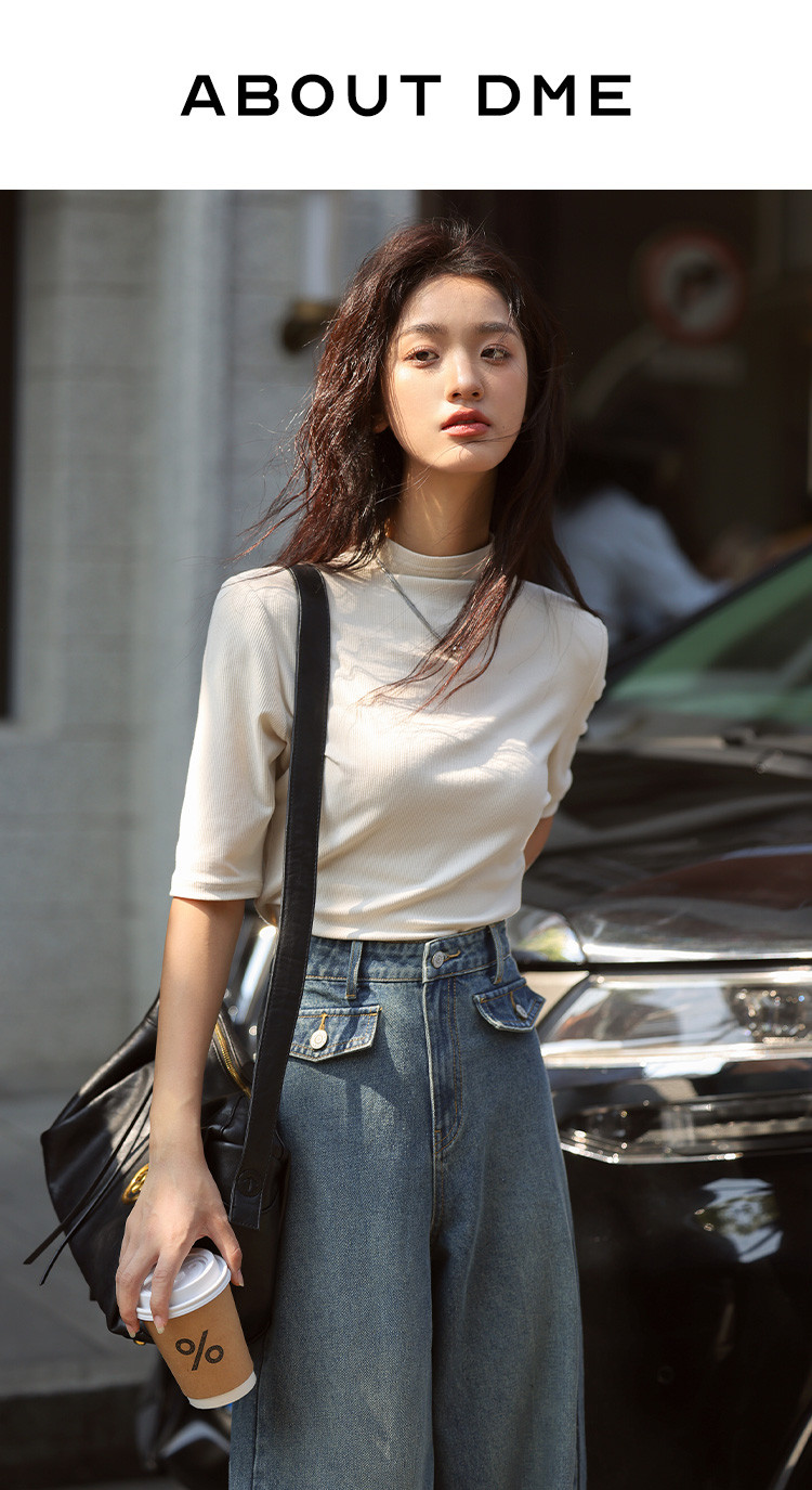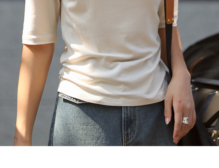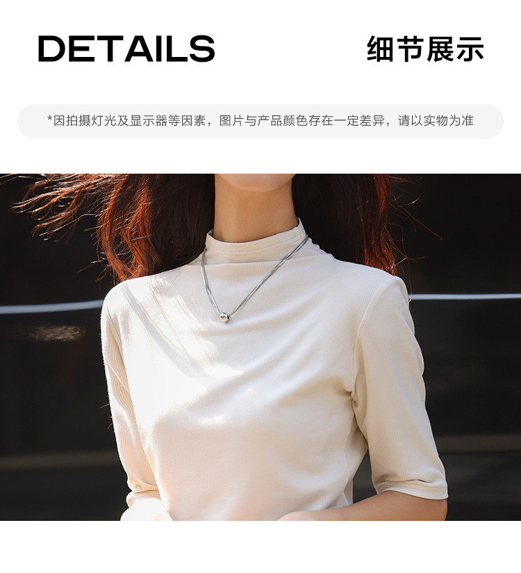 商品名称:【基础中袖T恤】秋款小众基础款打底衫法式中高领T恤女 029570