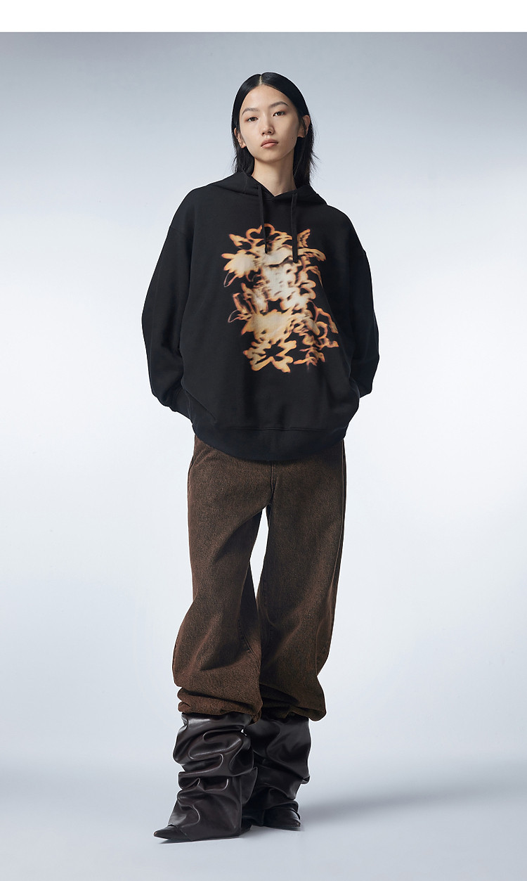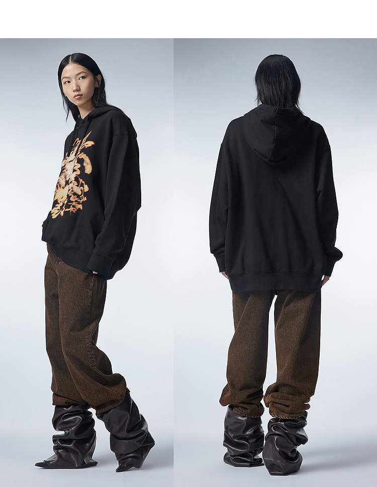 秋卫衣棉质宽松印花连帽上衣女 677451