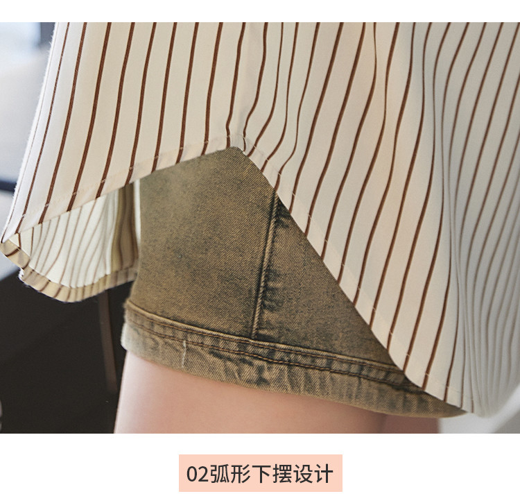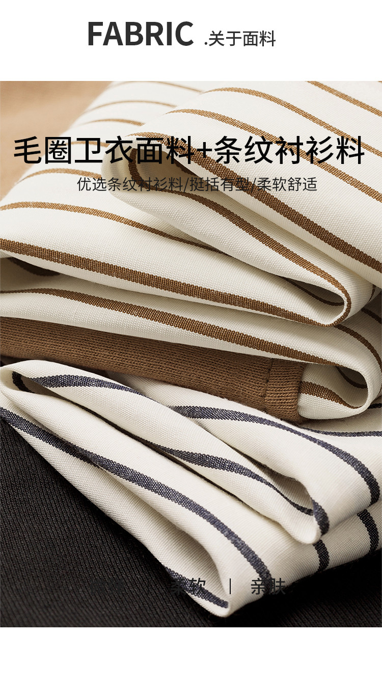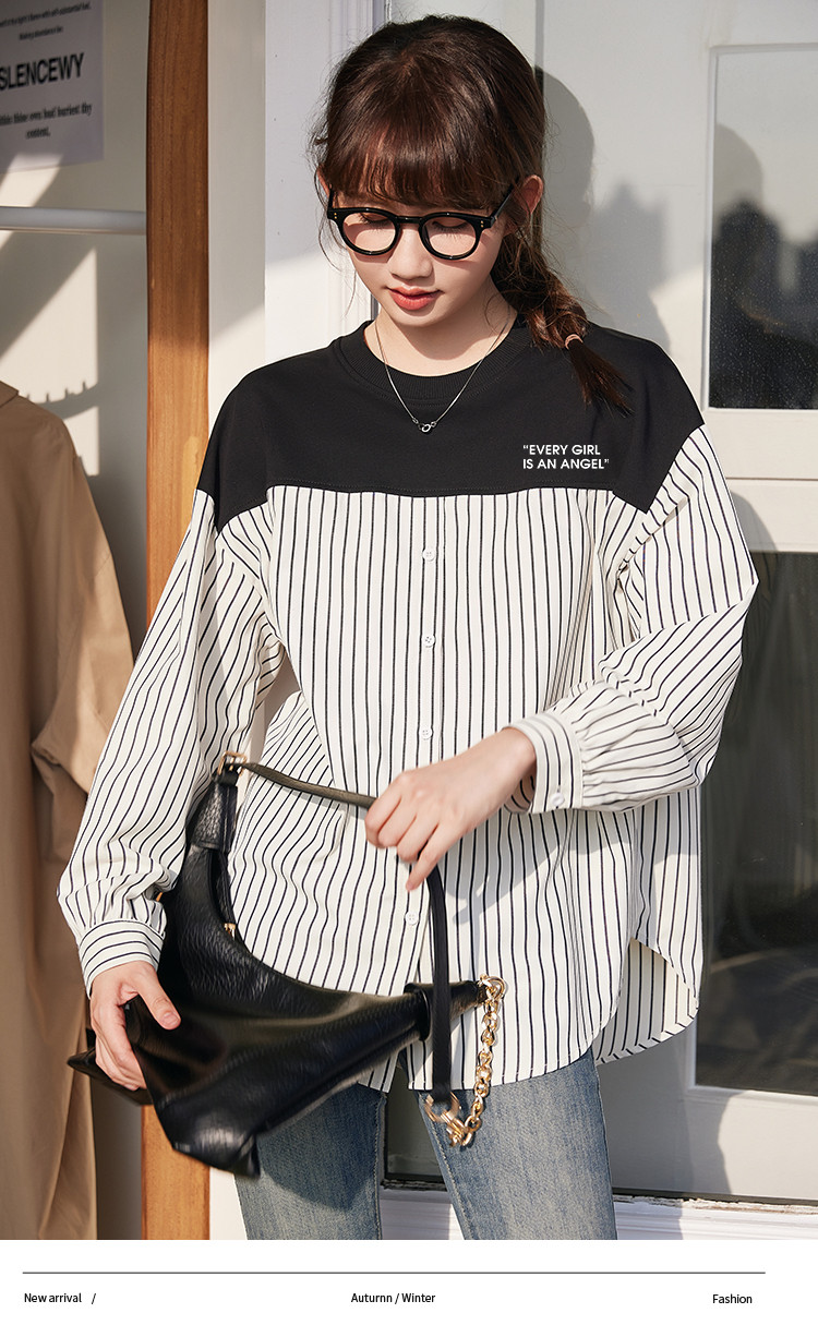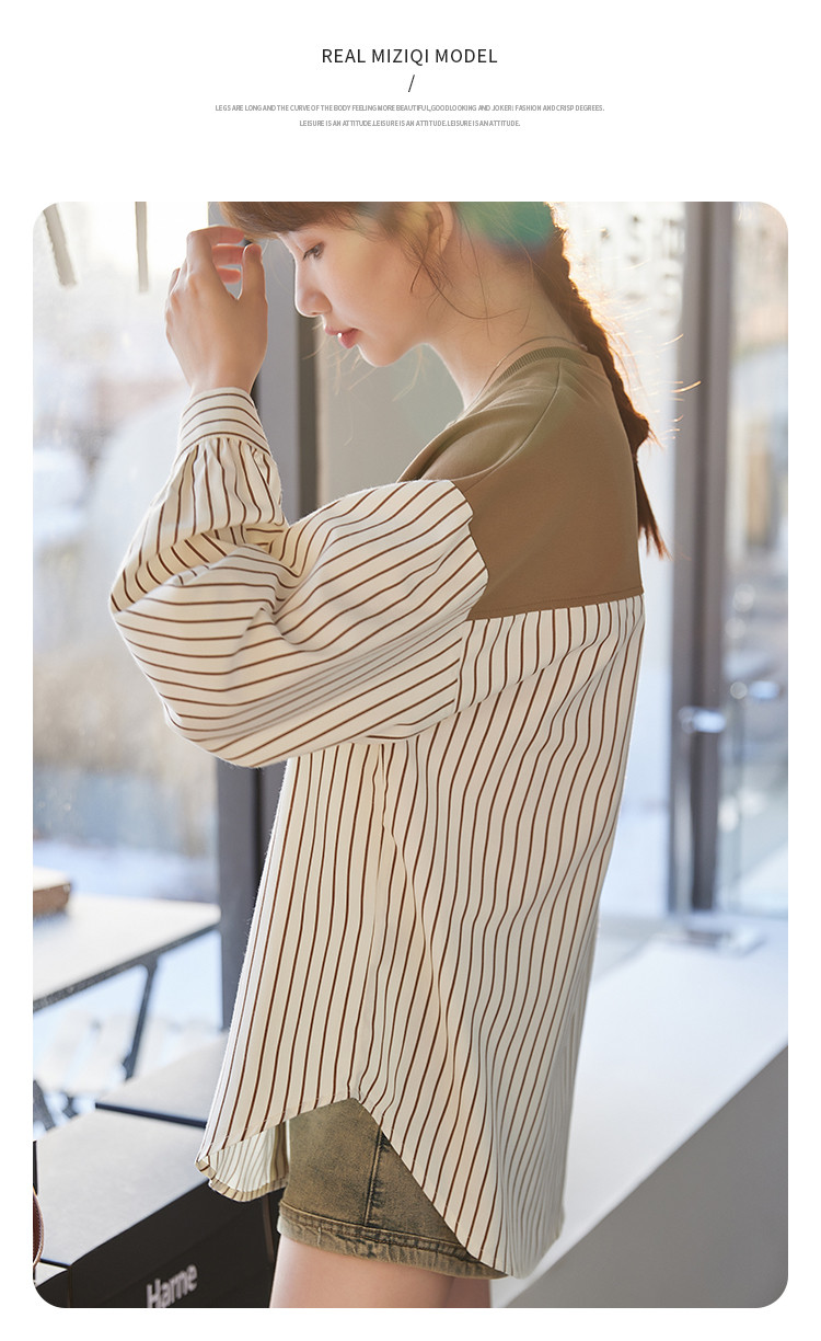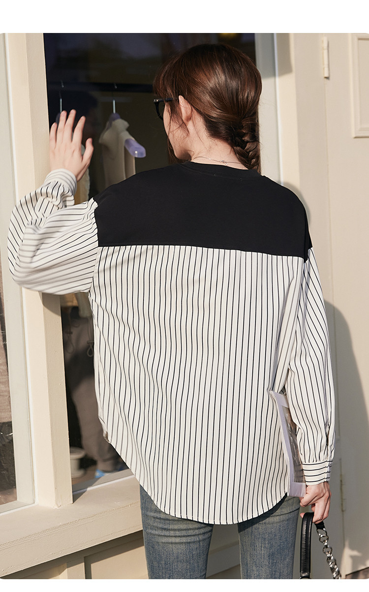 商品名称:米子旗春秋季款女式假两件条纹卫衣宽松圆领长袖上衣 414234