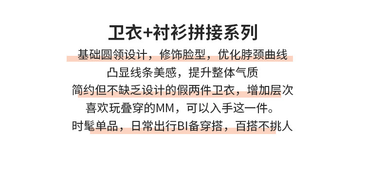 米子旗春秋季款女式假两件条纹卫衣宽松圆领长袖上衣 414234