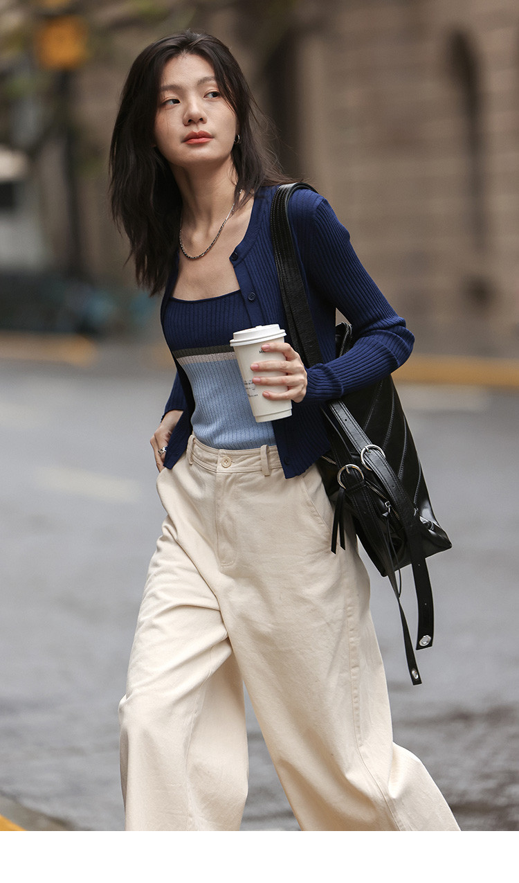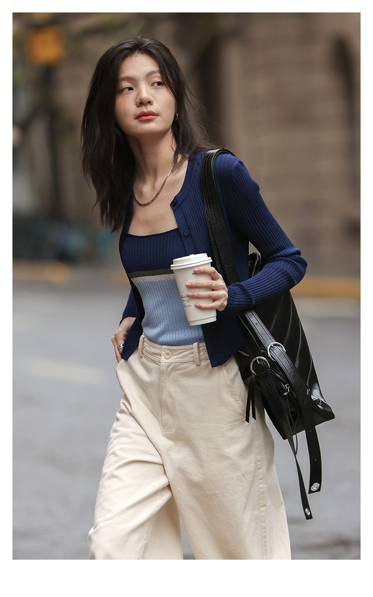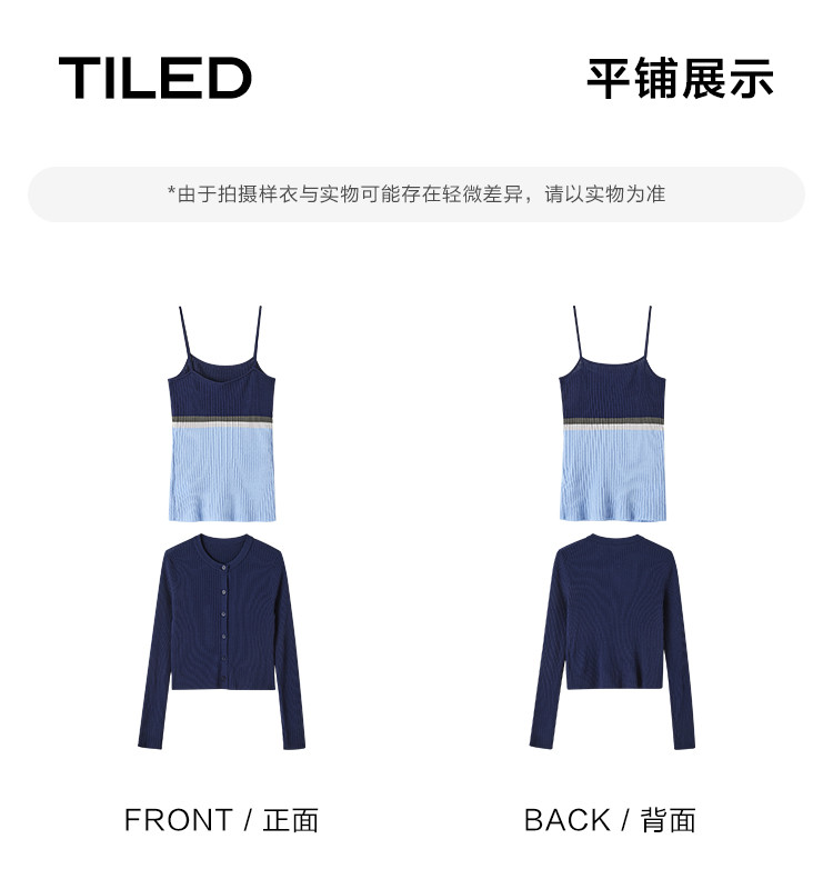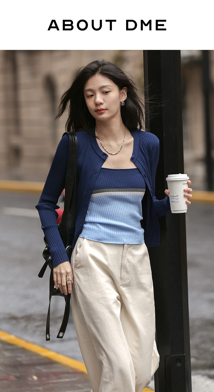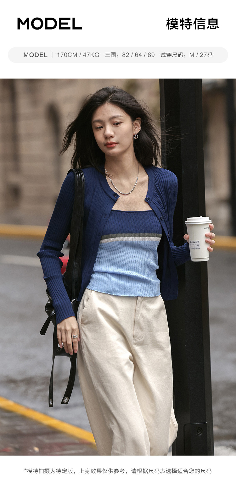 【海盐蓝针织套装】秋款气质撞色针织吊带+长袖针织衫女 478914