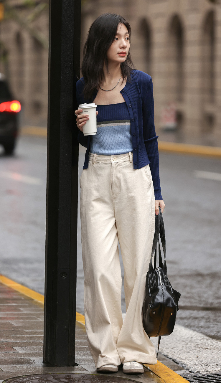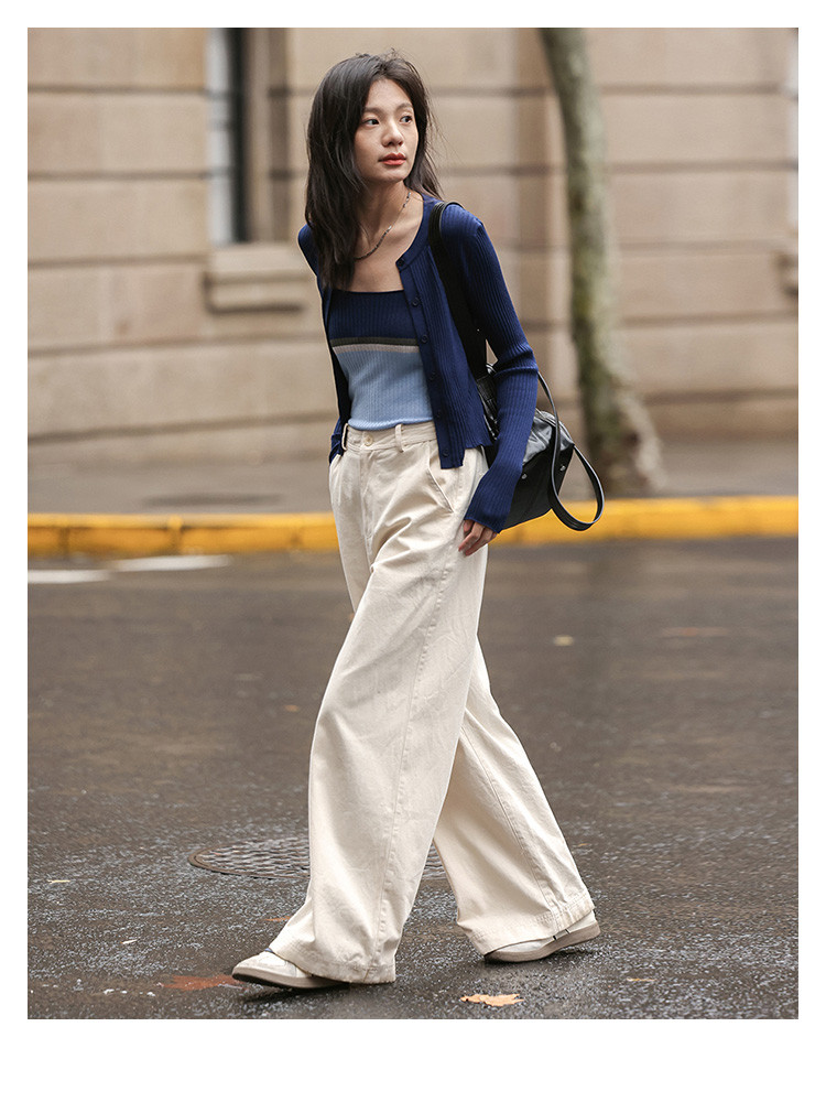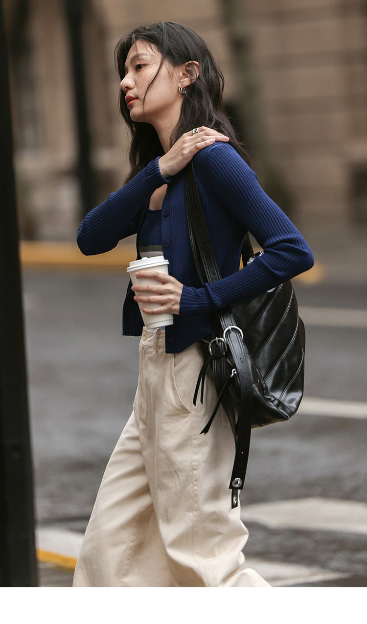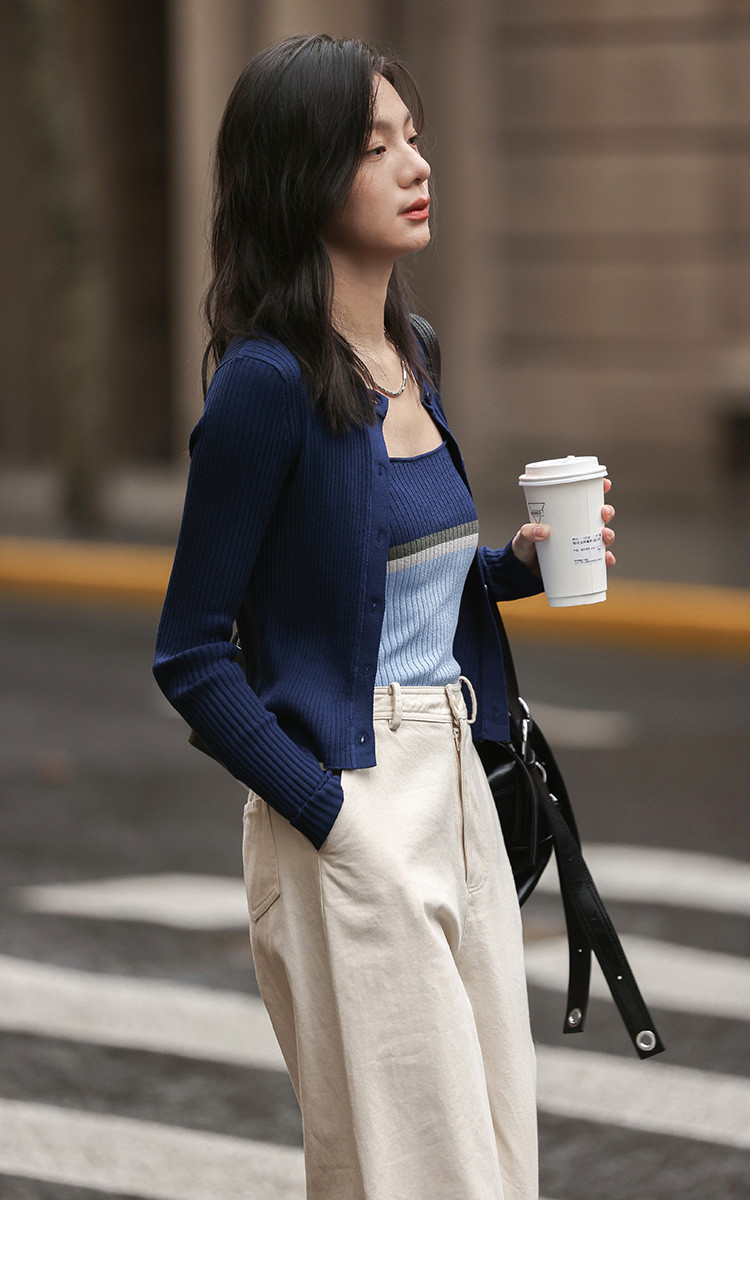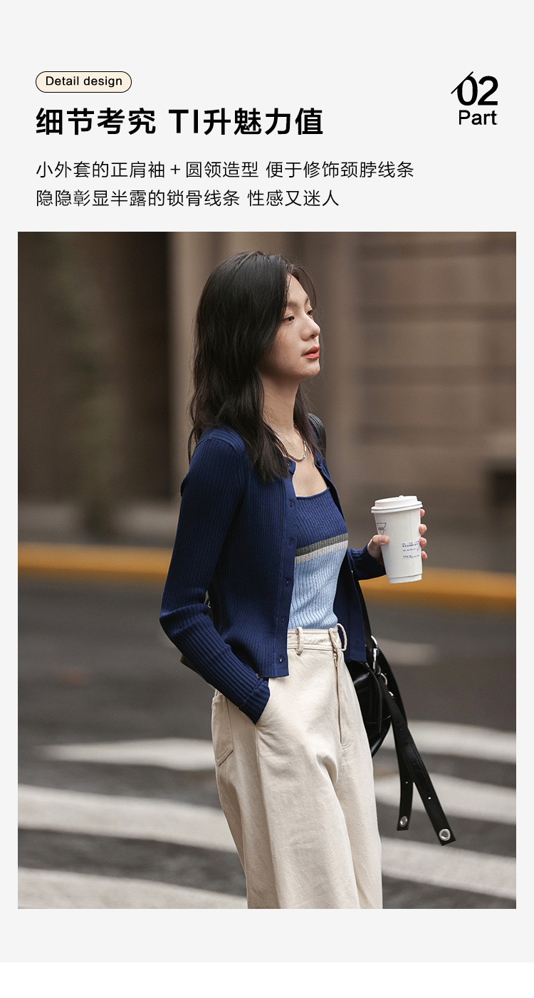 【海盐蓝针织套装】秋款气质撞色针织吊带+长袖针织衫女 478914