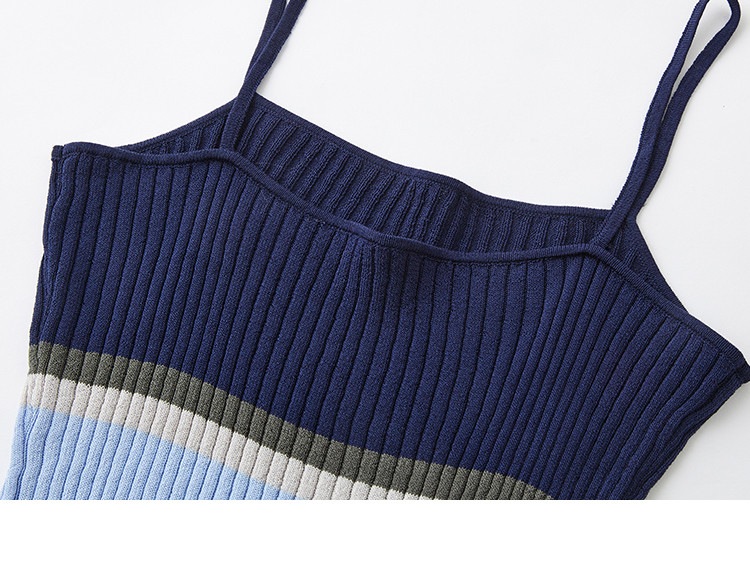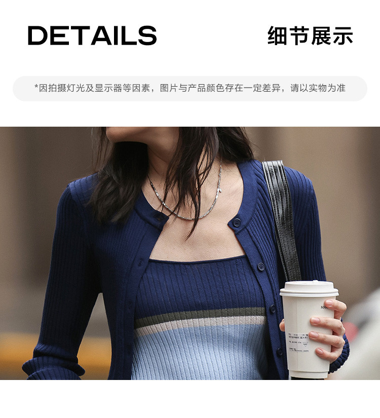 商品名称:【海盐蓝针织套装】秋款气质撞色针织吊带+长袖针织衫女 478914