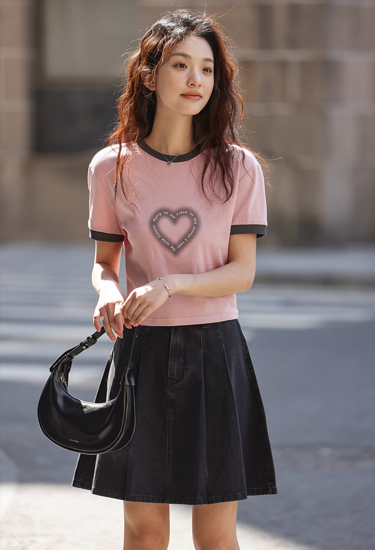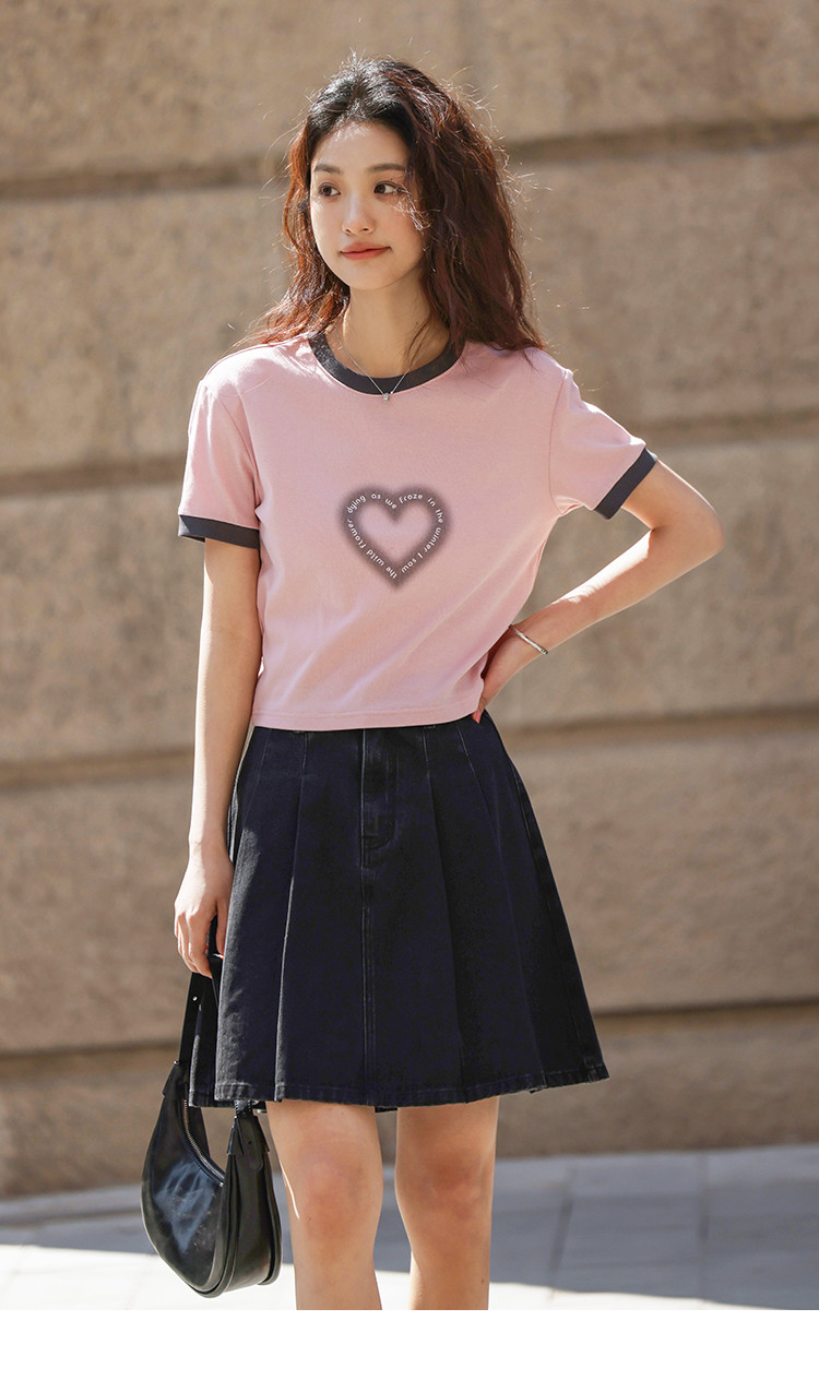 【爱心印花短袖T】年夏打破沉闷感撞色微辣修身不勒肉显瘦 498690