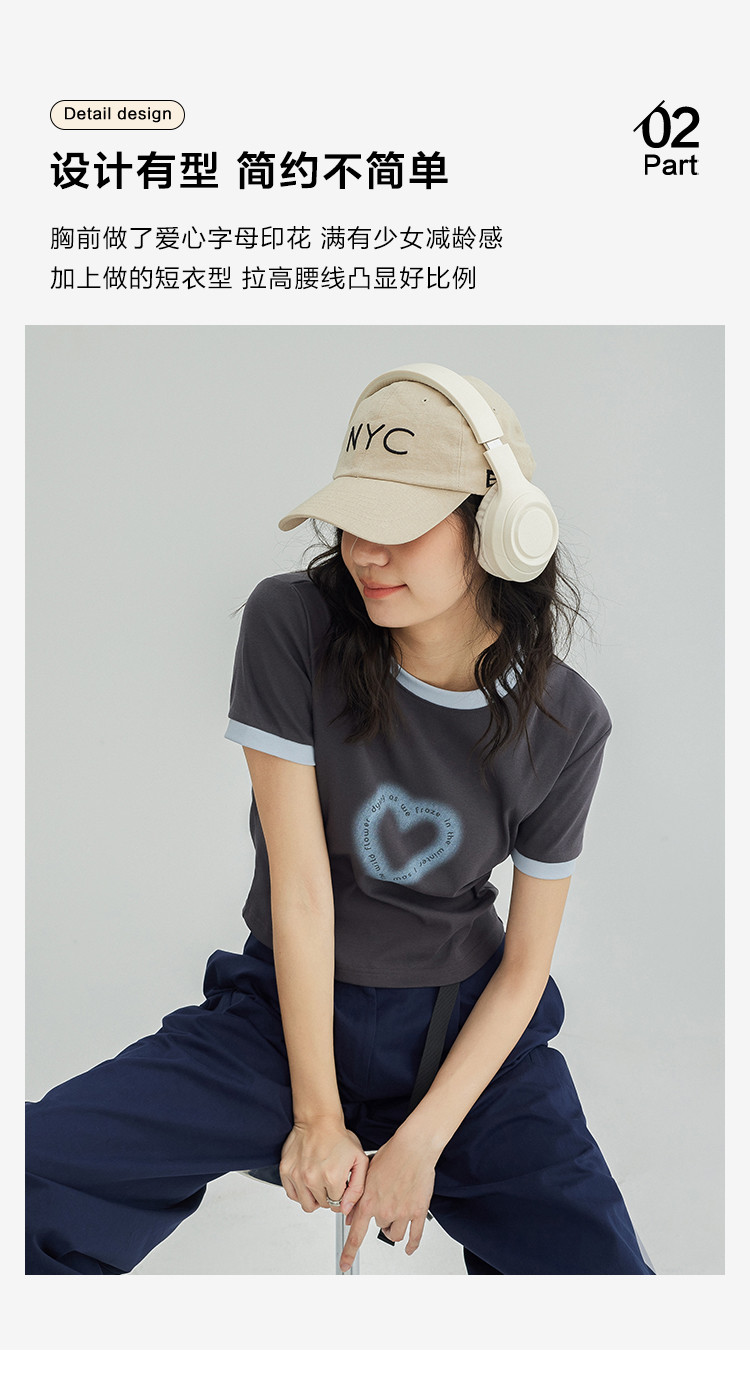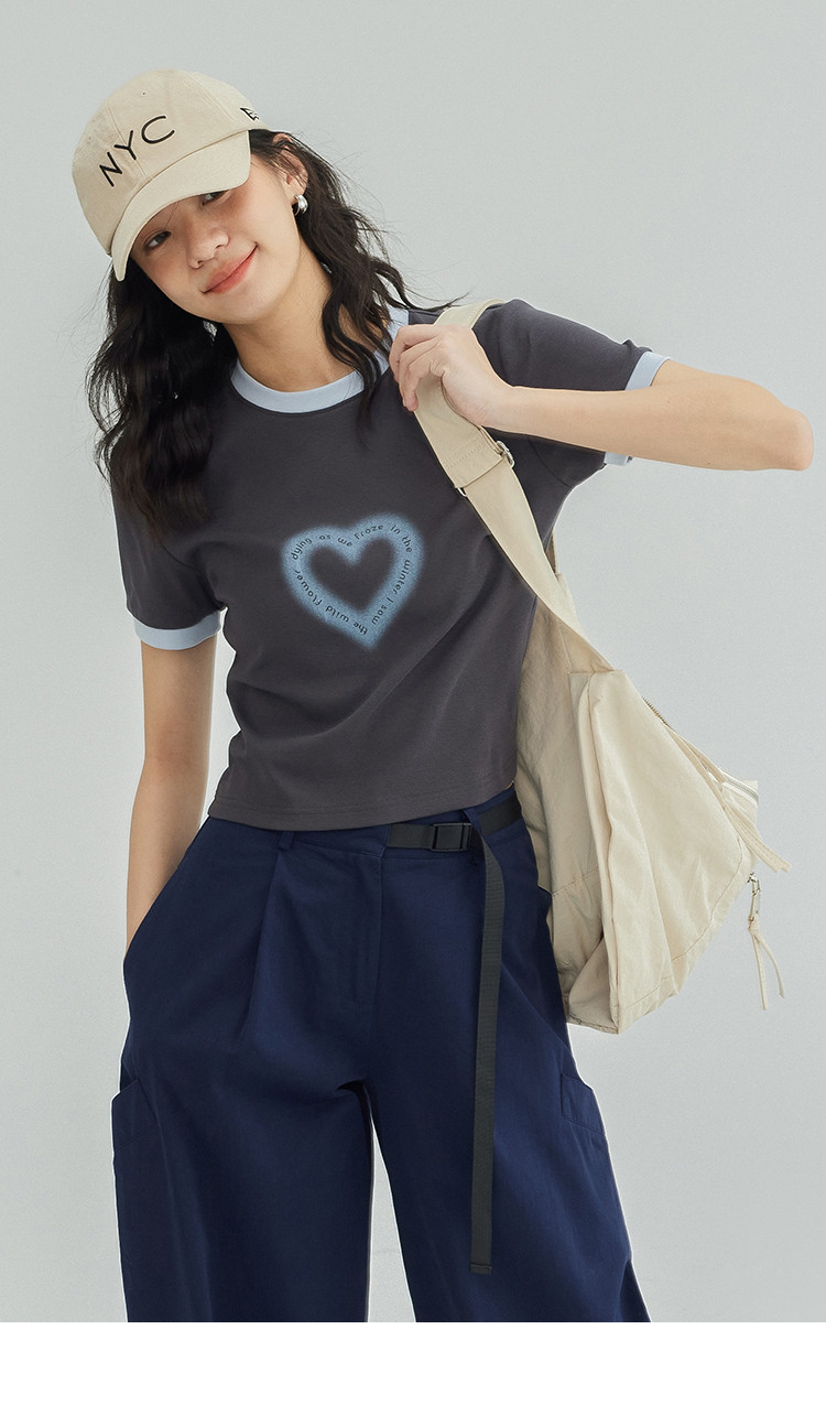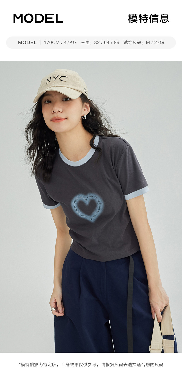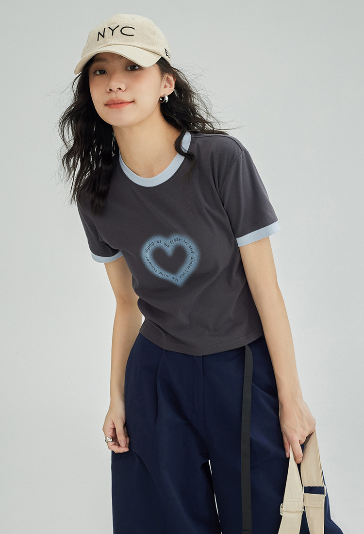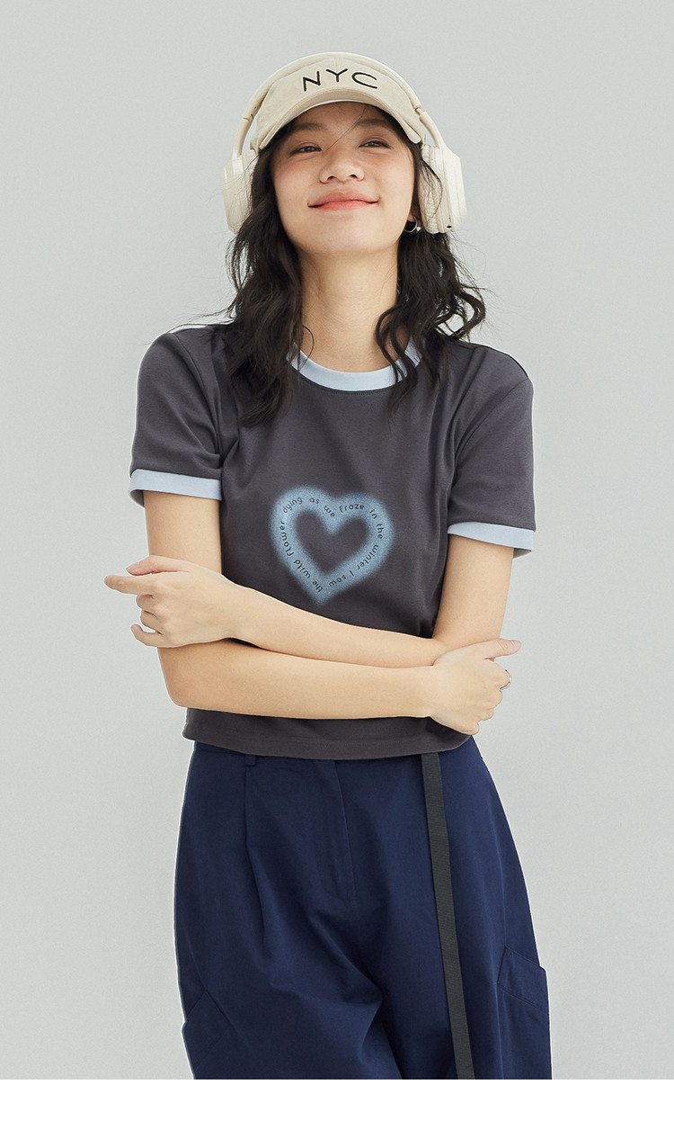 【爱心印花短袖T】年夏打破沉闷感撞色微辣修身不勒肉显瘦 535554