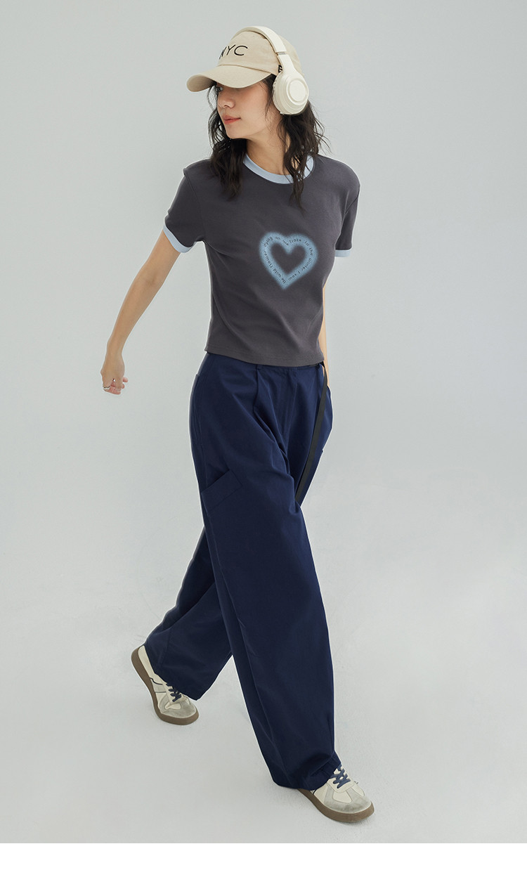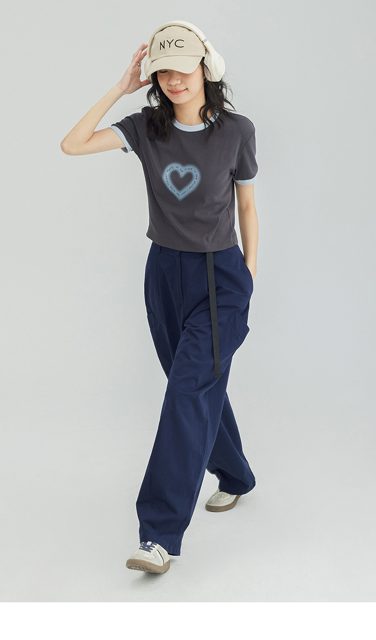 商品名称:【爱心印花短袖T】年夏打破沉闷感撞色微辣修身不勒肉显瘦 535554