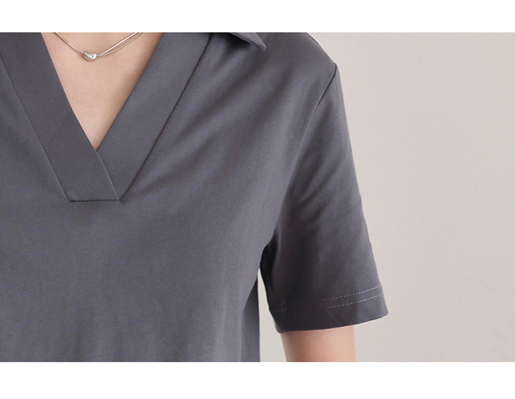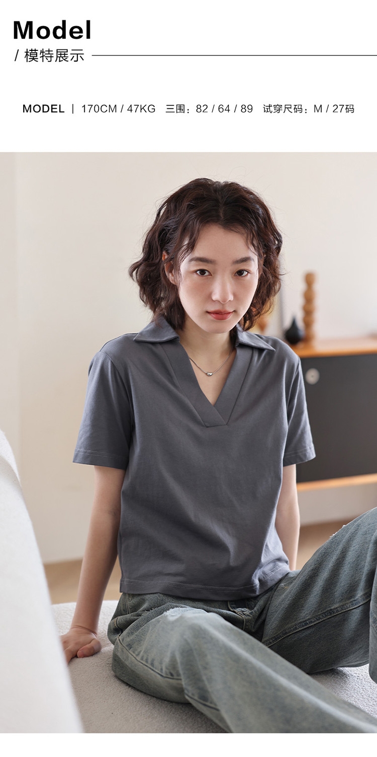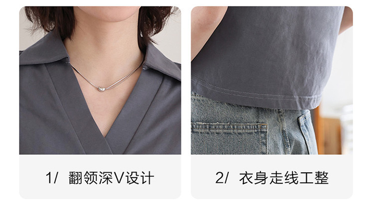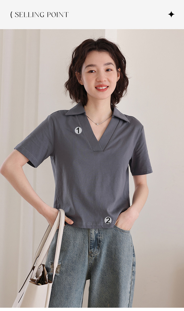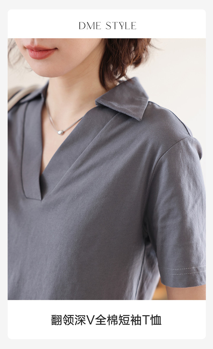 商品名称:【翻领深V】夏款休闲时尚截断式深V短袖T恤女 964610