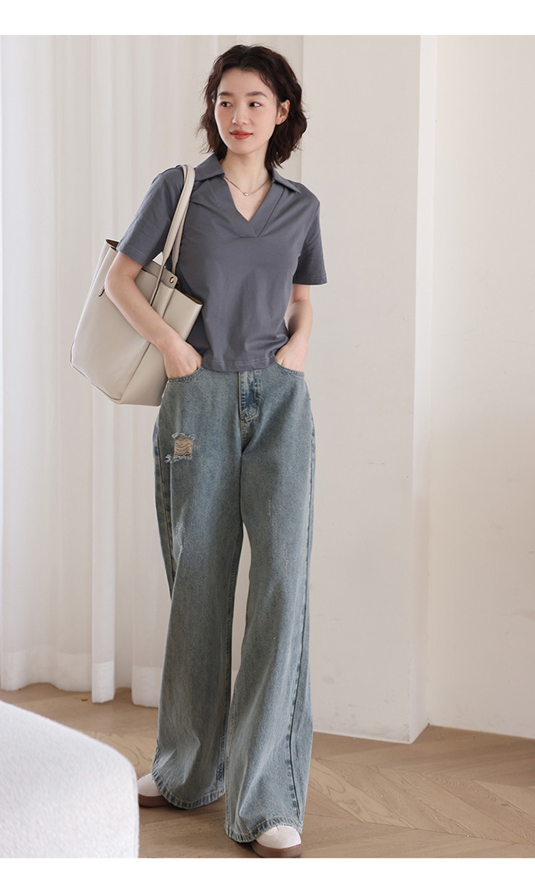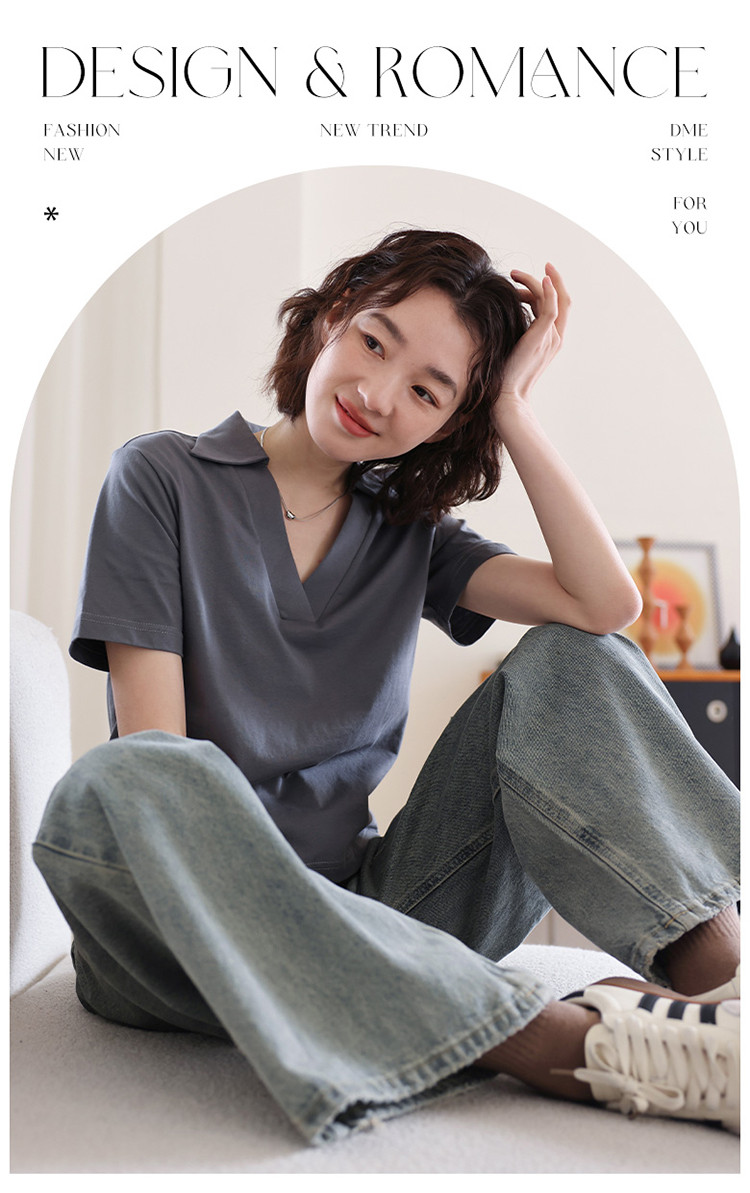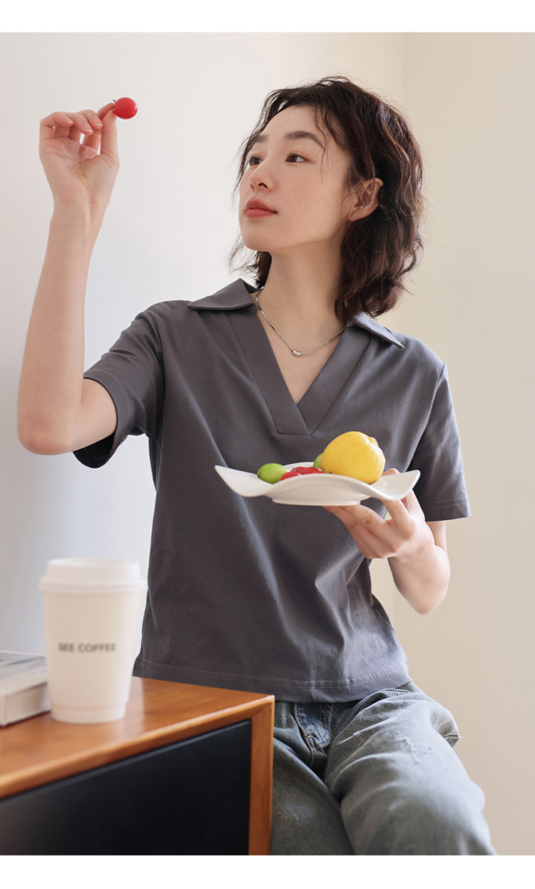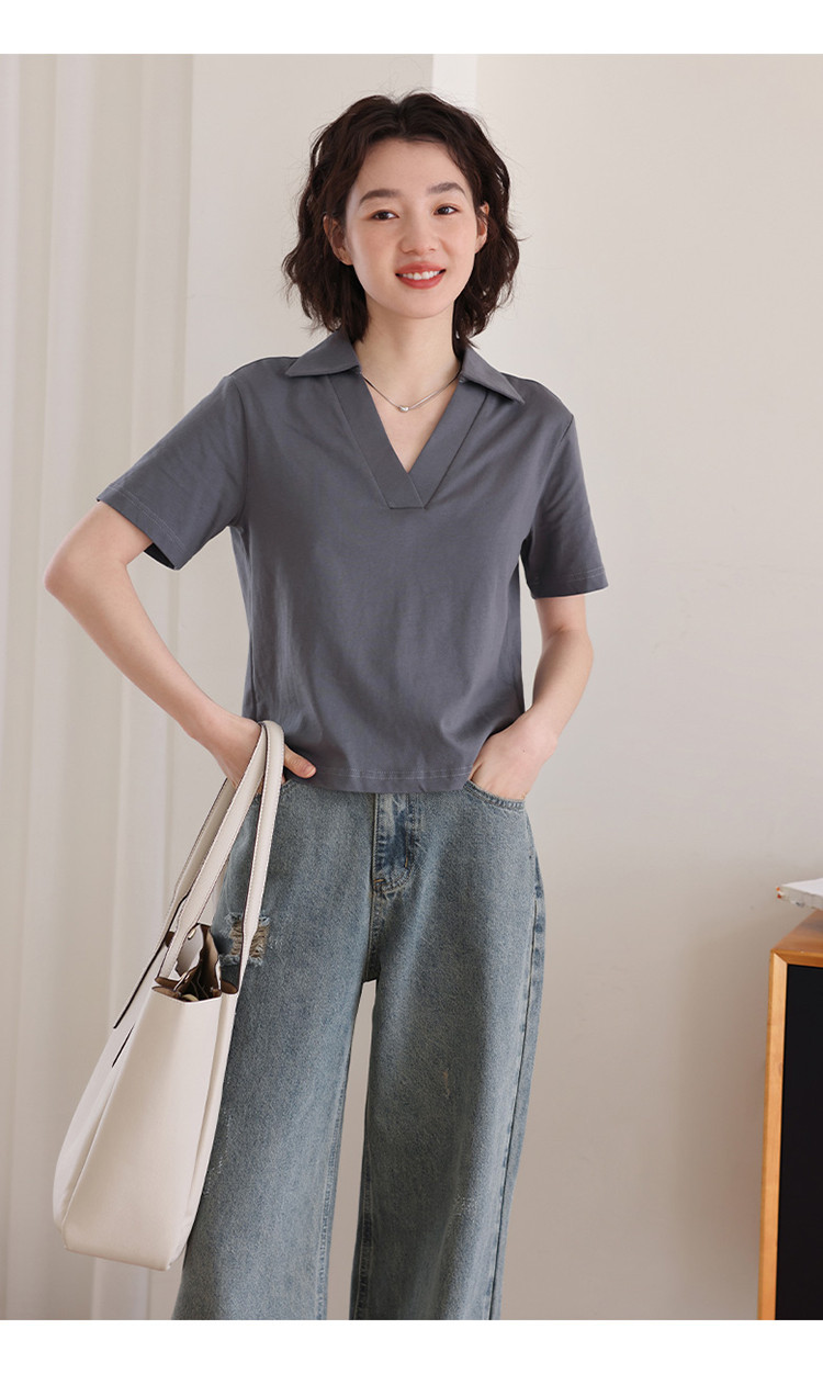 商品名称:【翻领深V】夏款休闲时尚截断式深V短袖T恤女 964610