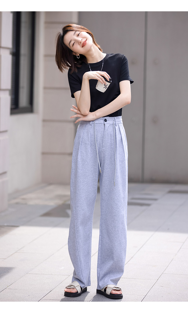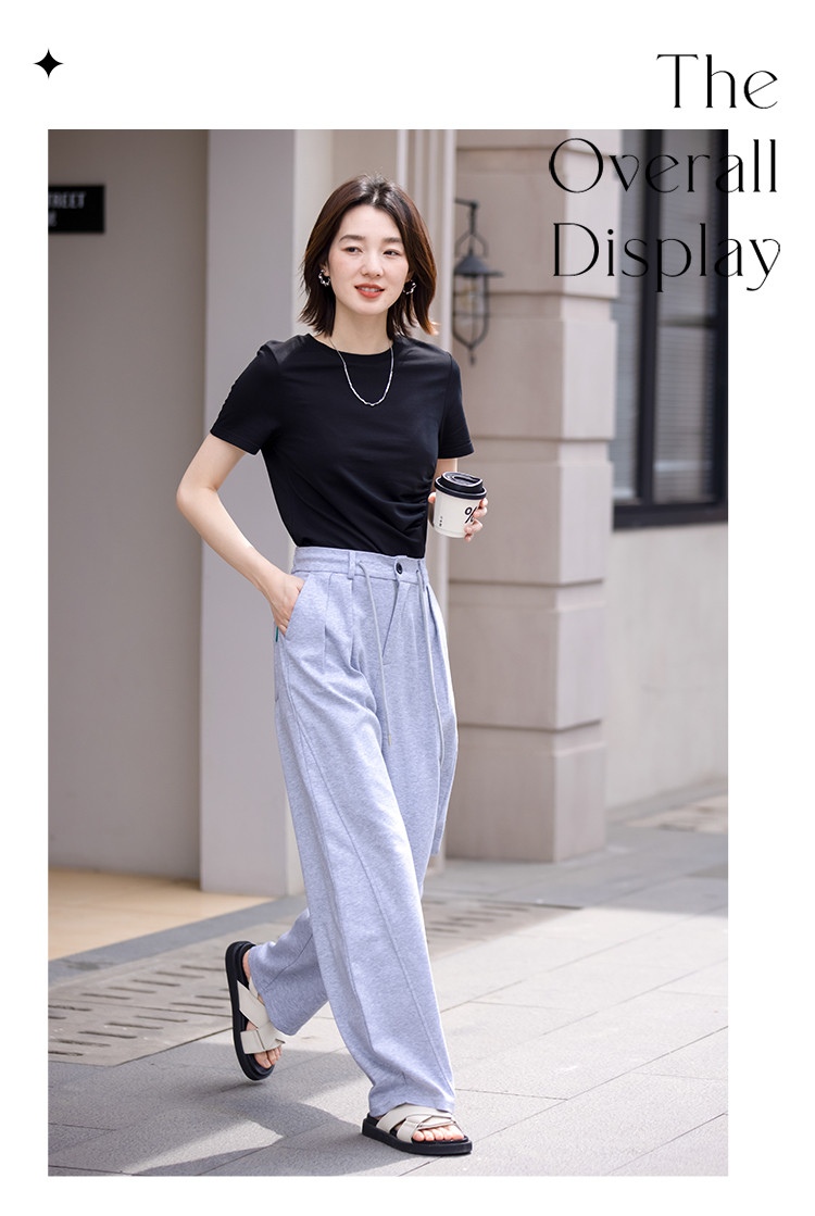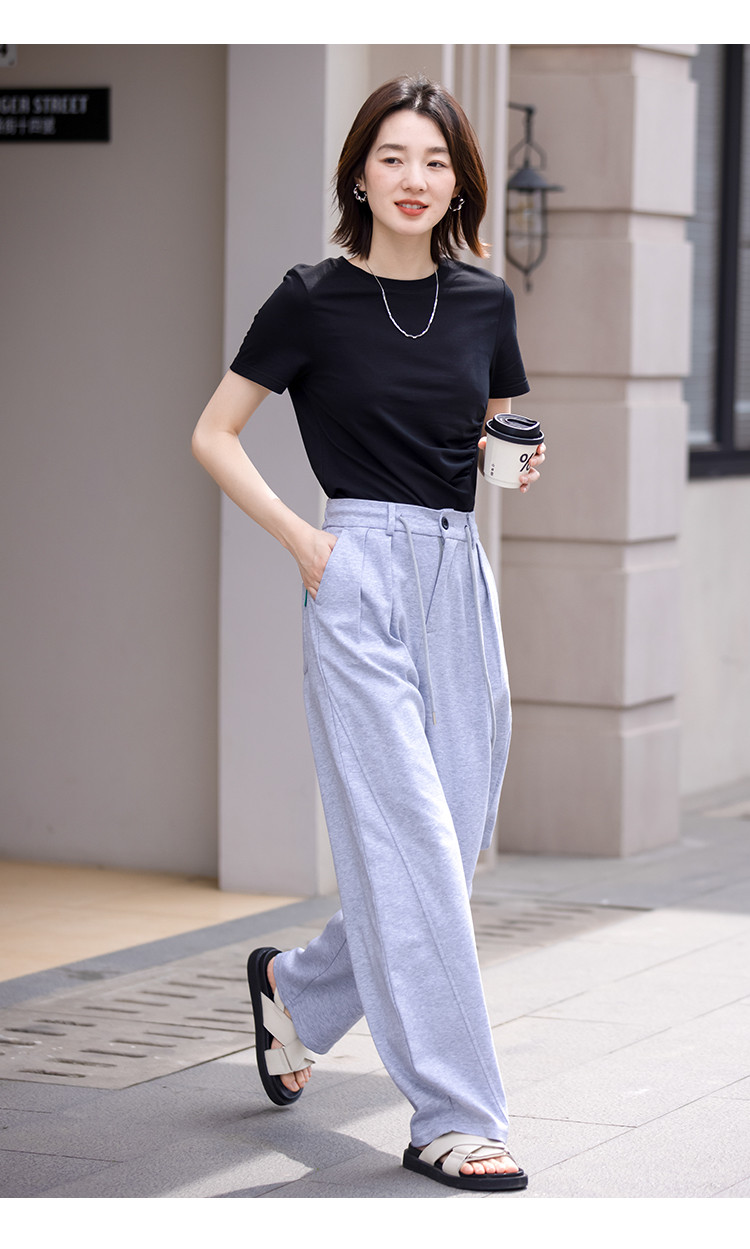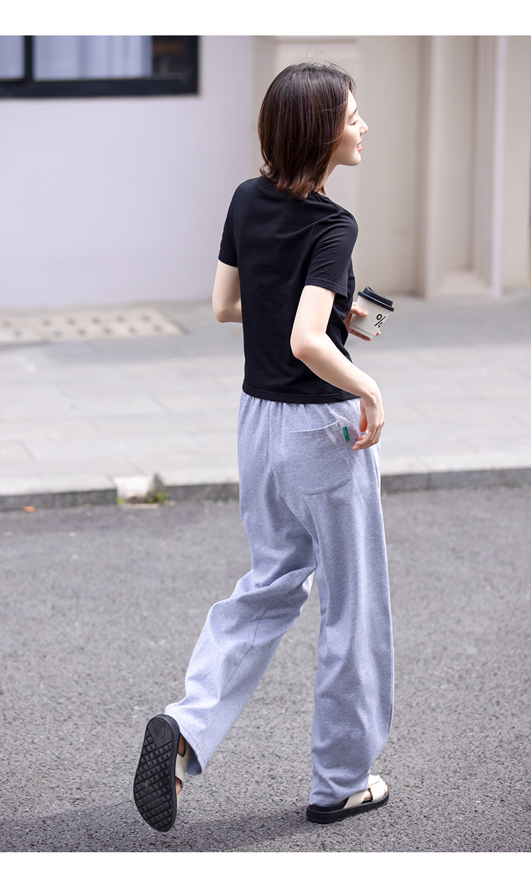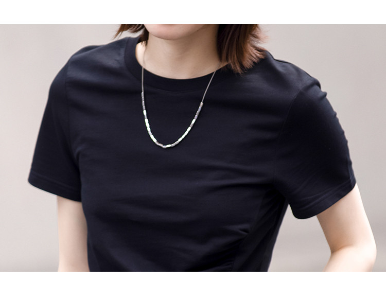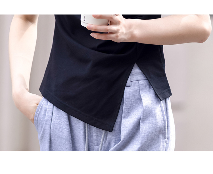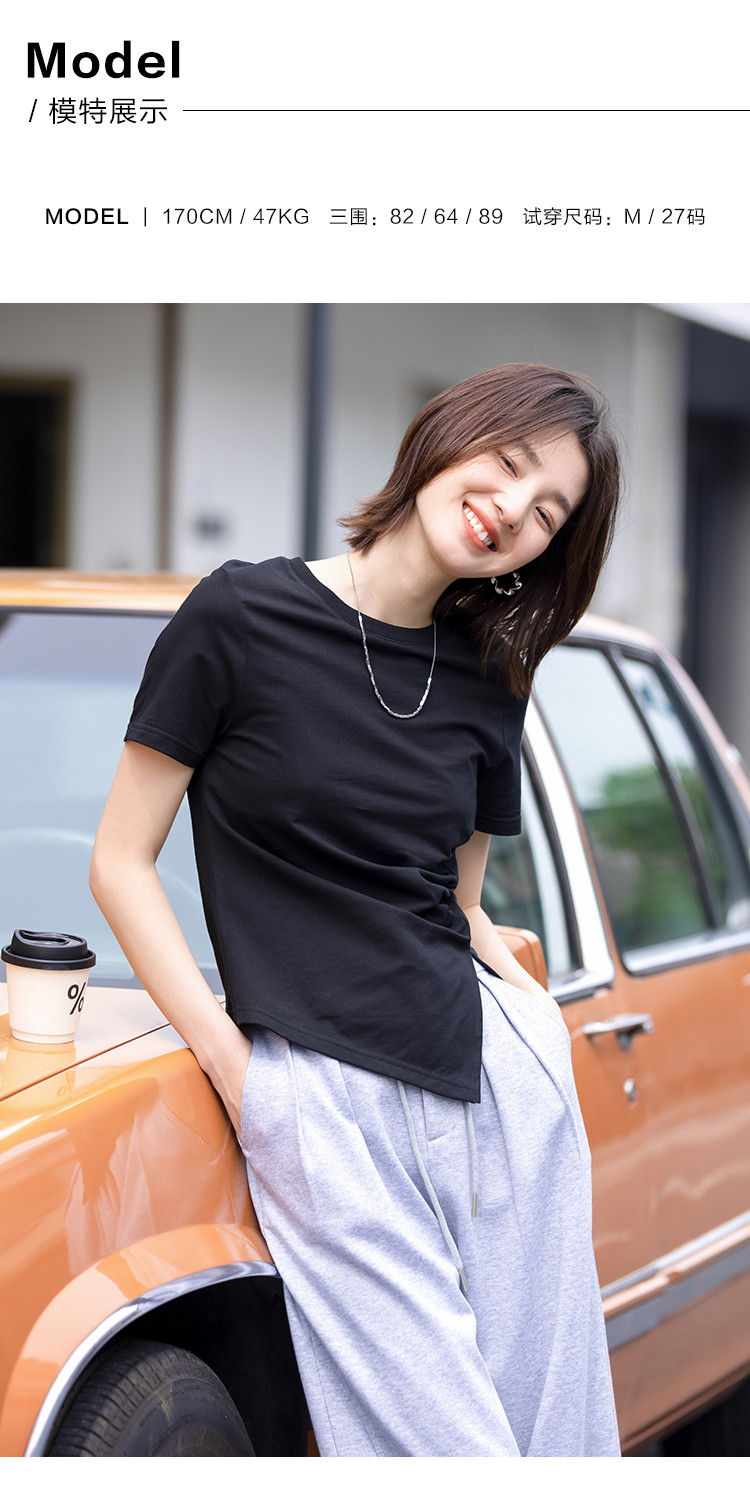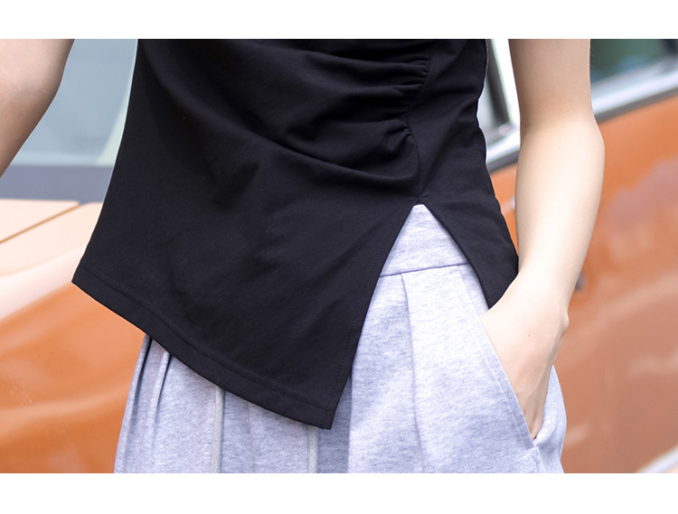 商品名称:【侧摆开叉】夏款下摆侧边开叉收腰圆领短袖T恤女 128450