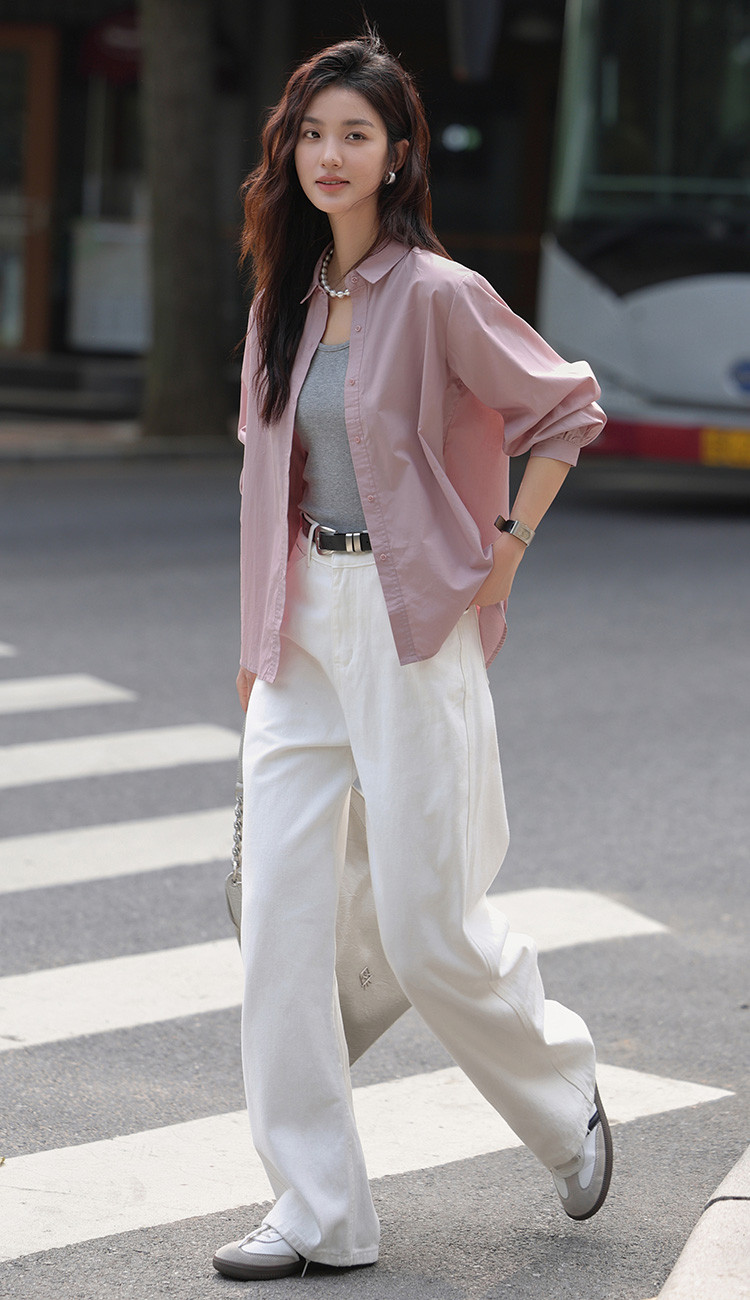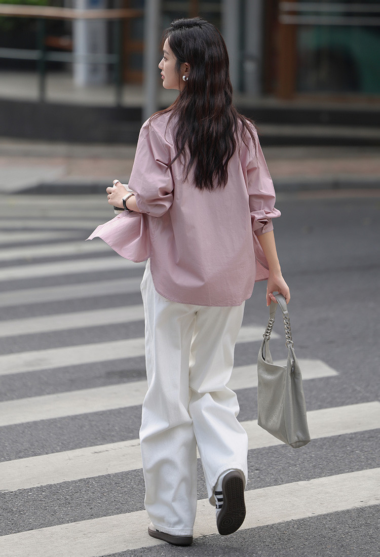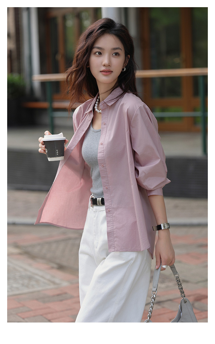 商品名称:【灰粉色衬衫】秋款宽松显瘦叠穿百搭基础气质衬衫女 605186