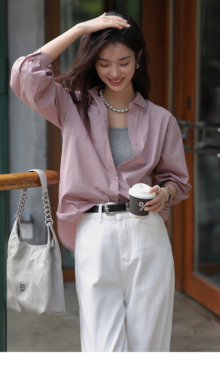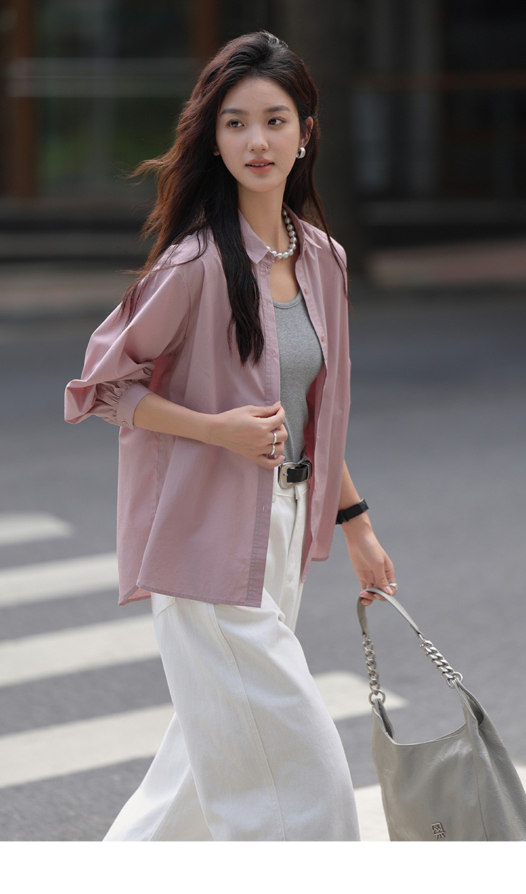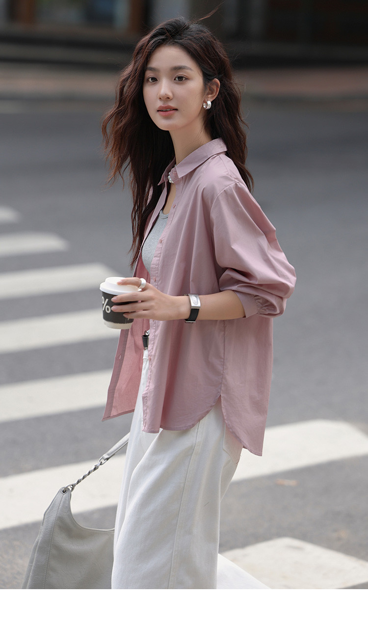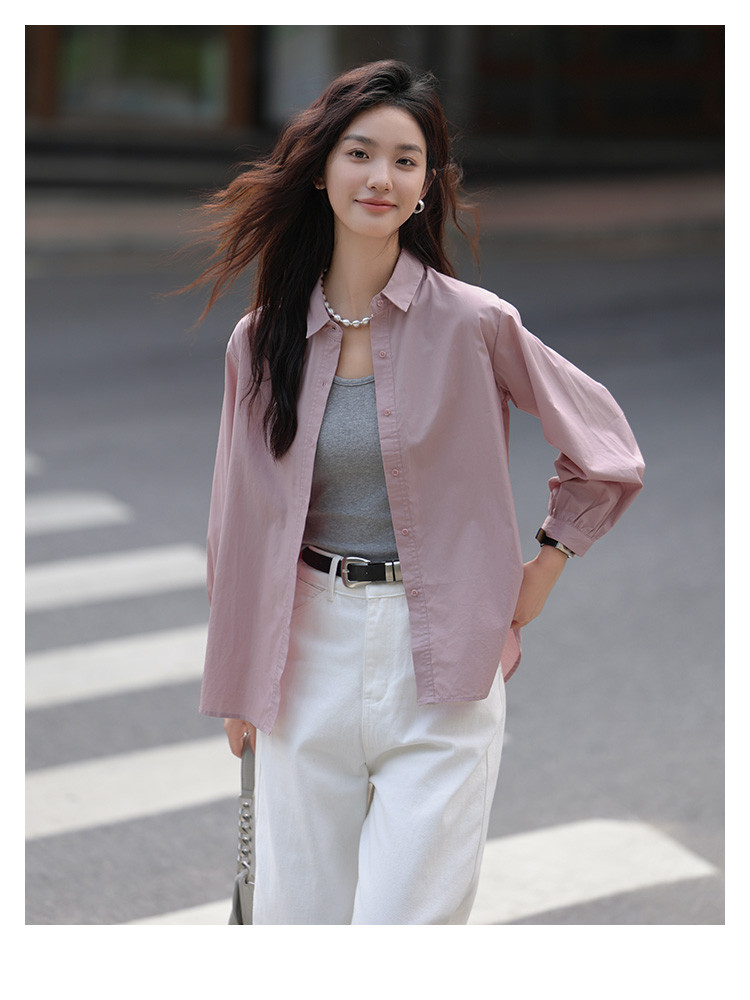 【灰粉色衬衫】秋款宽松显瘦叠穿百搭基础气质衬衫女 605186