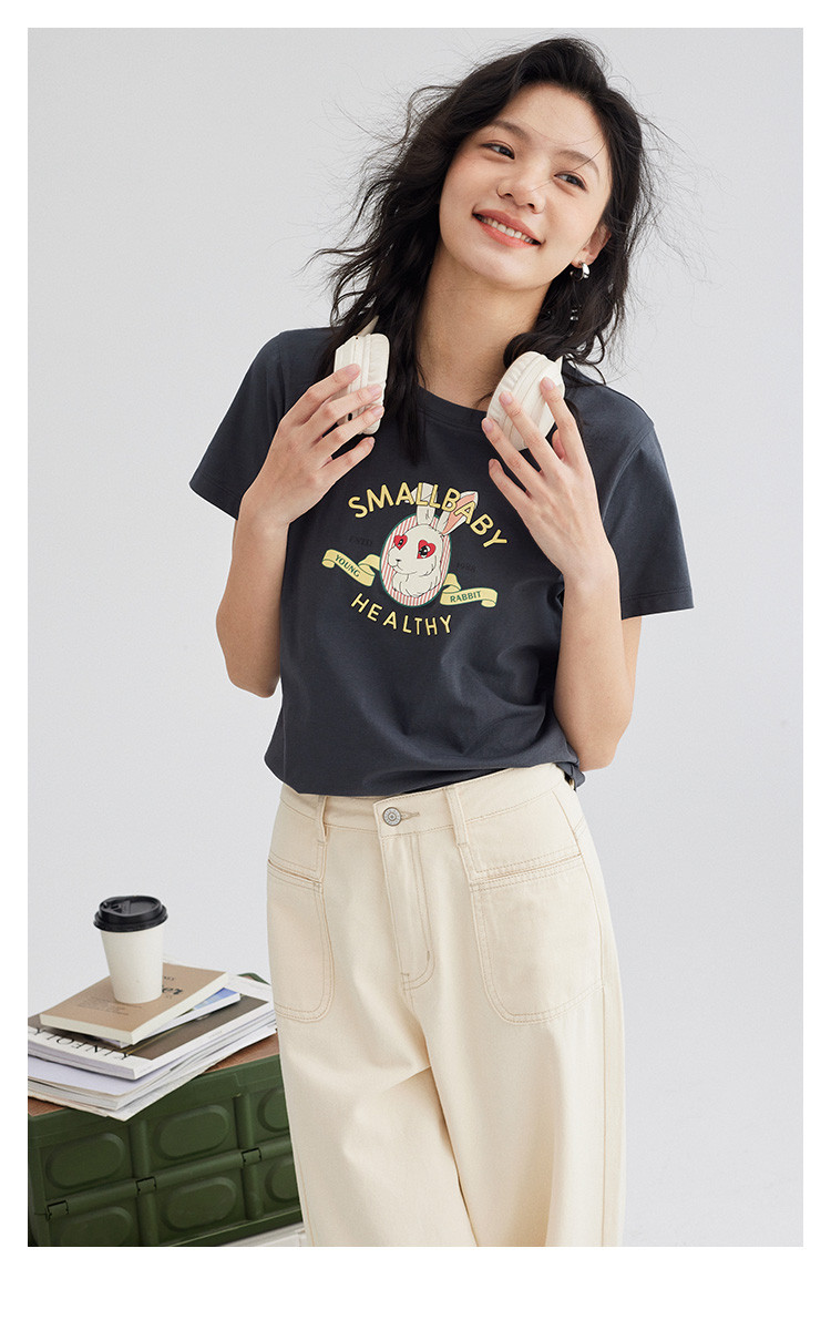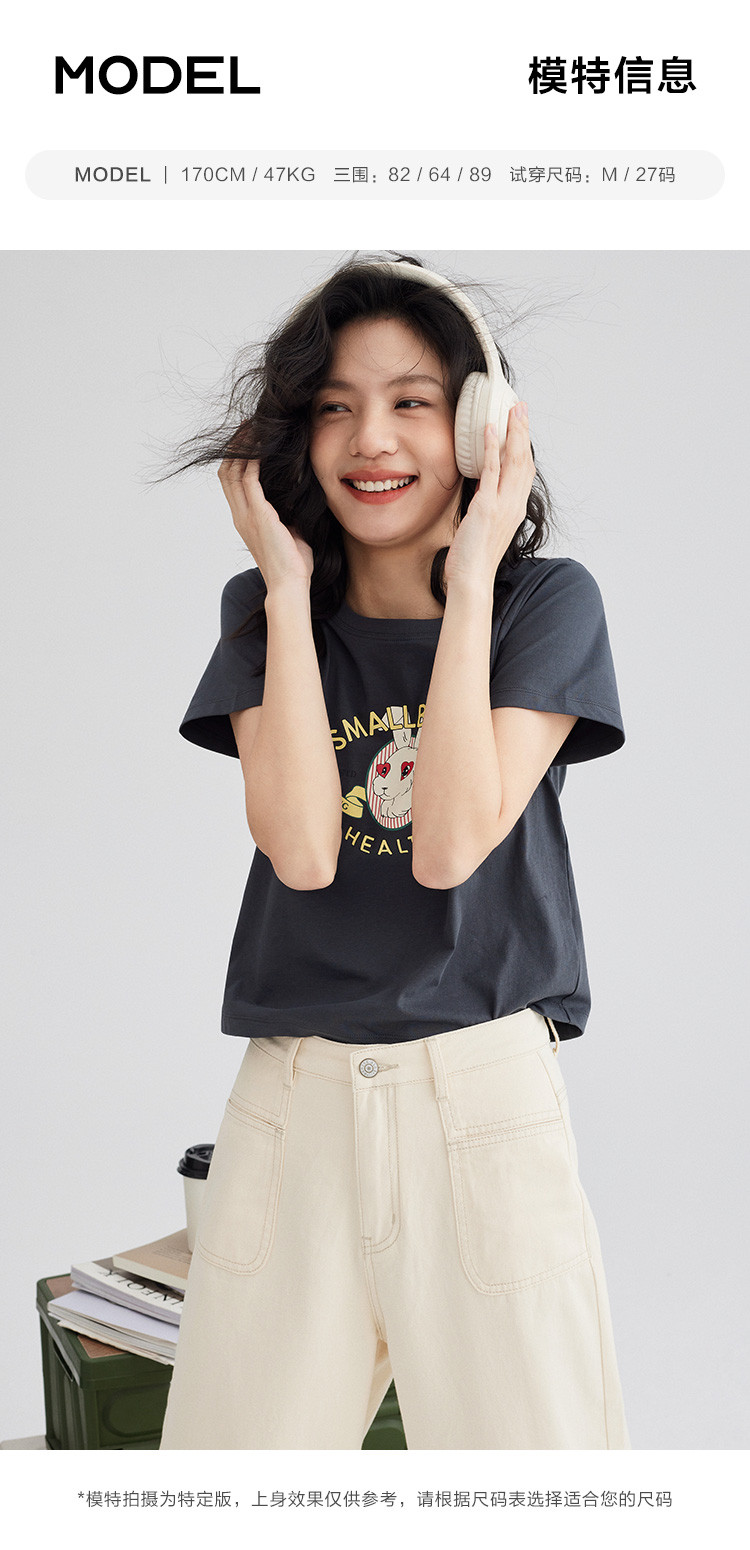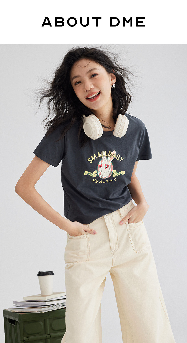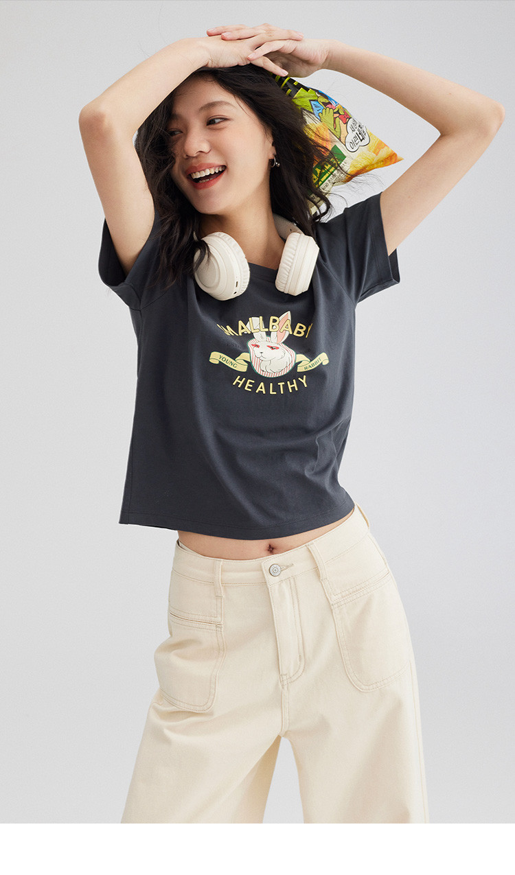 商品名称:【砖灰色短袖T恤】夏款美式复古个性撞色印花微辣T恤女 486402