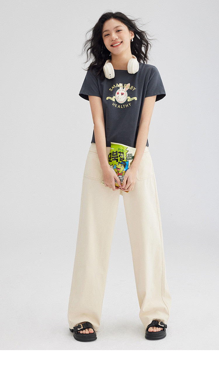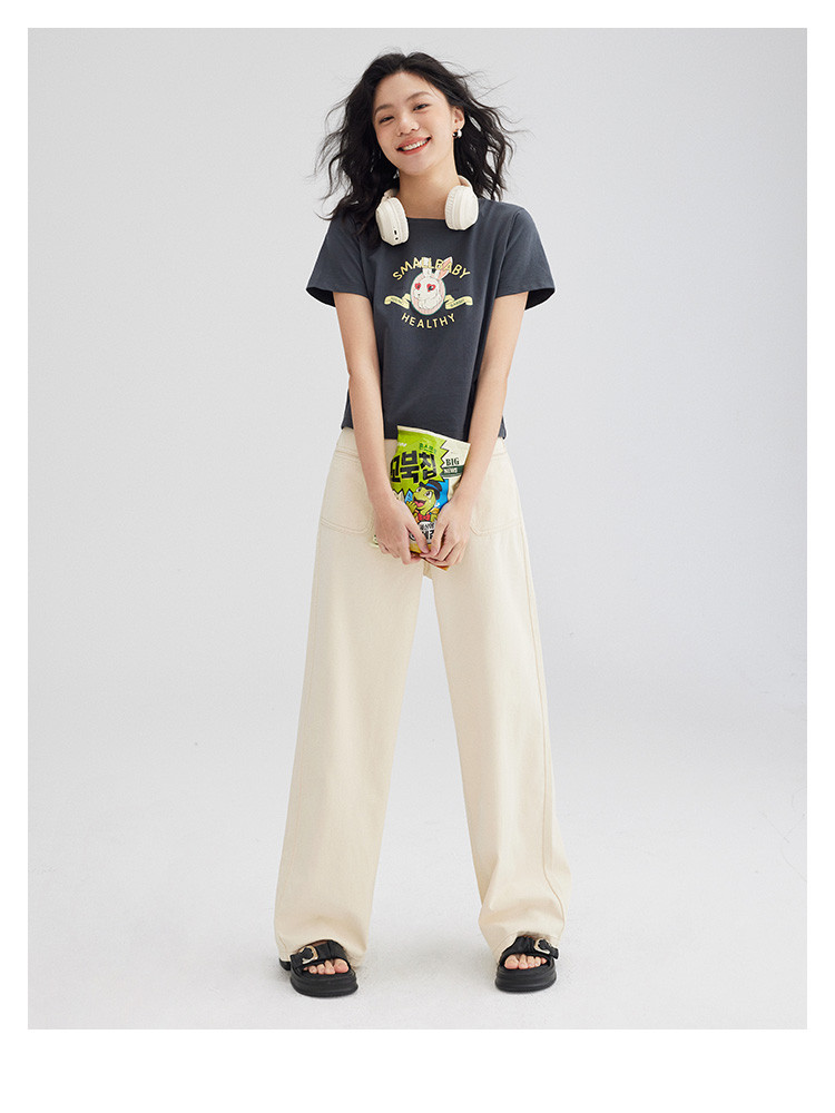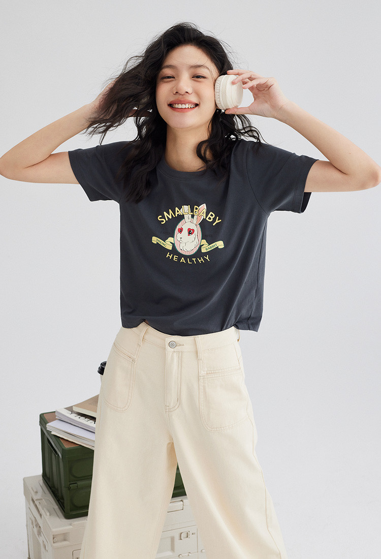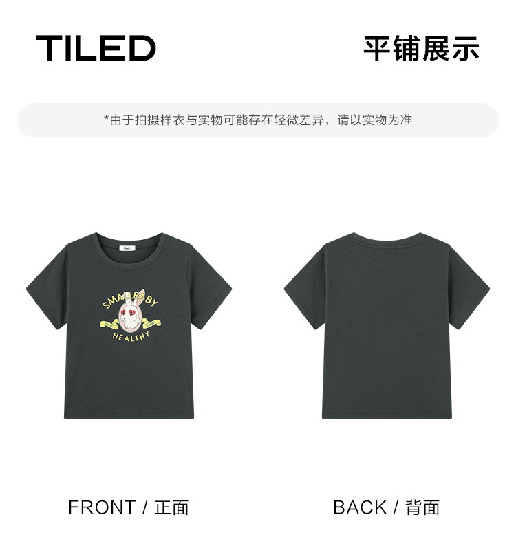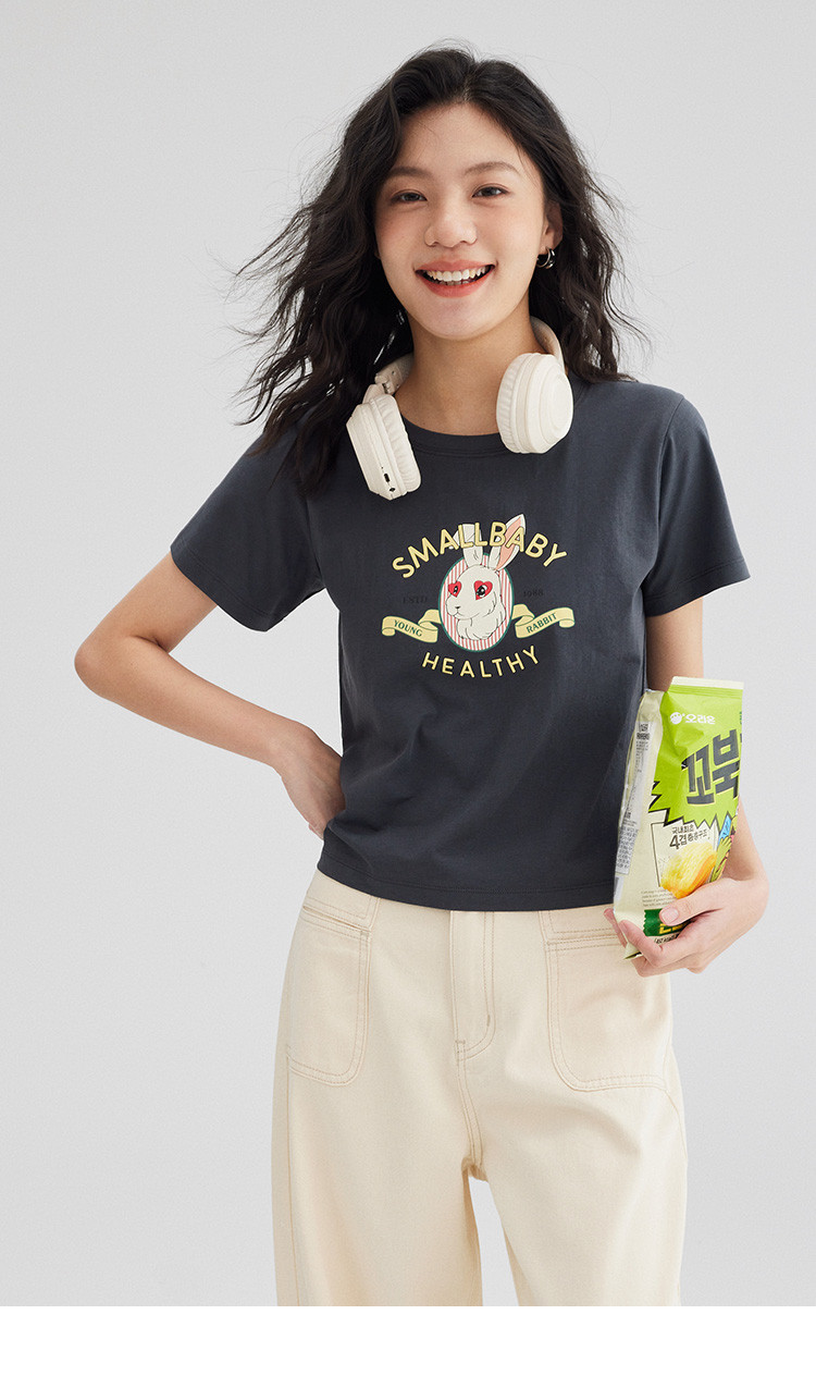 商品名称:【砖灰色短袖T恤】夏款美式复古个性撞色印花微辣T恤女 486402